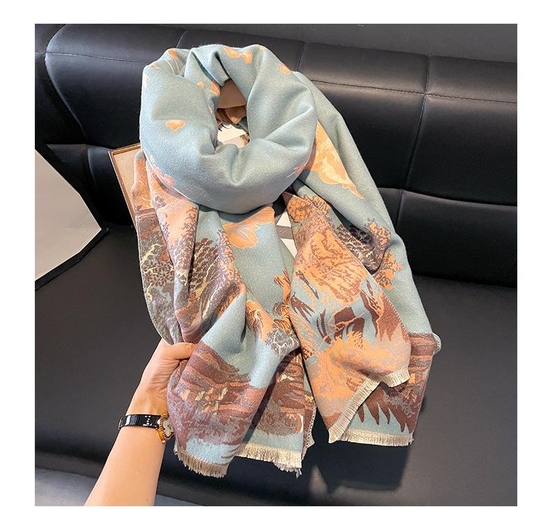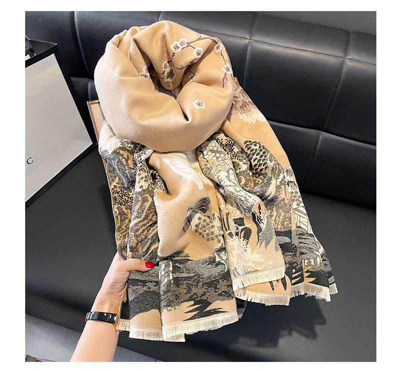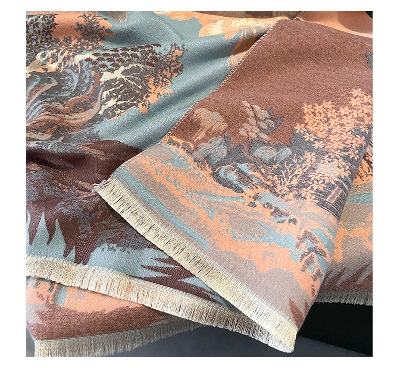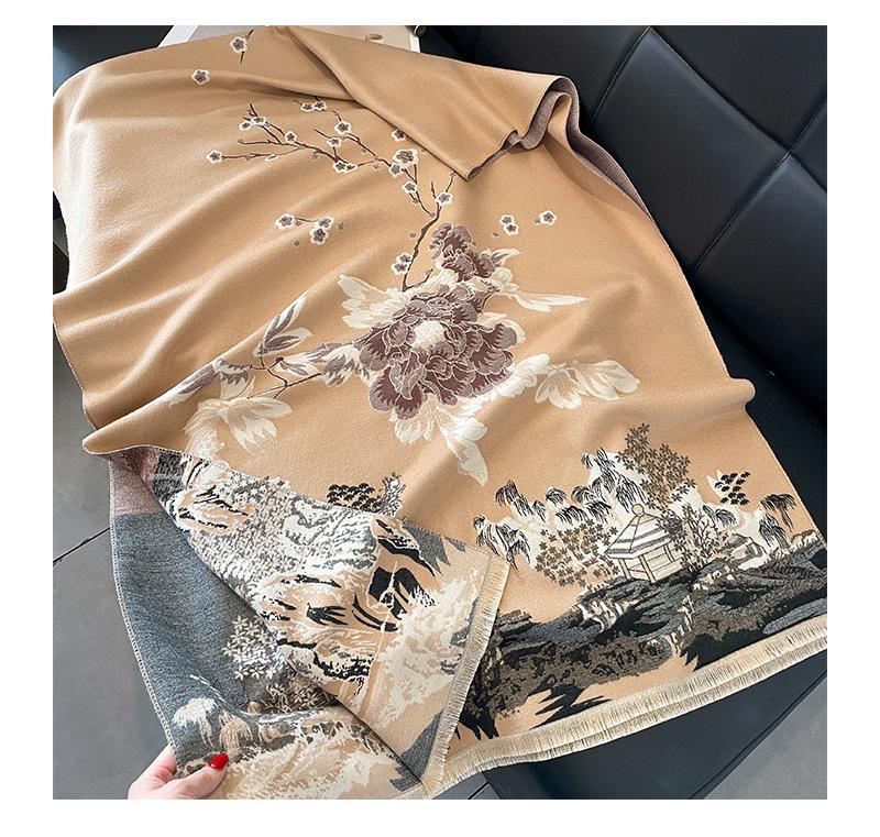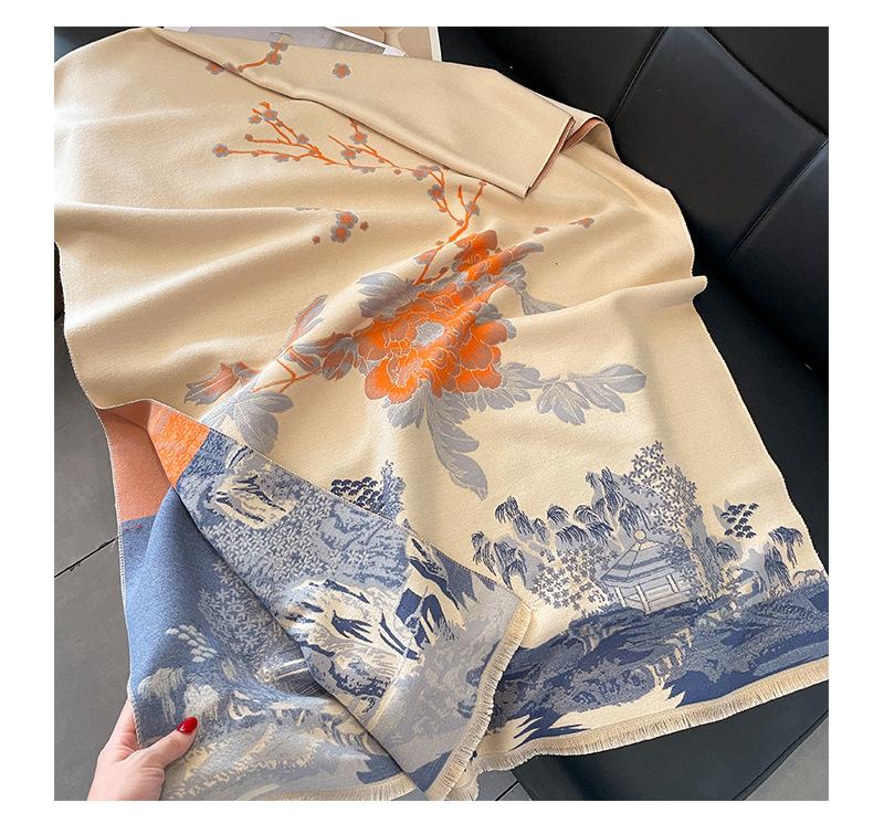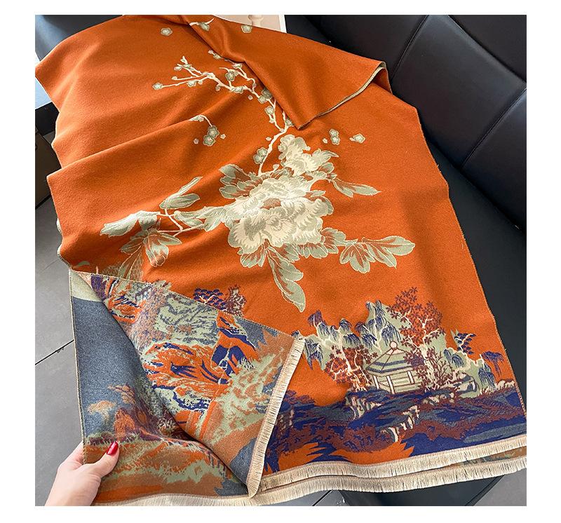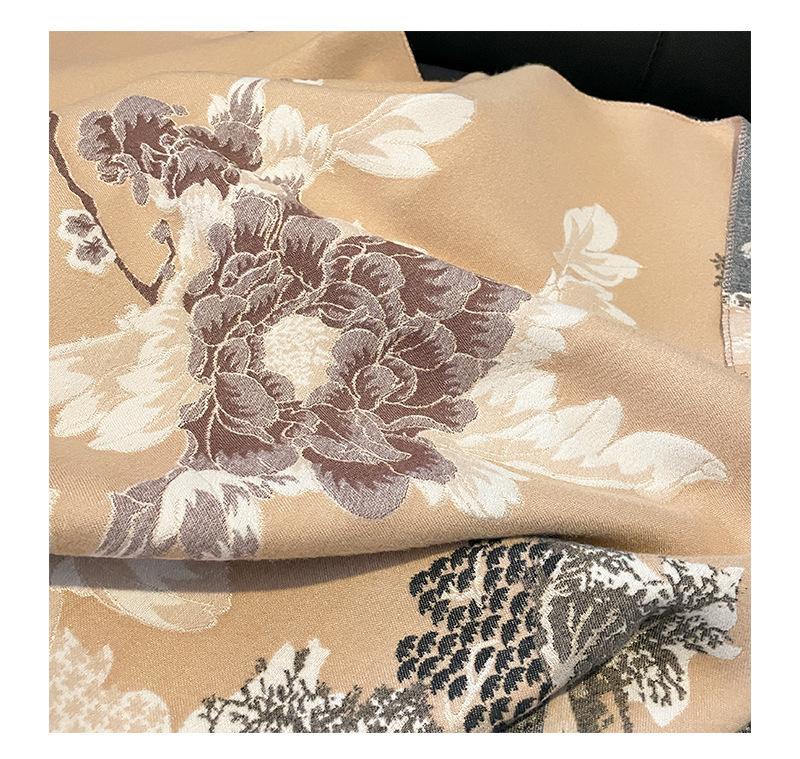 Bufanda de cachemir con peonías altas para otoño e invierno, gruesa y cálida, con borlas, elegante y a la moda para mujer.