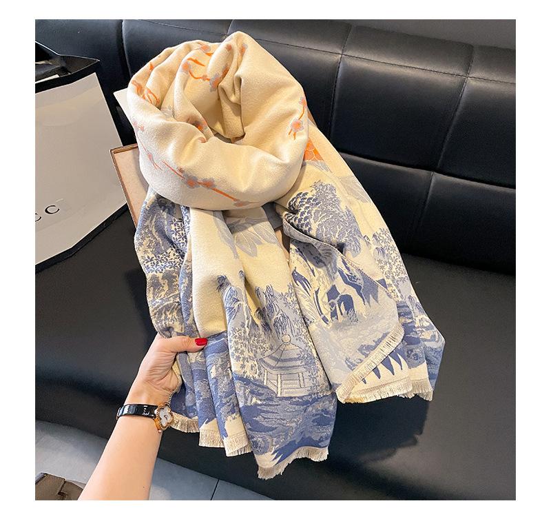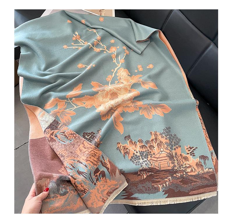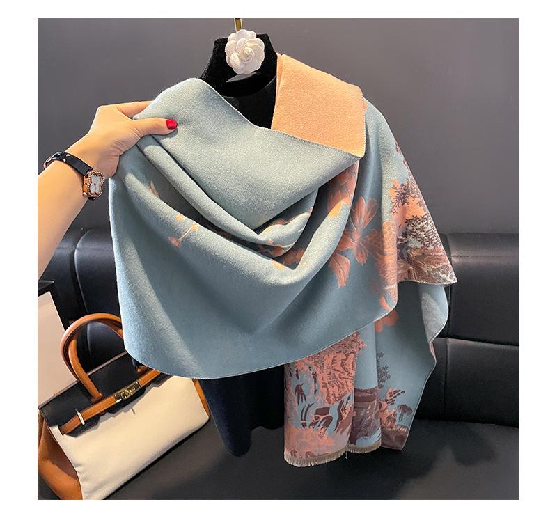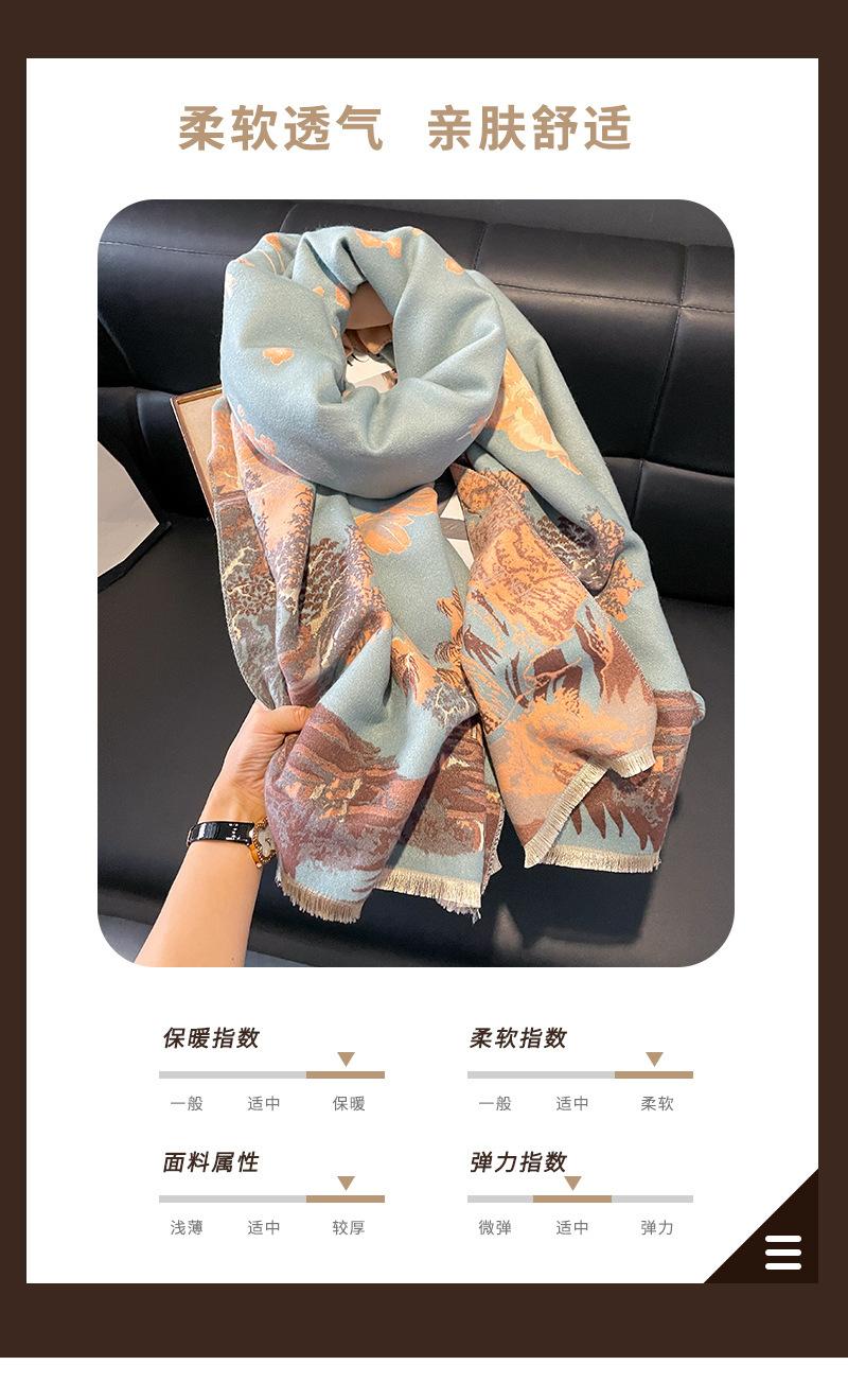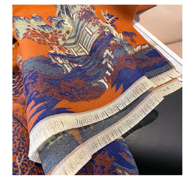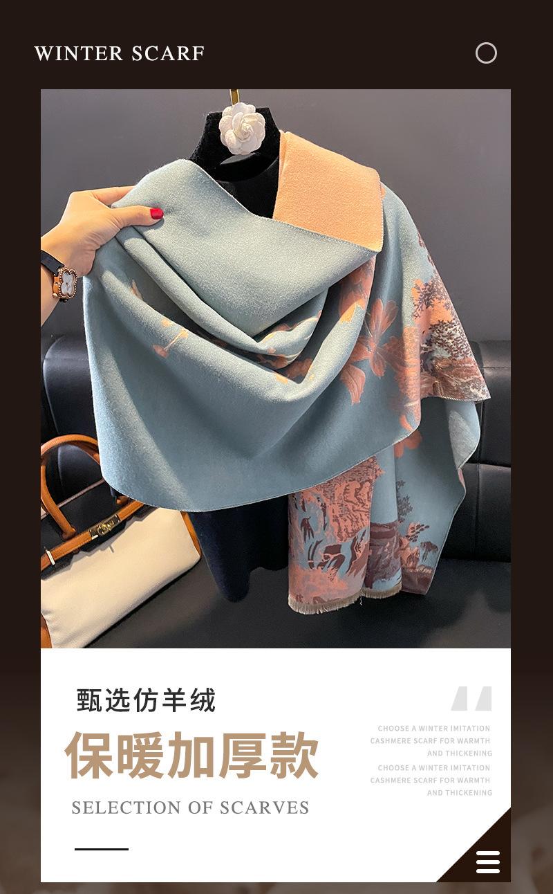 Bufanda de cachemir con peonías altas para otoño e invierno, gruesa y cálida, con borlas, elegante y a la moda para mujer.