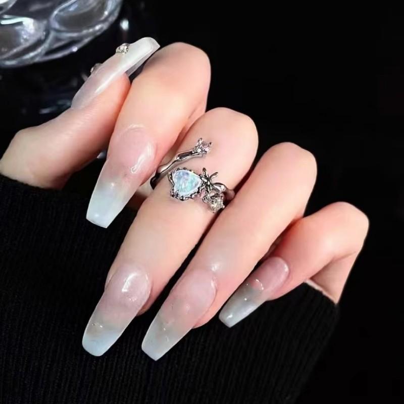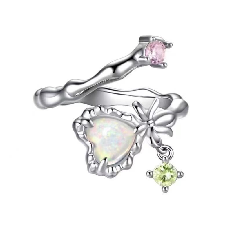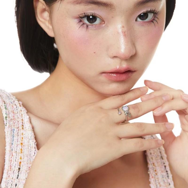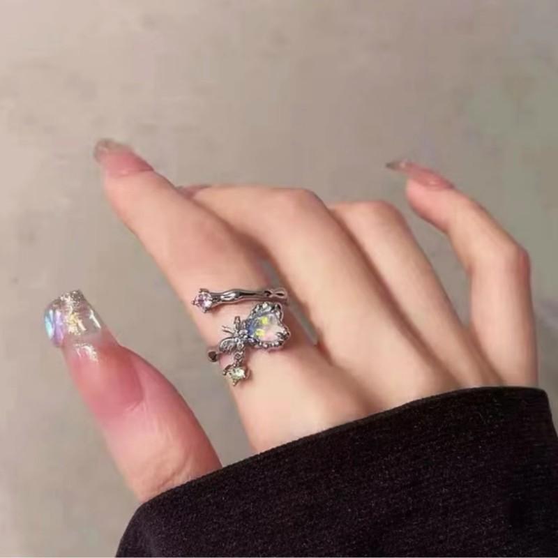 Anillo de piedra lunar de temperamento con sensación de alta gama de moda Anillo abierto con sensación de diseño de nicho de personalidad de lujo ligero de estilo frío para mujer