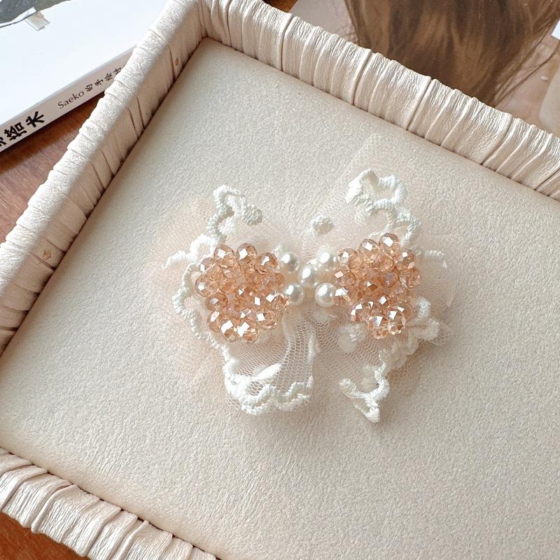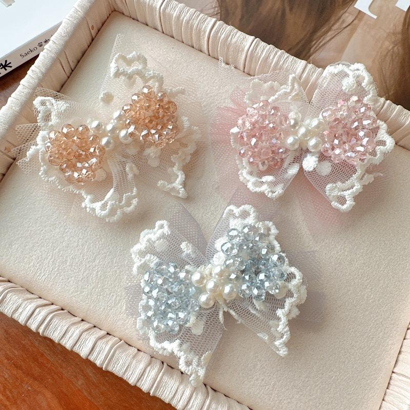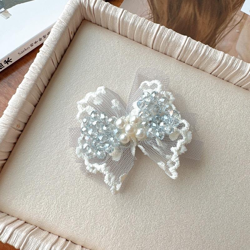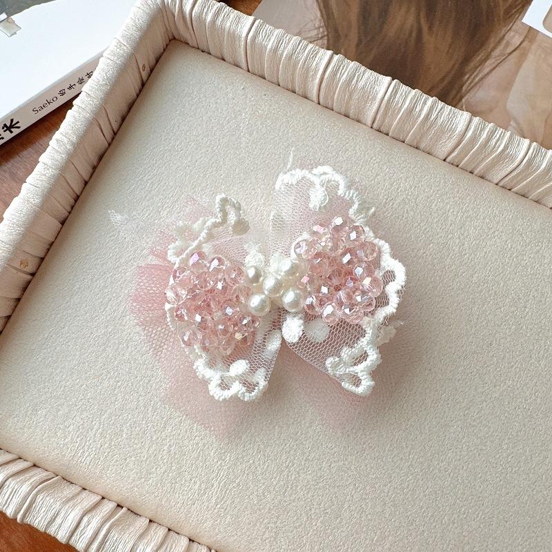 Accesorios para el Cabello Coreanos para Niños Encaje Cristal Cuentas Pasador Lazo de Malla Pasador para Niña Tocado para Bebé Pequeña Princesa