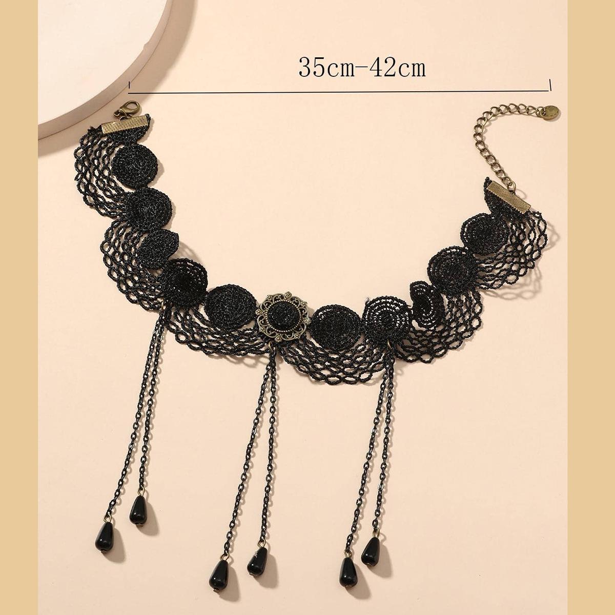 Collar de encaje exagerado para mujer, cadena de clavícula gótica de encaje negro retro personalizado, joyería transfronteriza europea y americana.