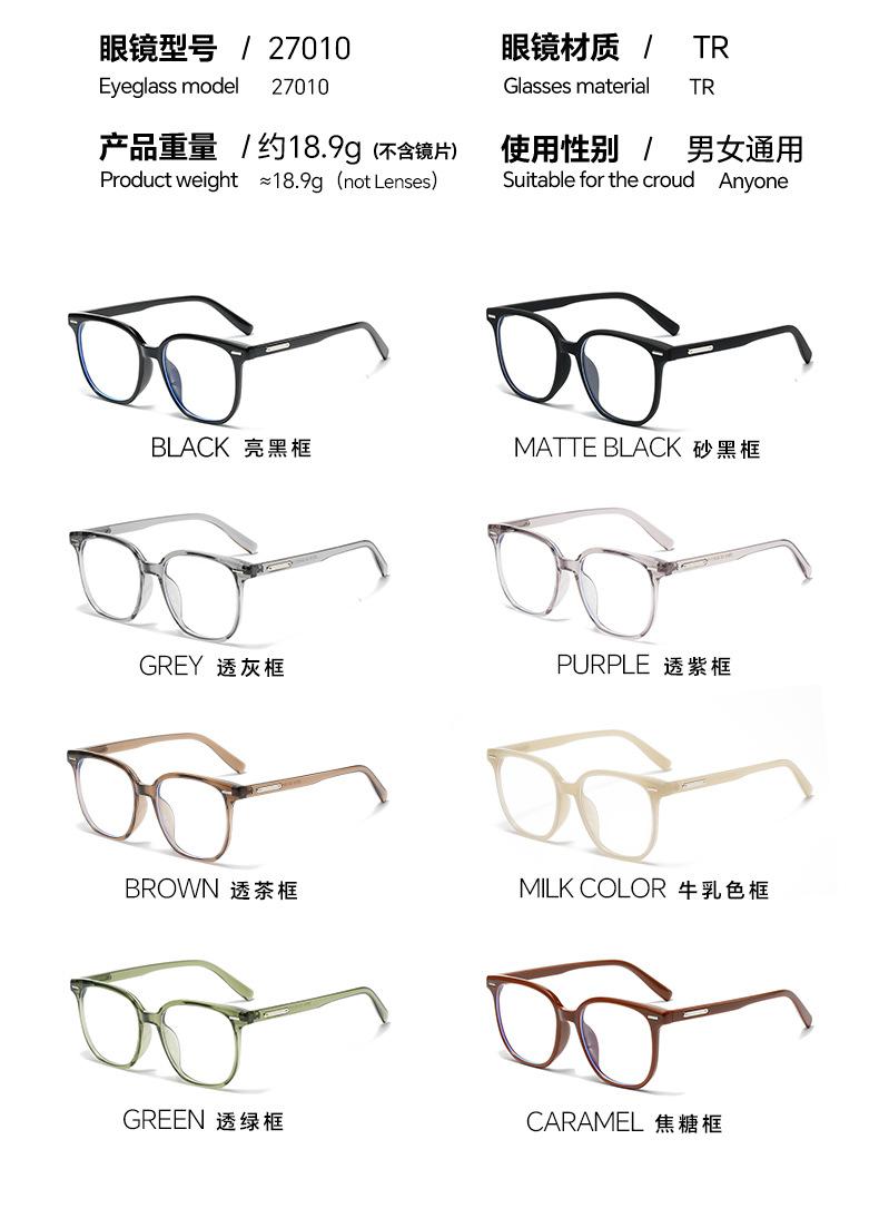 Kan see new TR90 lentes planas lisas que combinan con todo con gafas de miopía, montura de gafas anti-azul de moda para mujer, venta al por mayor