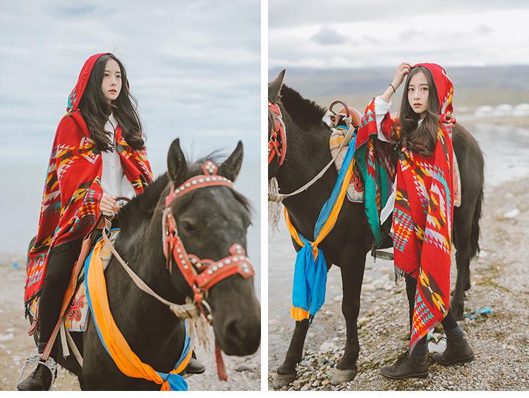 Capa de Estilo Étnico para Fotos de Viaje Xizang Lijiang Nepal Chal Grande Capa para Mujer Abrigo Chal de Verano para Aire Acondicionado