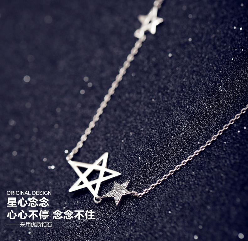 Collar de diamantes con estrella de cinco puntas, primera joyería, cadena de clavícula con estrella, estilo corto, sencillo, combinable, japonés y coreano.