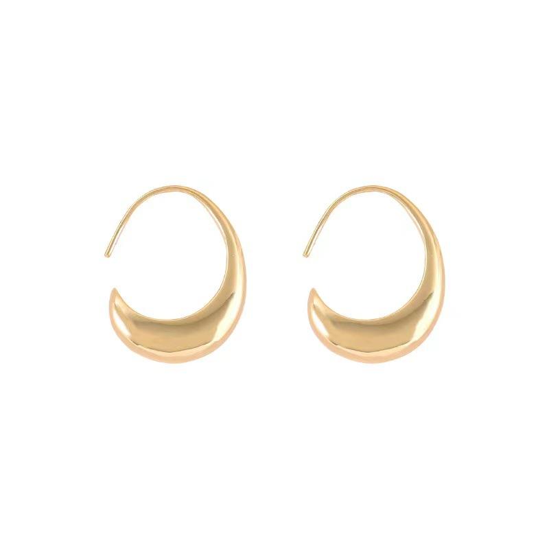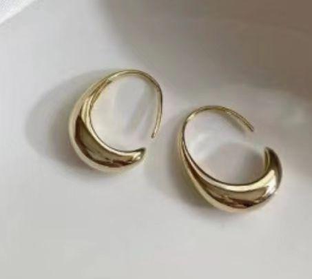 E-103-1 gold c-shaped metal earrings, E-103-2 silver c-shaped metal earrings