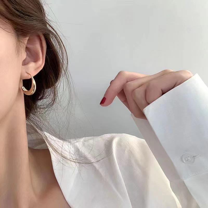 Anillo de metal personalizado en forma de C de Corea del Sur Dongdaemun, pendientes elegantes de celebridades de Internet para mujer, nuevos pendientes de estilo frío de moda, pendientes de cobre