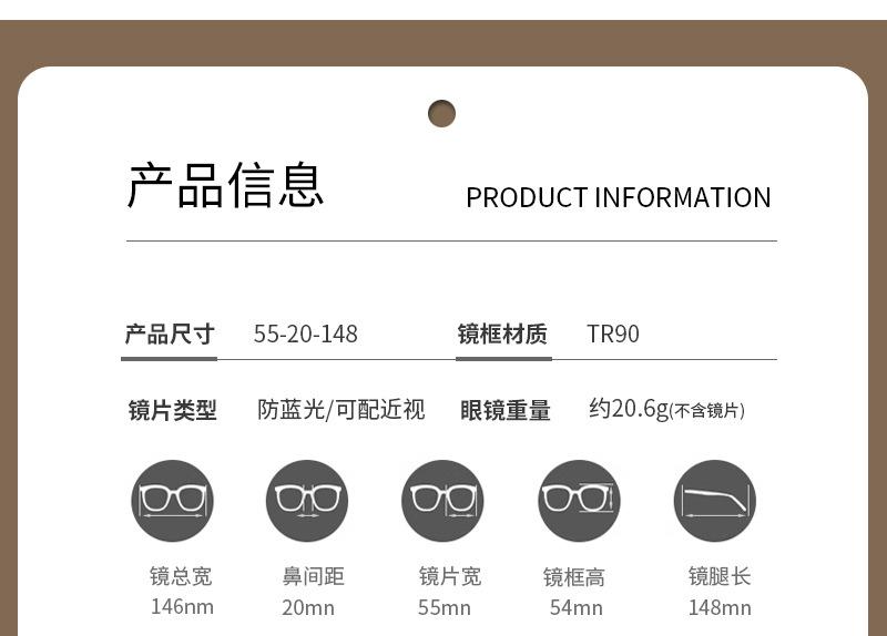 Un solo par de gafas se empaqueta individualmente en una bolsa sellada de 0PP, excluyendo el estuche de gafas y otros accesorios (hay una variedad de cajas en la tienda, que deben pedirse por separado); la etiqueta de las gafas se puede entregar de forma gratuita, solo deje un mensaje.