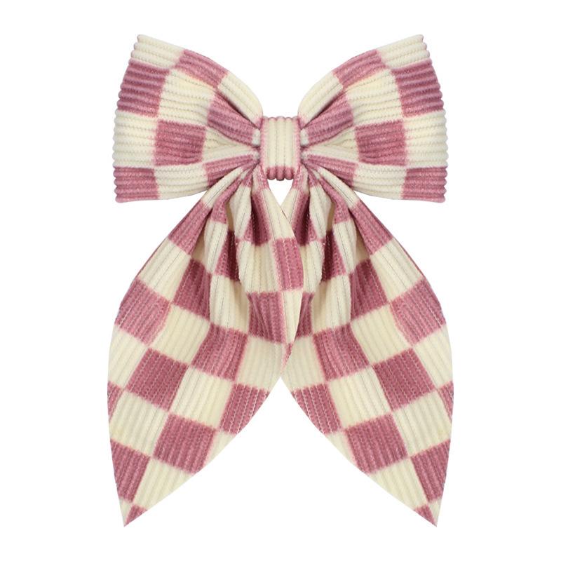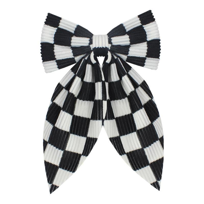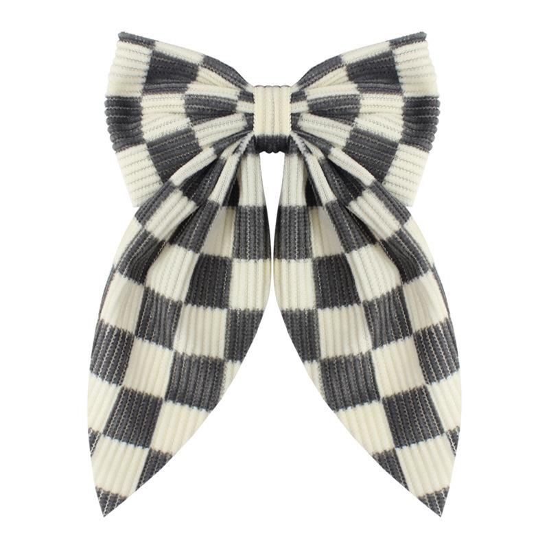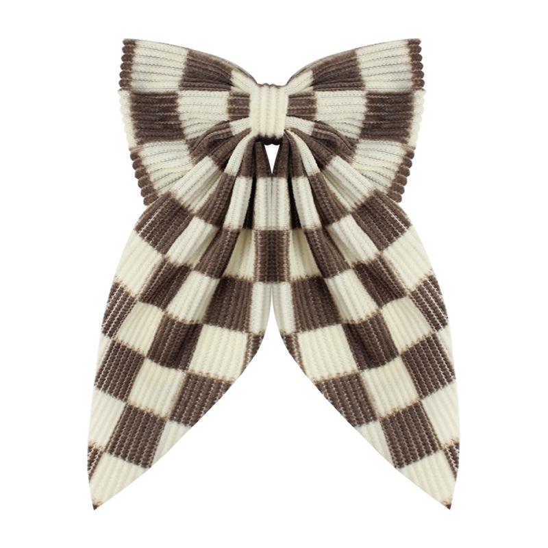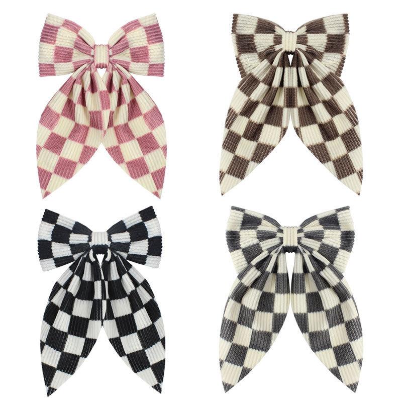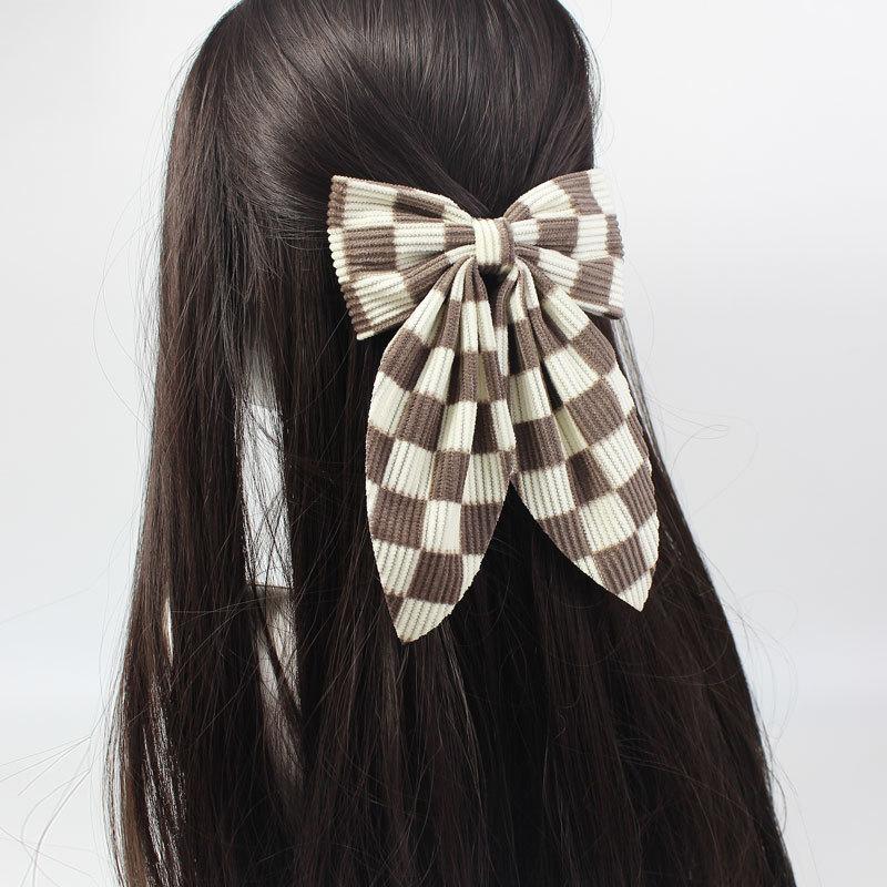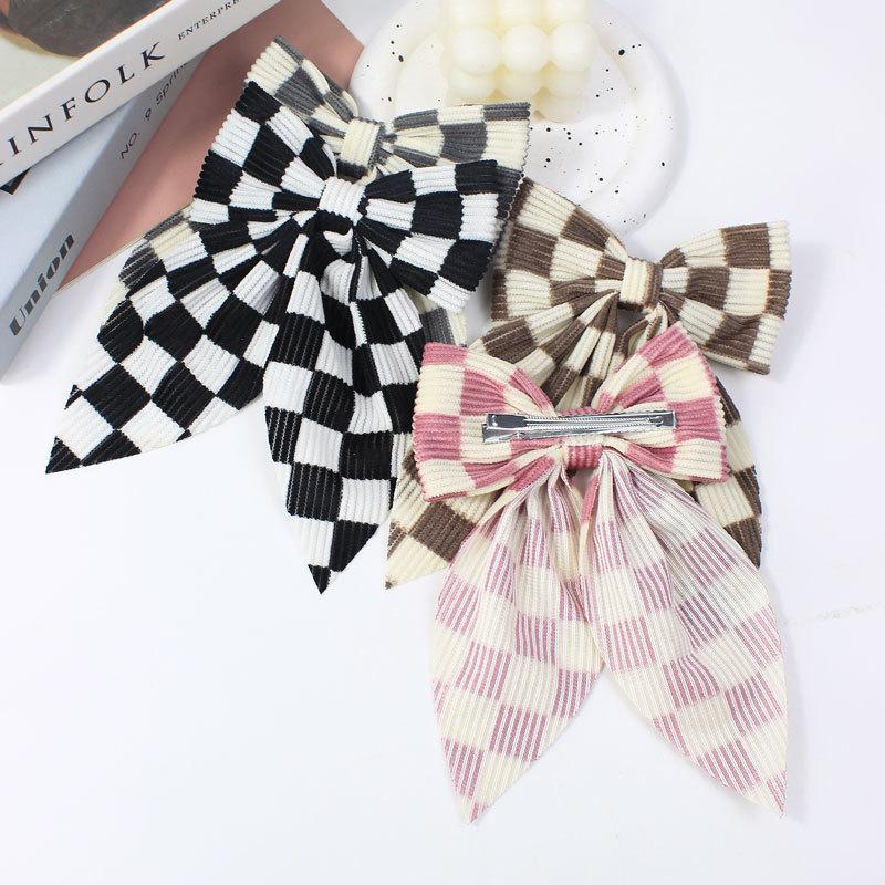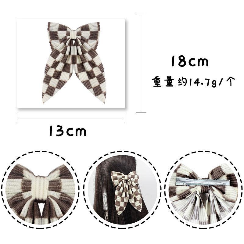 【nombre】Comercio exterior hecho a mano franela a cuadros lazo cinta pasador parte posterior de la cabeza pasador multicapa estilo universitario tocado sencillo