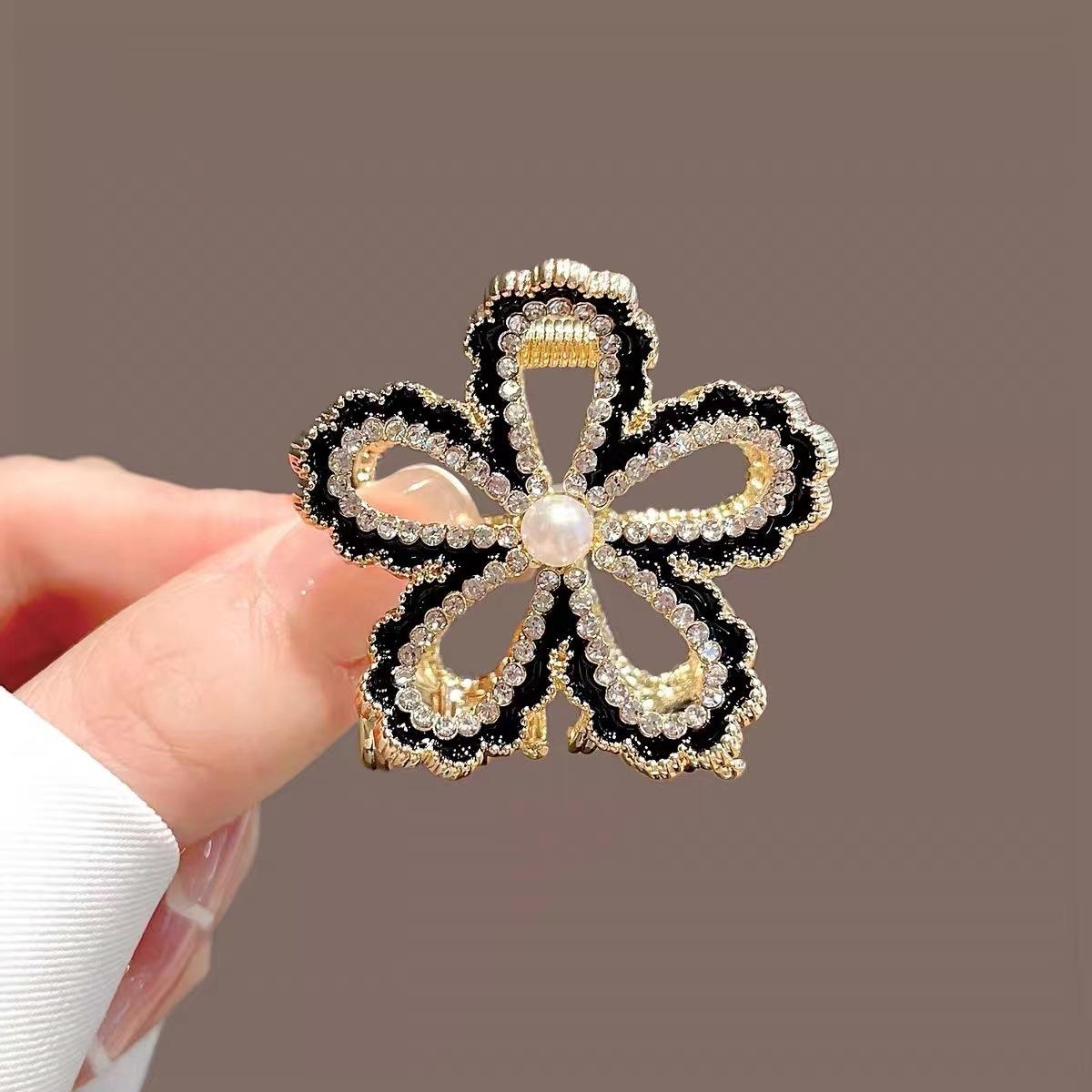 Clip de pelo con forma de flor de diamante de imitación hueco Advanced Sense, mediano, elegante, para la parte trasera de la cabeza, con forma de tiburón, para mujer