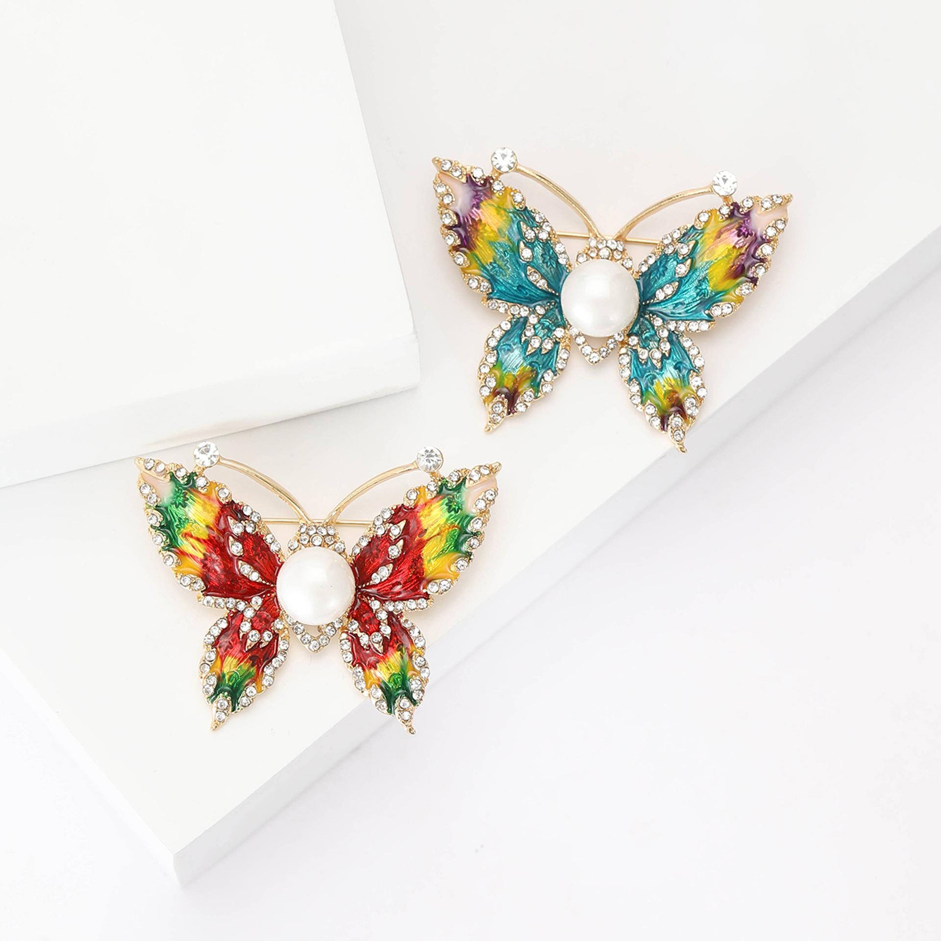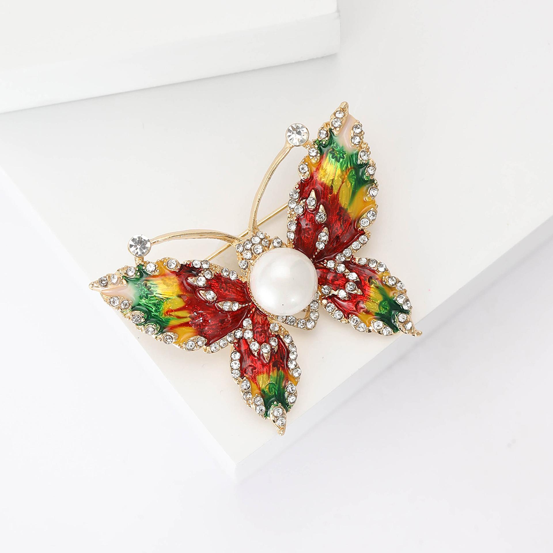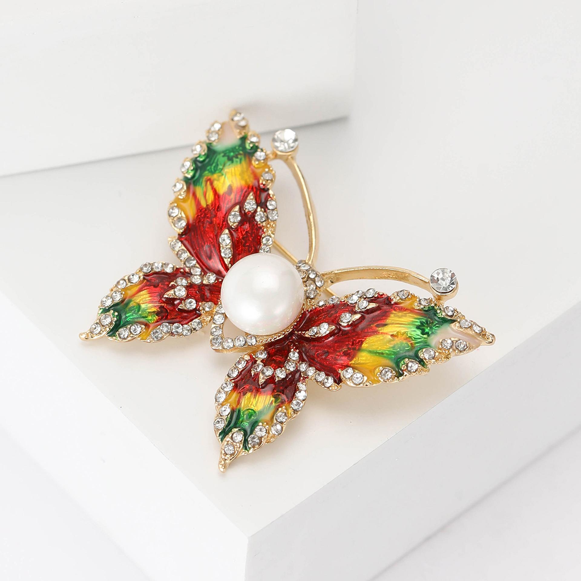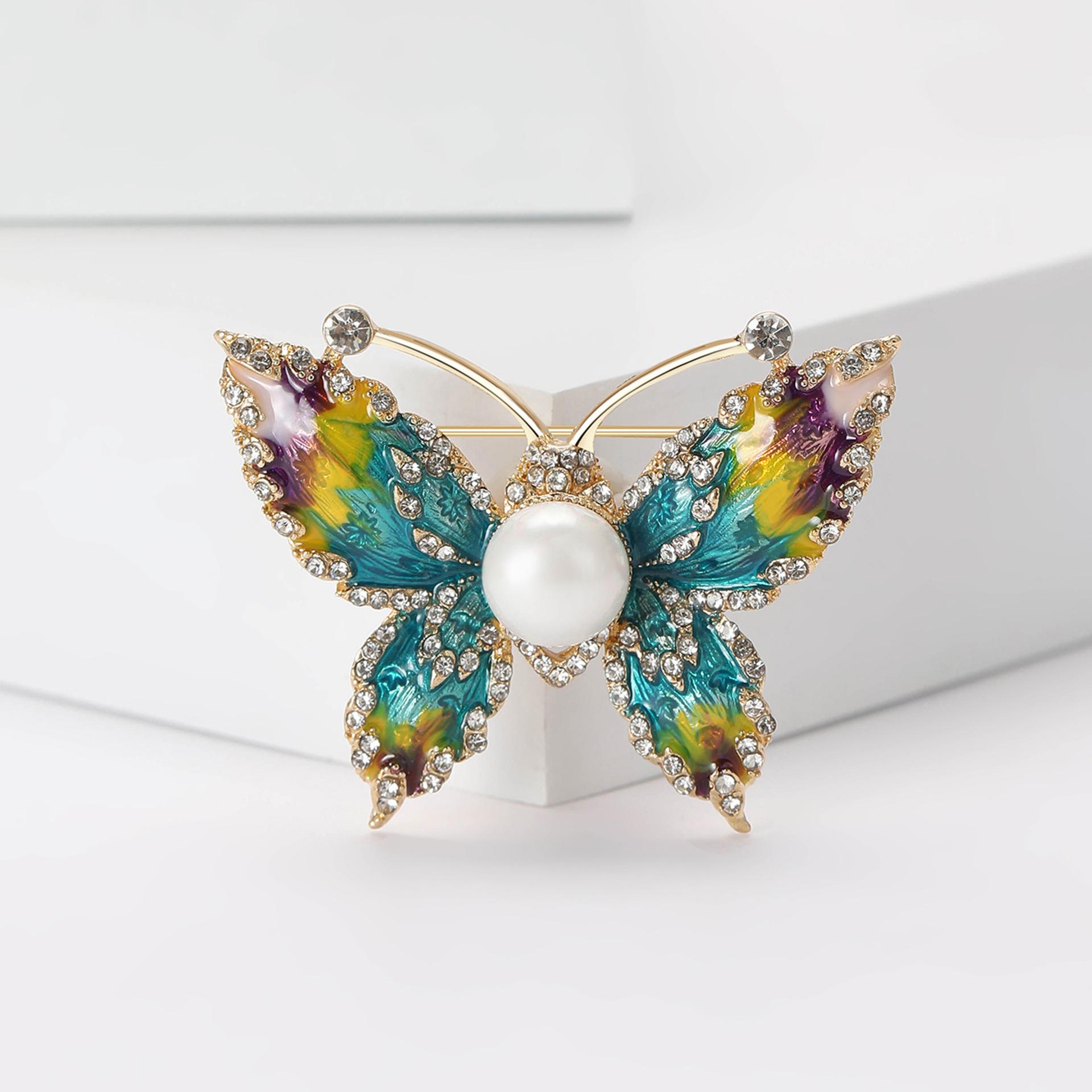 Broche de mariposa con perla esmaltada de aleación de moda coreana, exquisito y creativo broche para traje de mujer, ramillete, joyería
