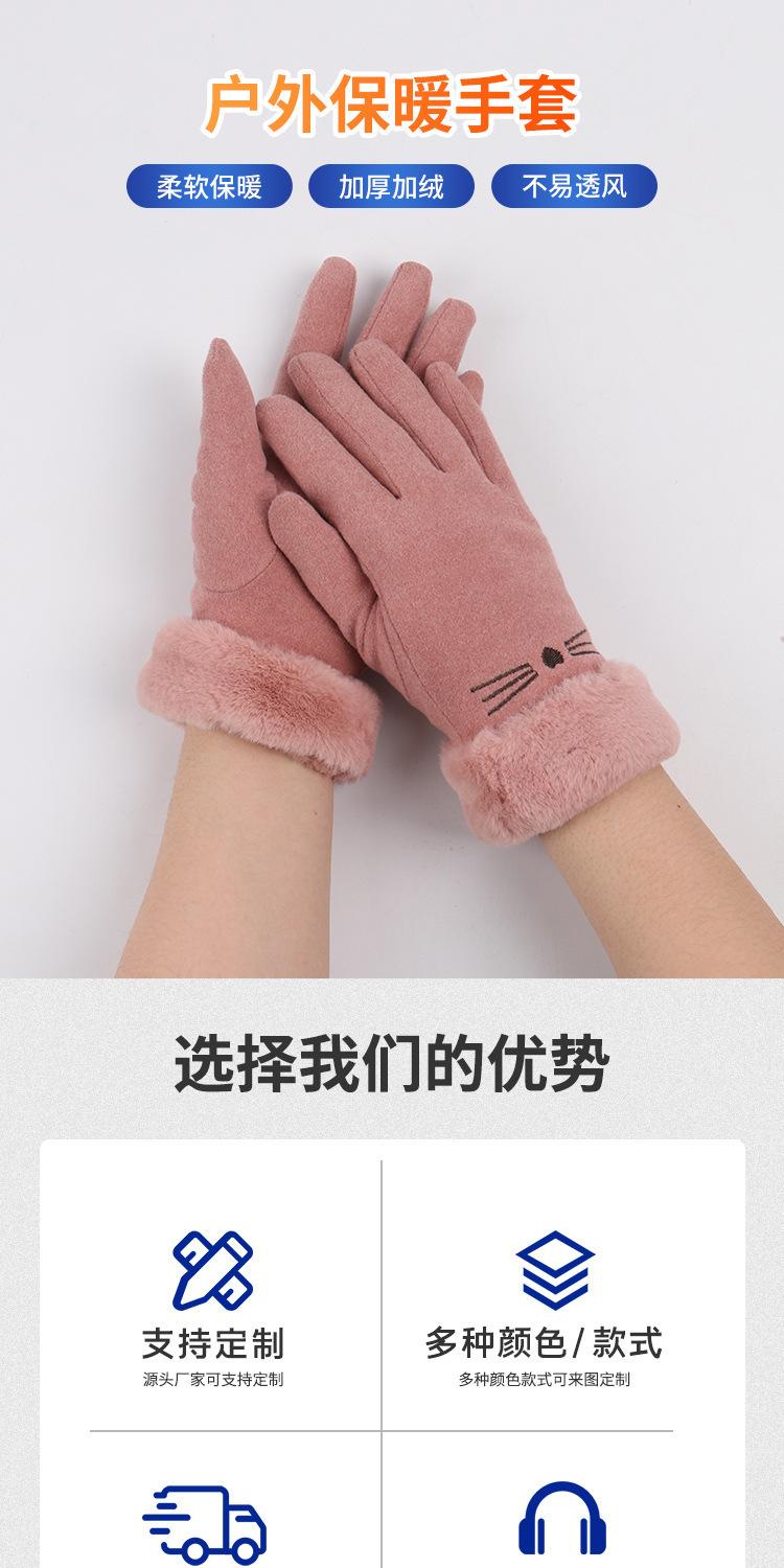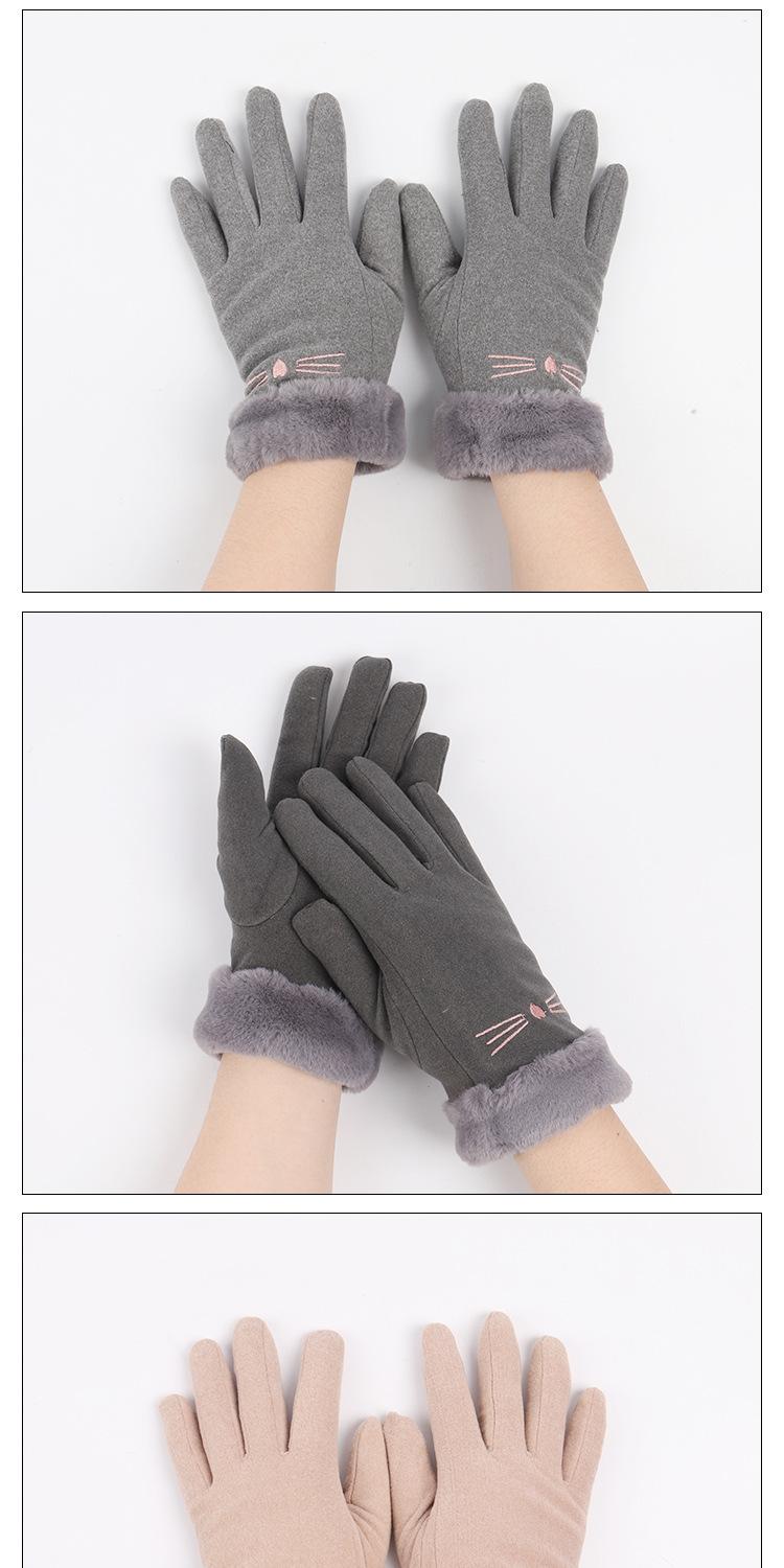 Guantes de gamuza para mujer, estilo coreano, de una sola línea, con forro polar, cálidos para conducir al aire libre, para estudiantes, con pantalla táctil