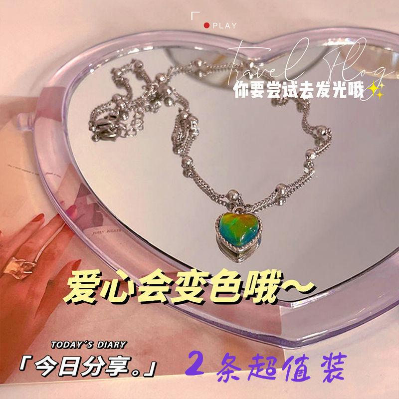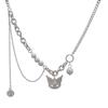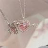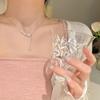 Heart Pendant Necklace, Double-layer pearl necklace, Flash Diamond split heart necklace, Hollow butterfly, Mag...