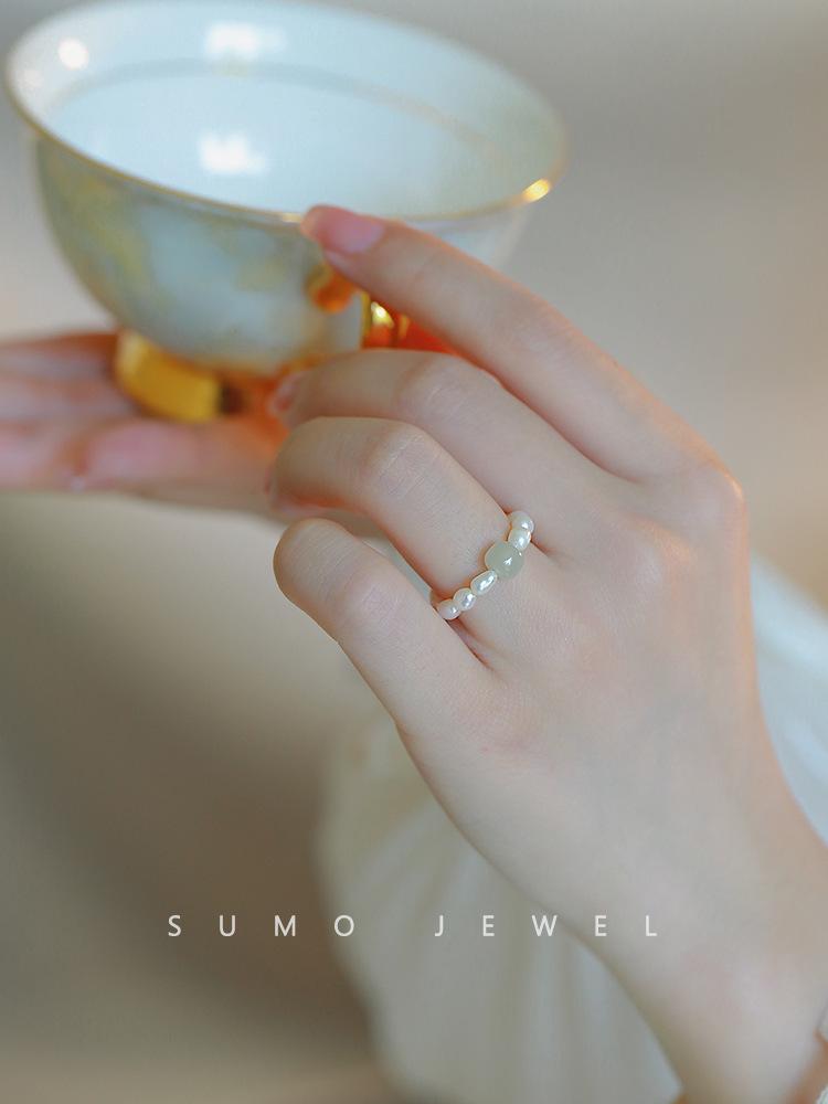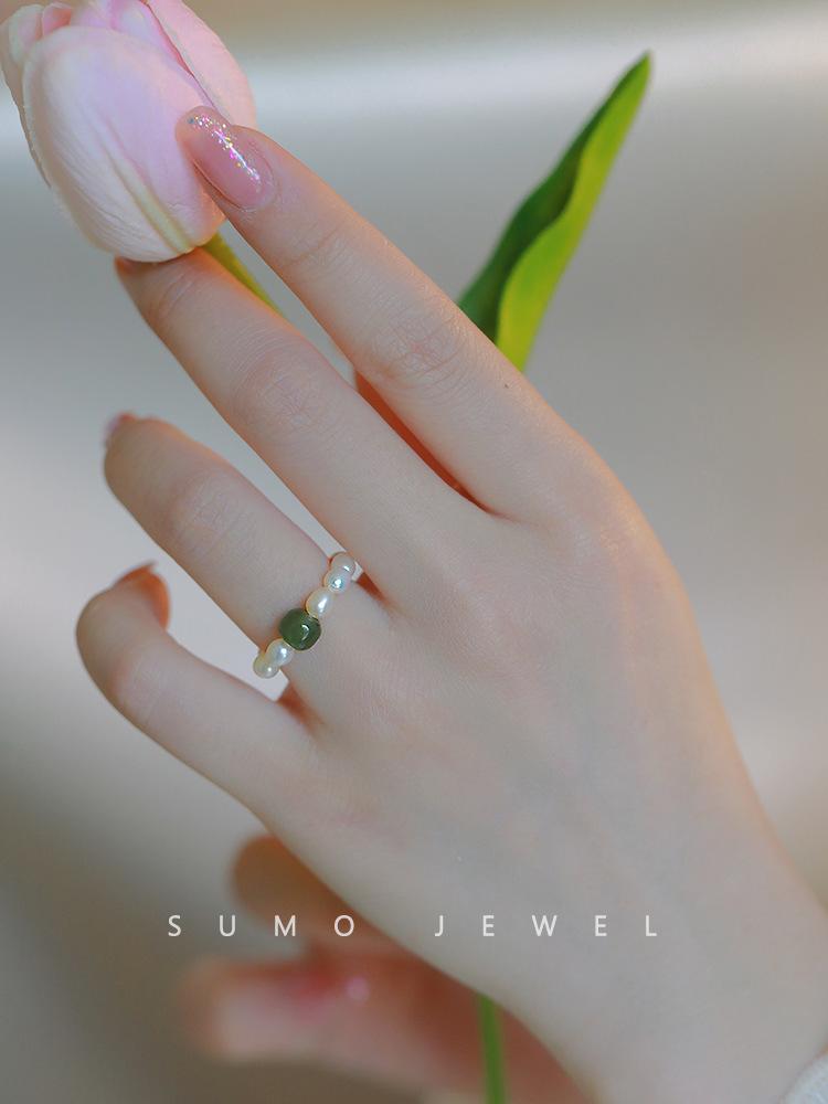 Anillo de Perlas de Diseño Nicho Minimalista para Mujer Ins Estilo Lujo Accesible Moderno Elegante Versátil Anillo 2024 Nuevo Estilo