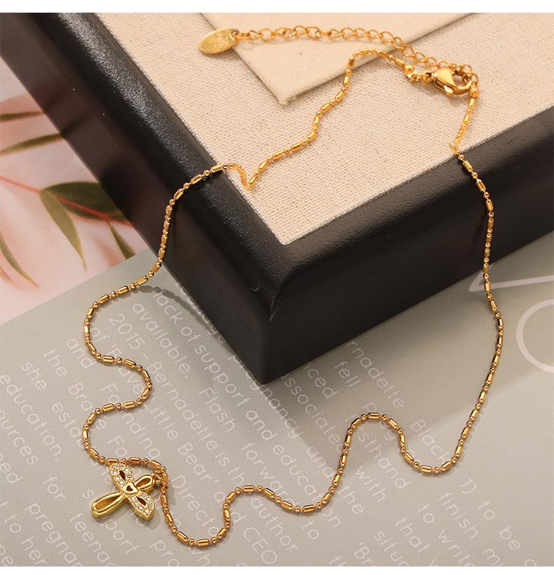 Nuevo collar geométrico de diamantes chapado en oro de acero de titanio de lujo ligero con diseño de nicho simple de moda transfronteriza para mujer