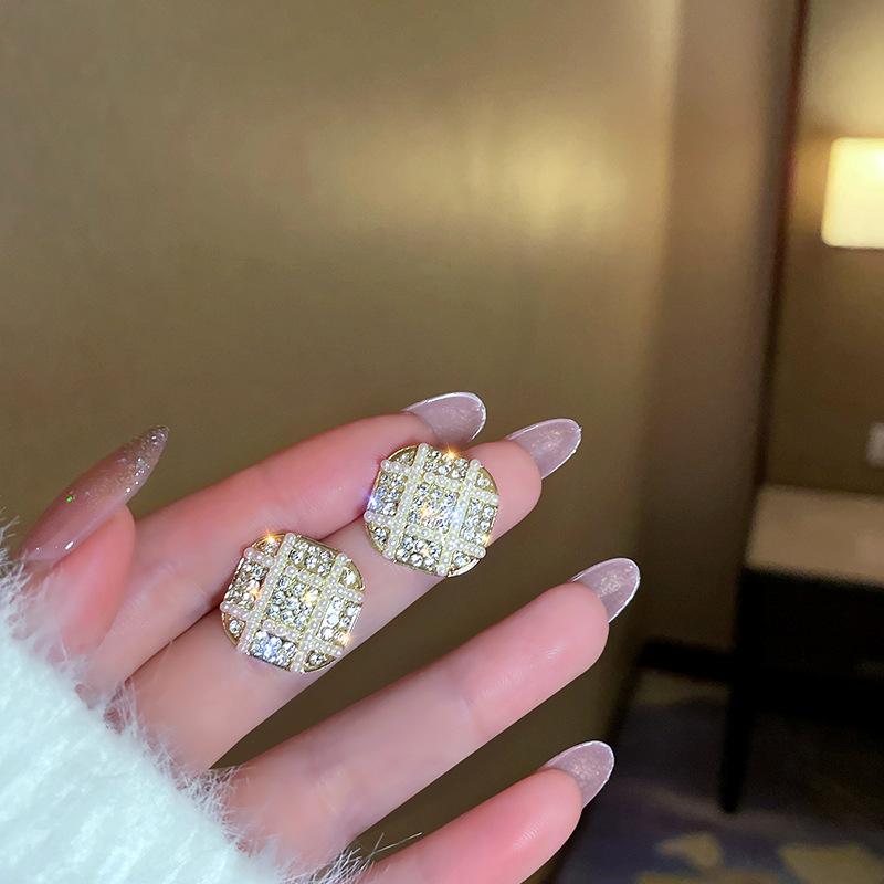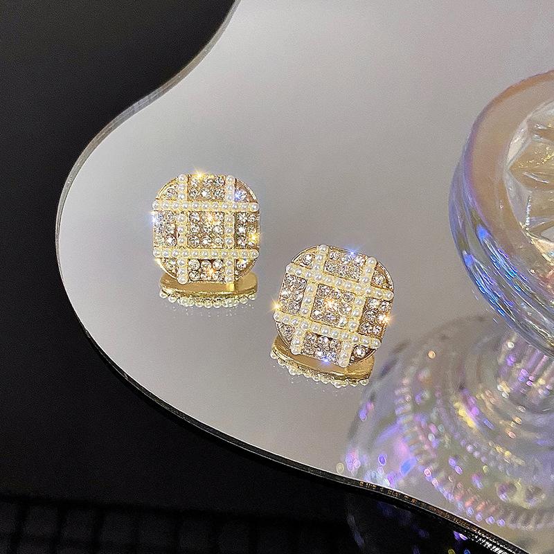 Pendientes de plata S925 con forma de aguja de Corea del Sur, con diamantes y perlas, nuevos y modernos, sencillos y ligeros, de lujo.