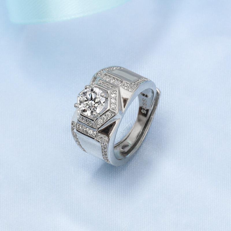 Versión coreana de anillo con microincrustaciones en vivo venta al por mayor de diamantes dominante chorro de arena moissanita anillo grande para hombre una generación de cabello