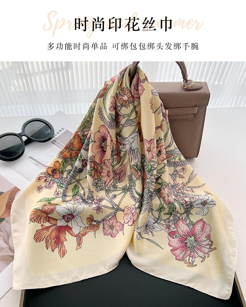 Bufanda cuadrada pequeña de seda con flores para primavera y otoño, ideal para combinar con camisas de mujer, protección para el cuello, decoración de alta calidad.