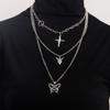 Collar de doble capa con borla de mariposa y cadena de garra con diamantes de imitación, estilo hip-hop callejero, joyería transfronteriza europea y americana.