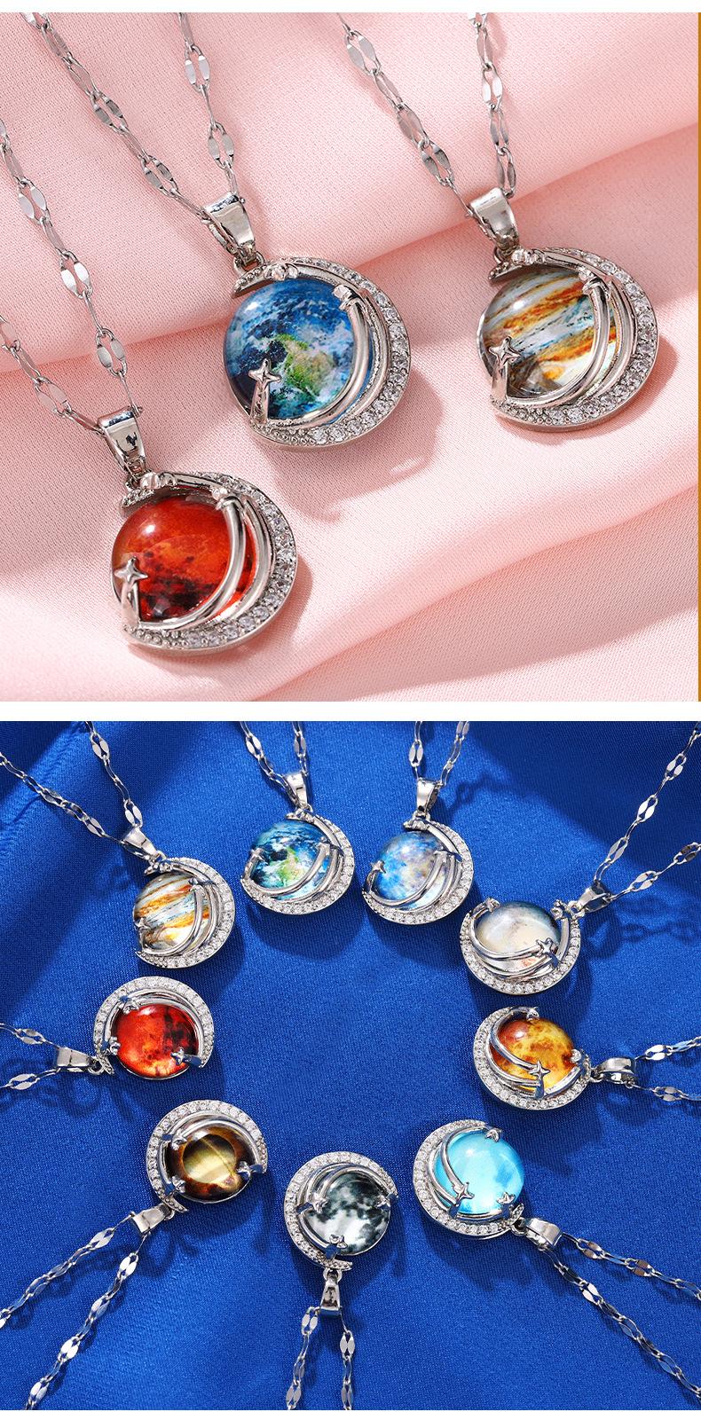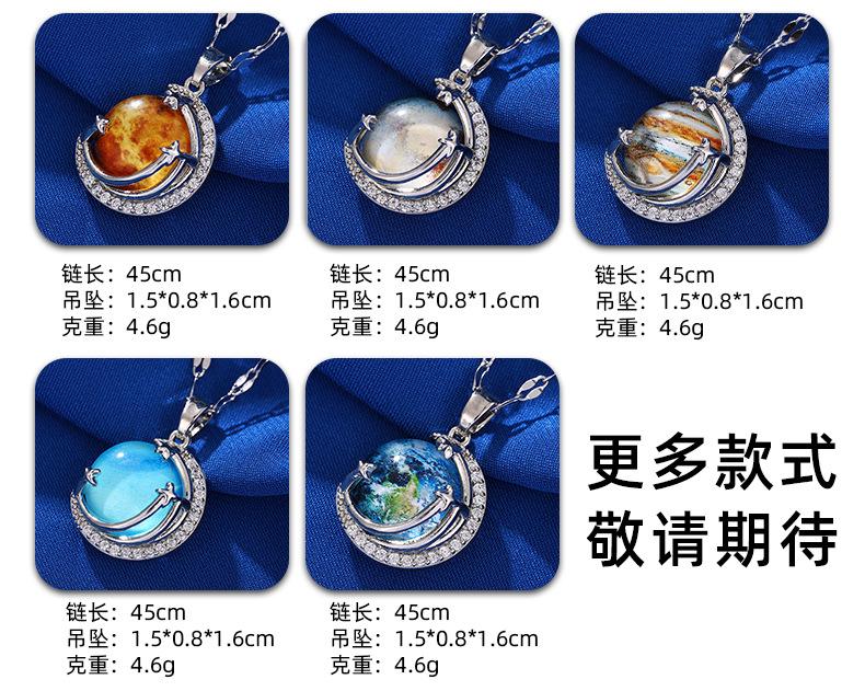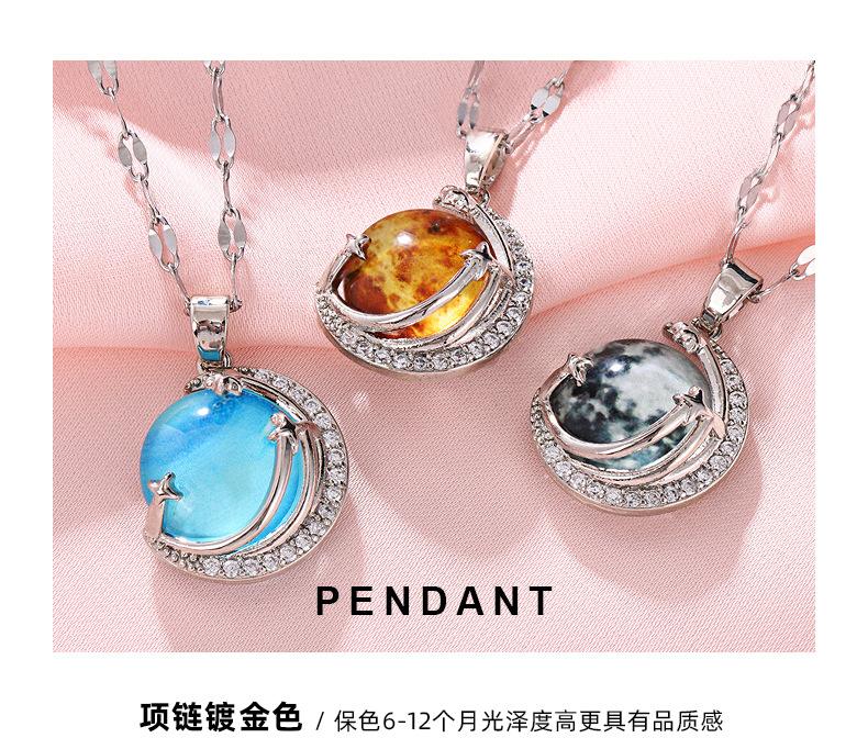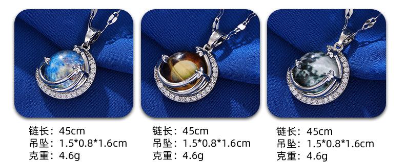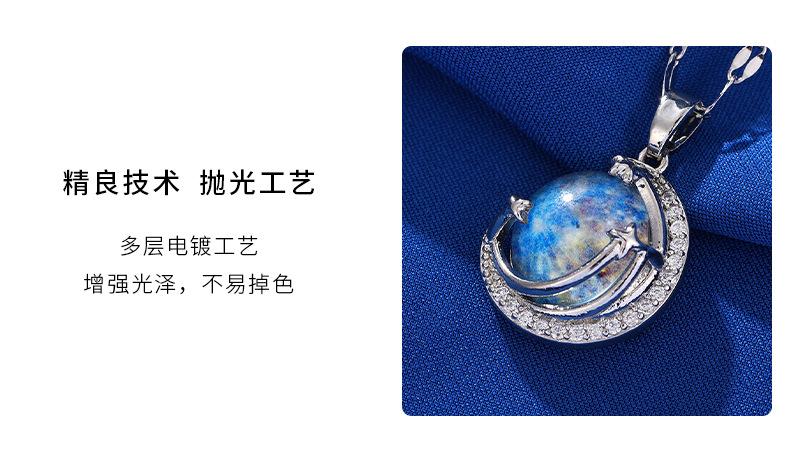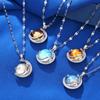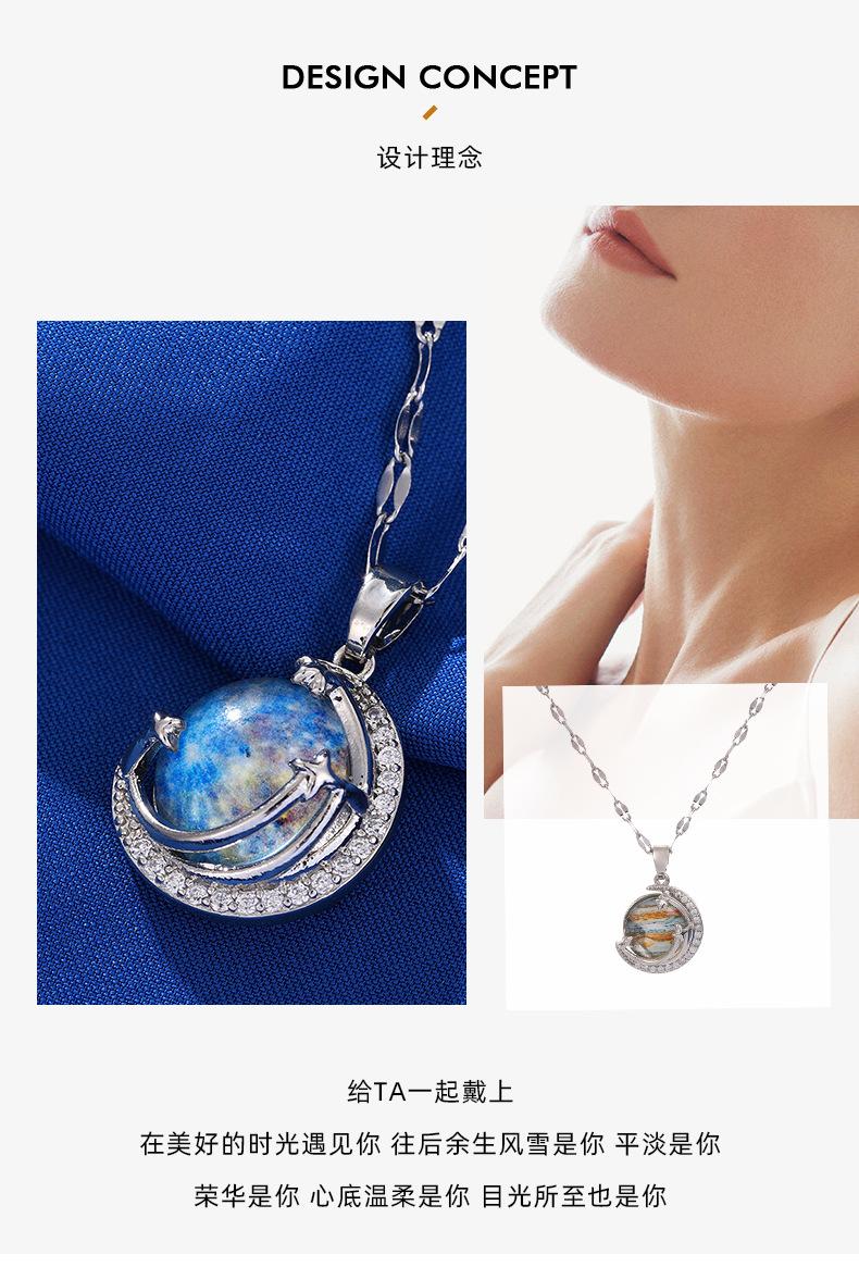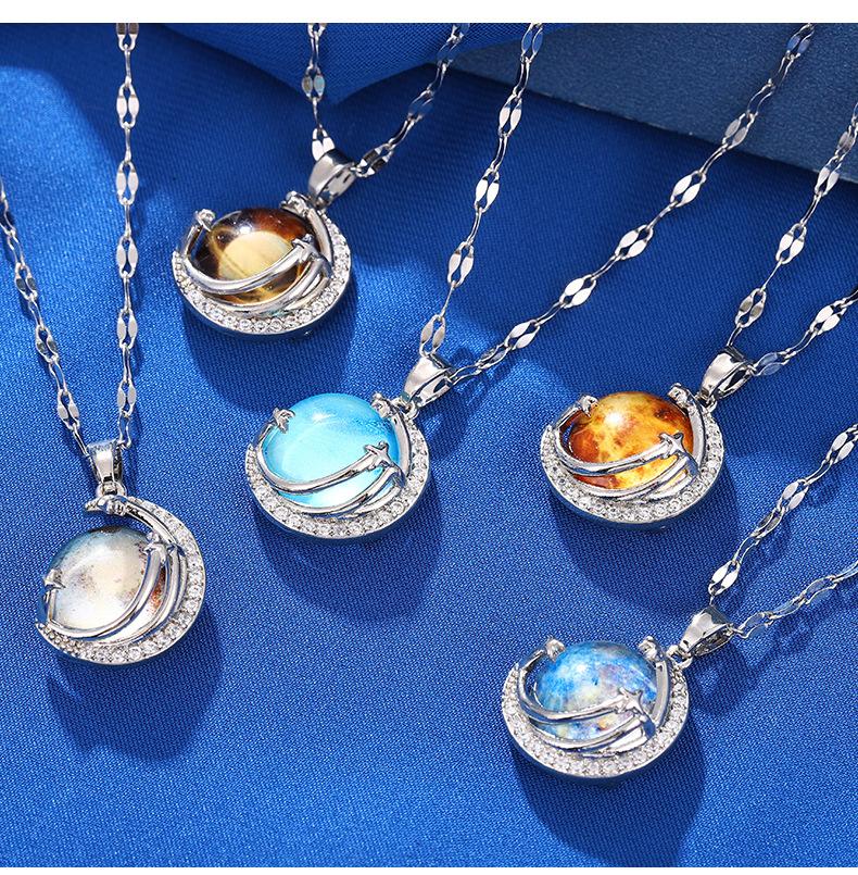 Lujo Ligero y Alta Gama Azul Cielo Estrellado con Incrustaciones de Cristal Colgante Creativo de la Tierra Collar Transfronterizo de Saturno Cadena para Clavícula de Mujer