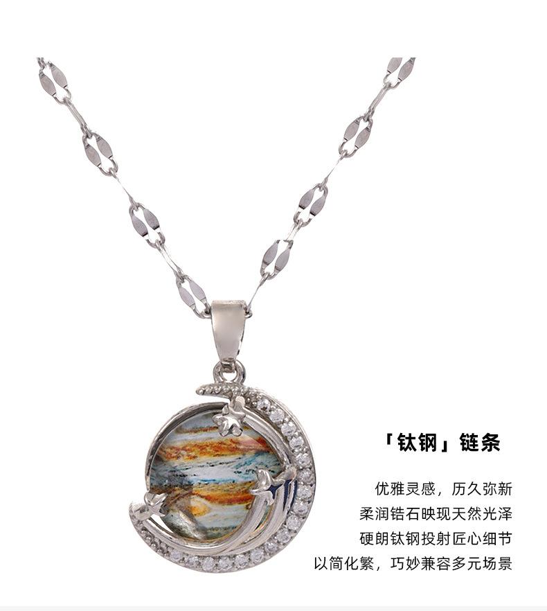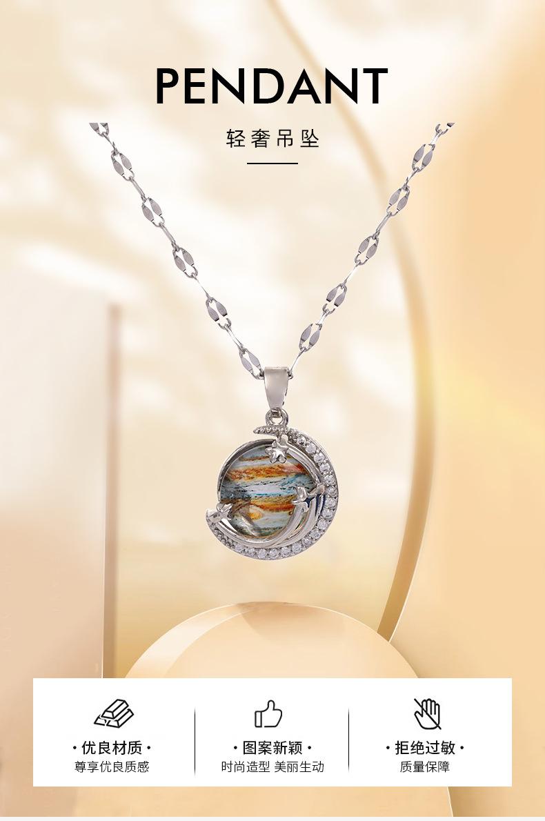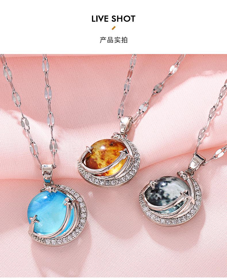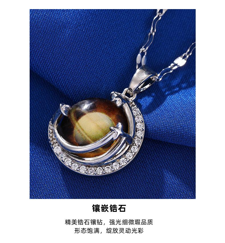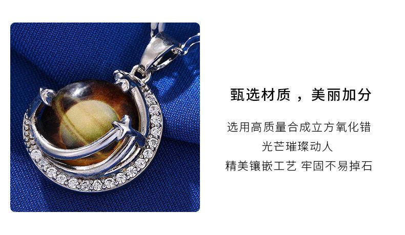 Lujo Ligero y Alta Gama Azul Cielo Estrellado con Incrustaciones de Cristal Colgante Creativo de la Tierra Collar Transfronterizo de Saturno Cadena para Clavícula de Mujer