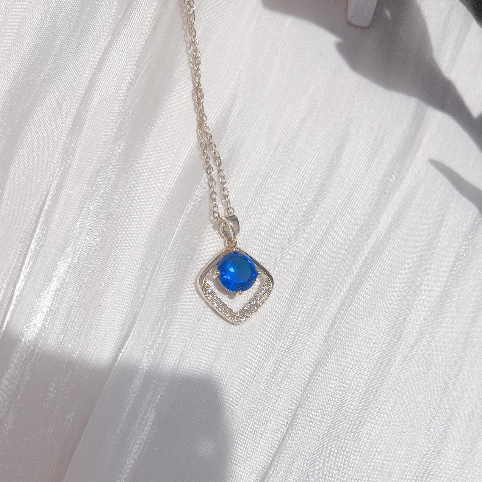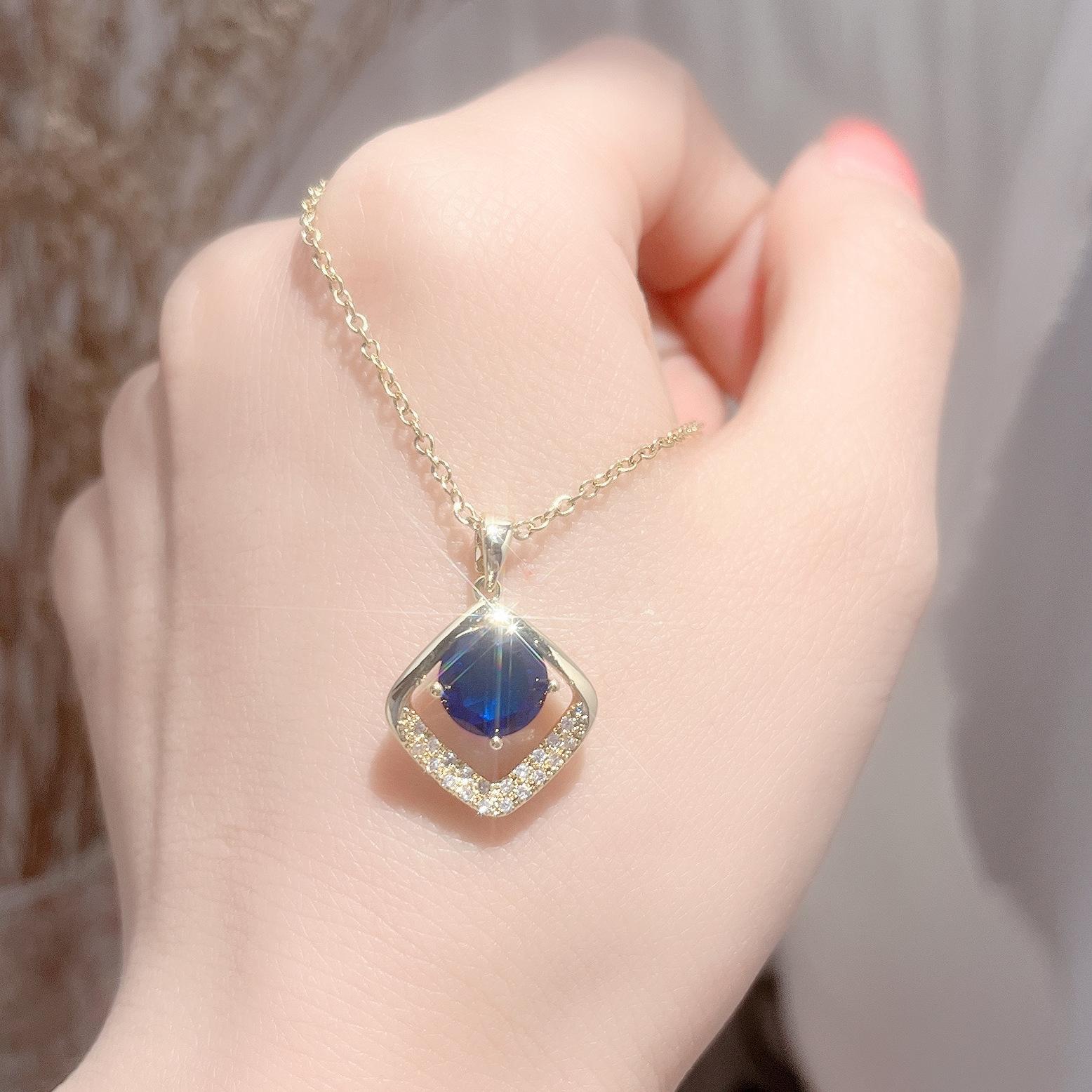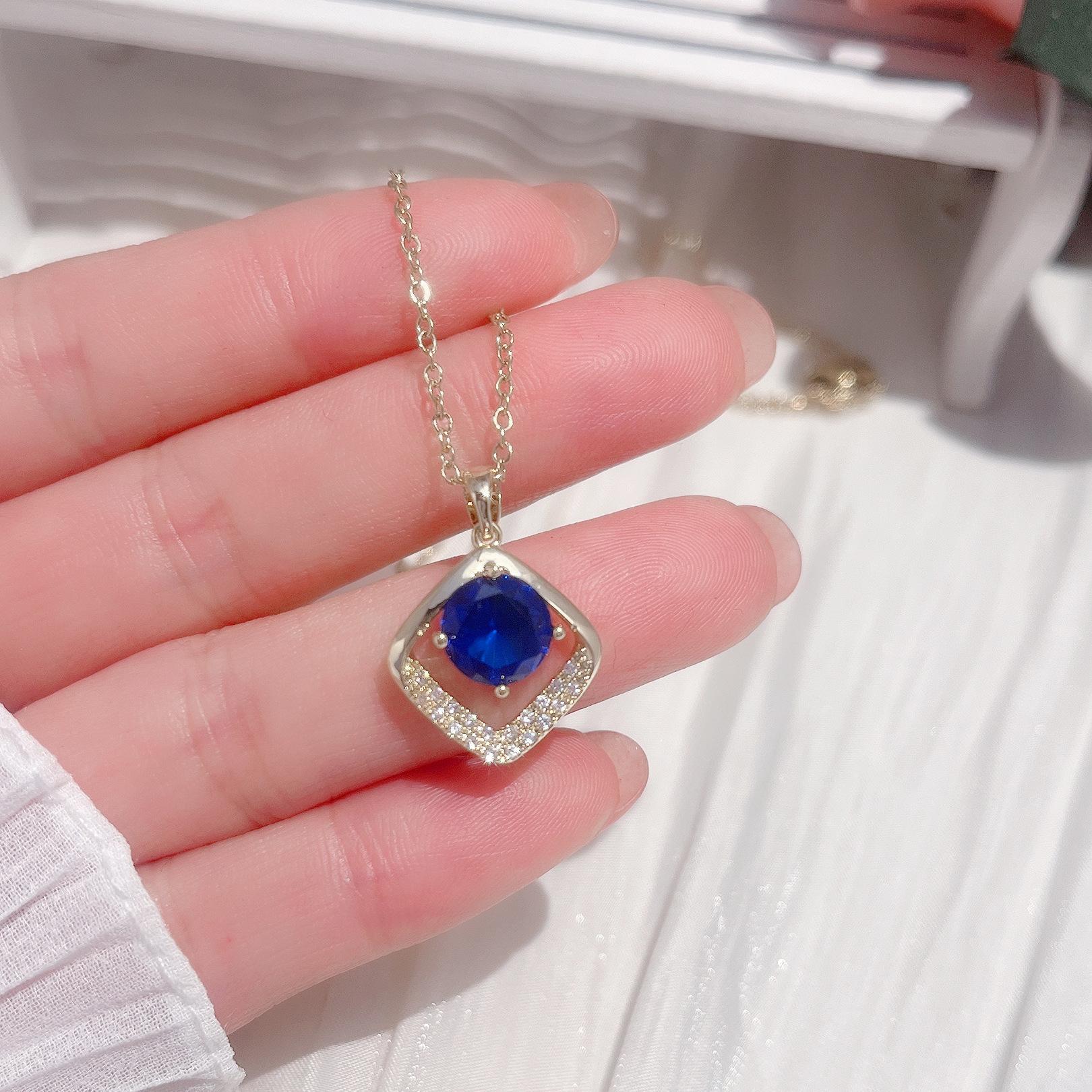Collar de cristal geométrico azul de diseño para mujer 2022, nuevo y elegante collar de cadena de clavícula corta roja de red.