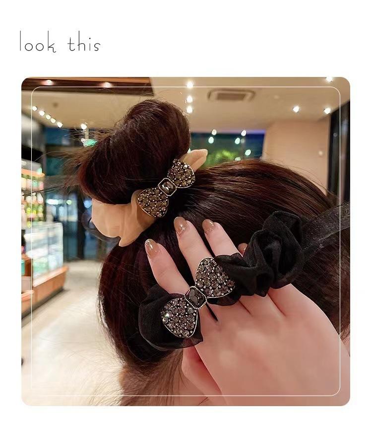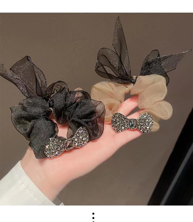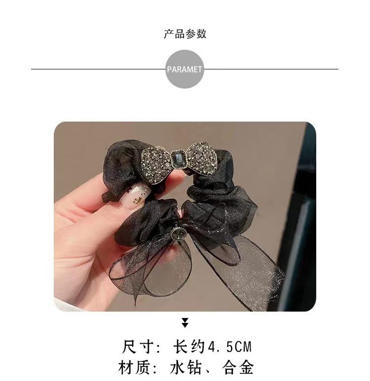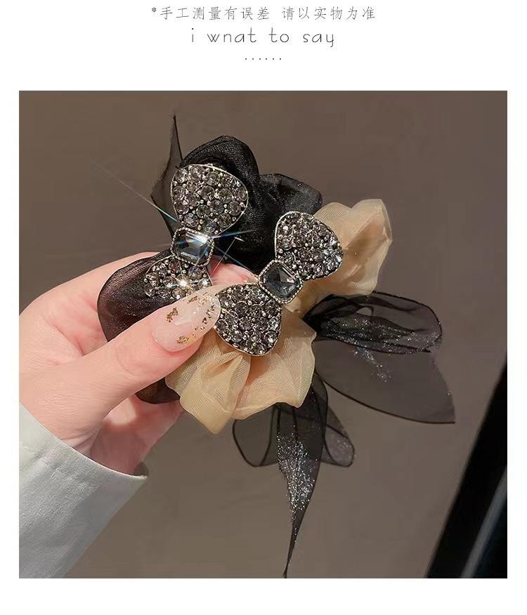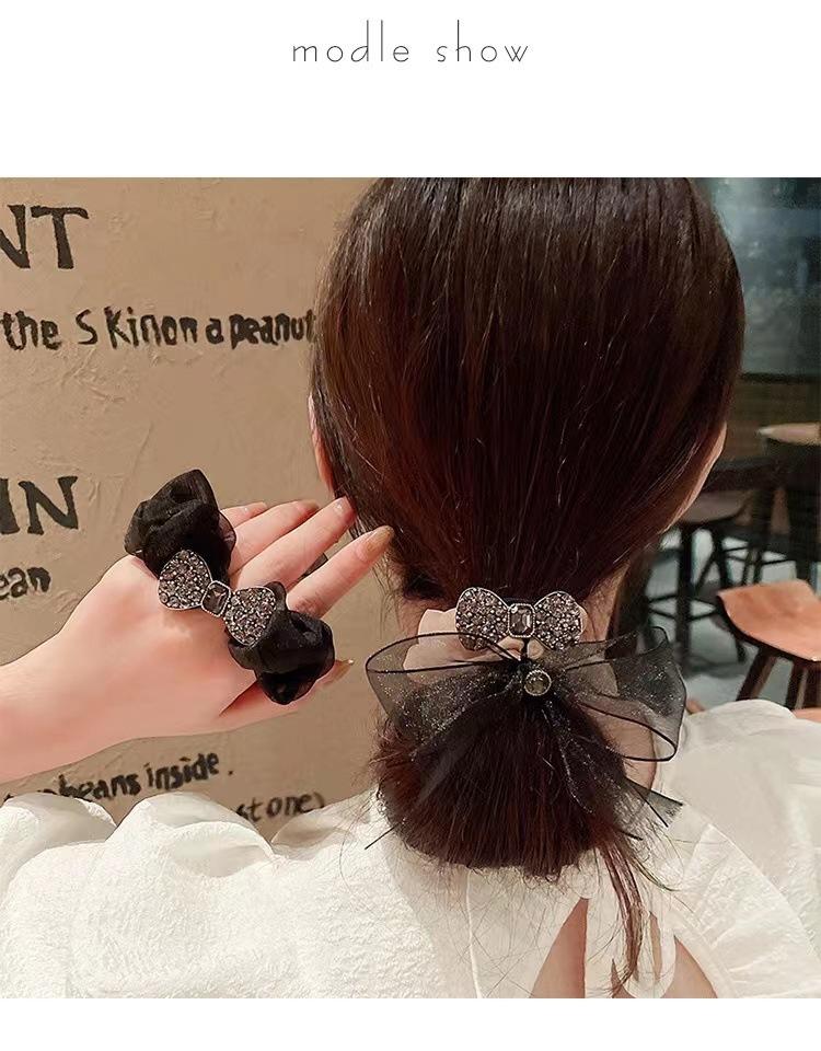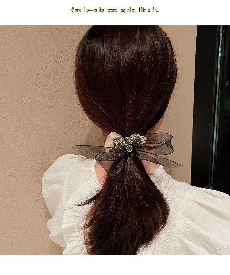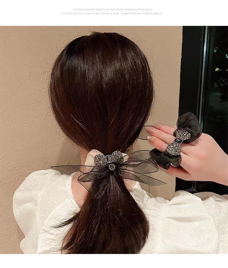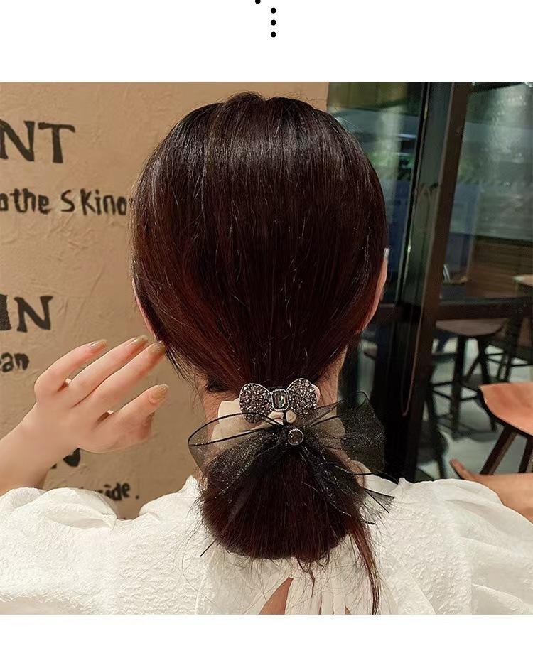 Anillo para el cabello de organza de alta calidad de Corea, lazo para el cabello, cuerda para el cabello, banda de goma con diamantes de imitación exquisita y sencilla, cuerda para la cabeza con forma de bola para mujer