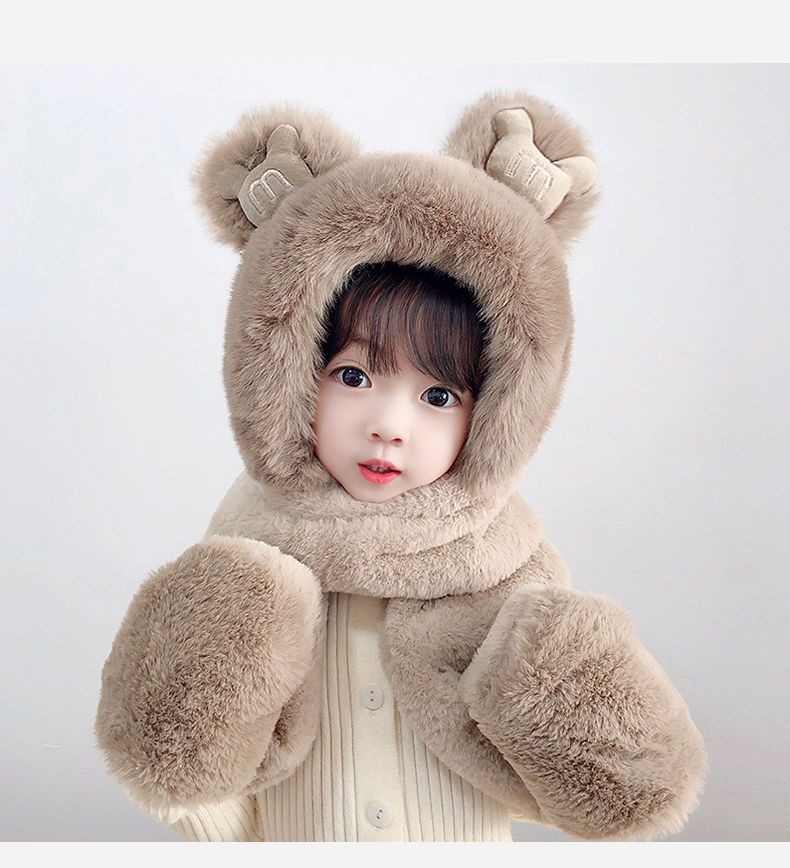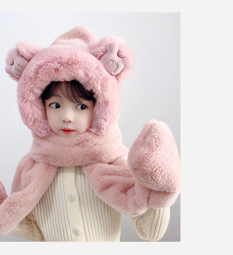 Gorro y bufanda integrados para bebé otoño e invierno, protección para los oídos para bebés y niños pequeños, forro polar, invierno, para niños y niñas, súper lindo y súper lindo
