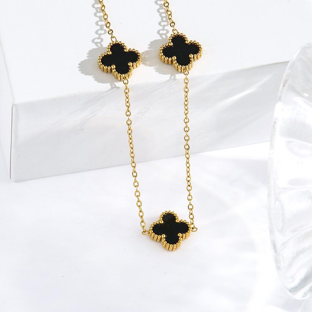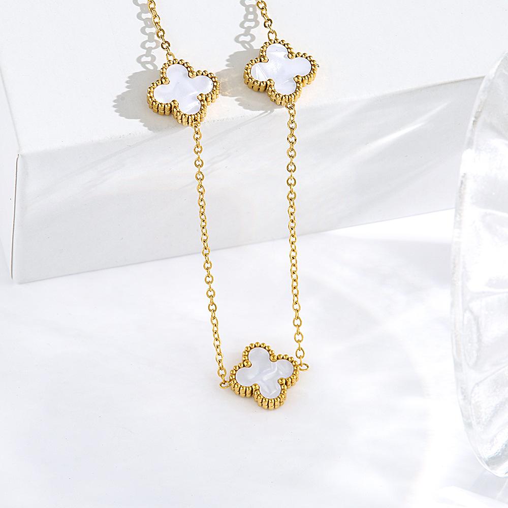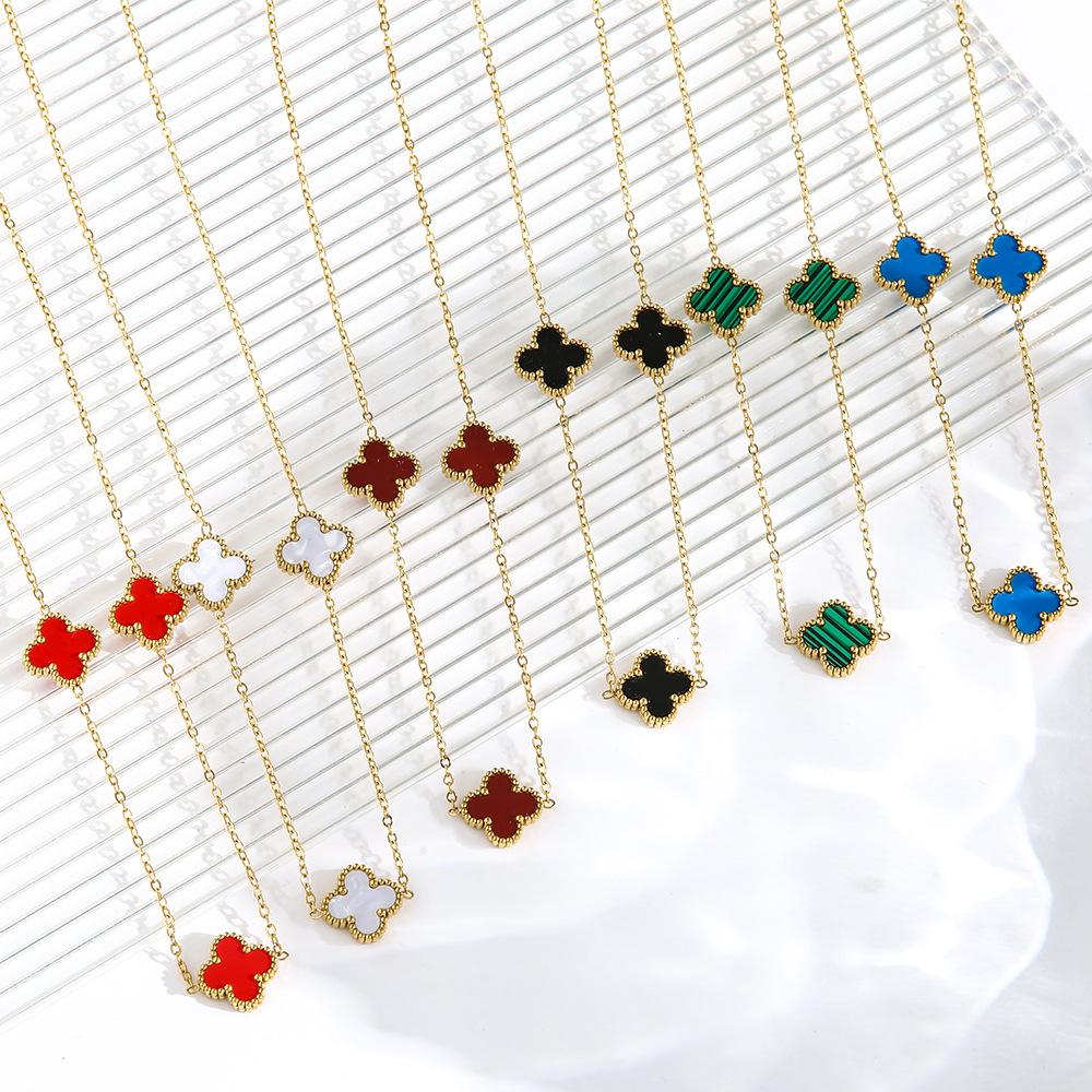 Collar de acero de titanio con trébol de cuatro hojas de la suerte, estilo europeo y americano, de doble cara, dorado, de moda femenina, nueva fábrica al por mayor