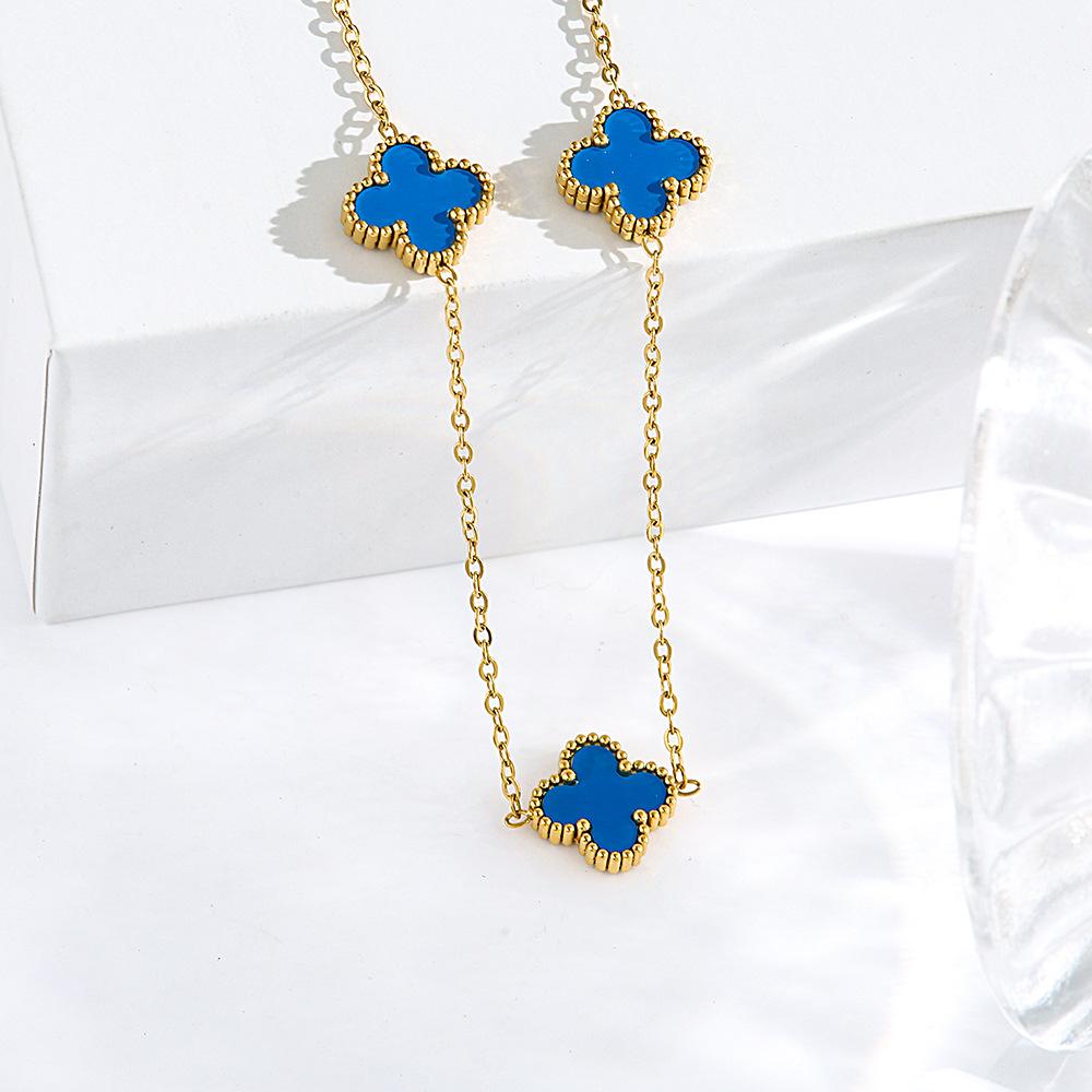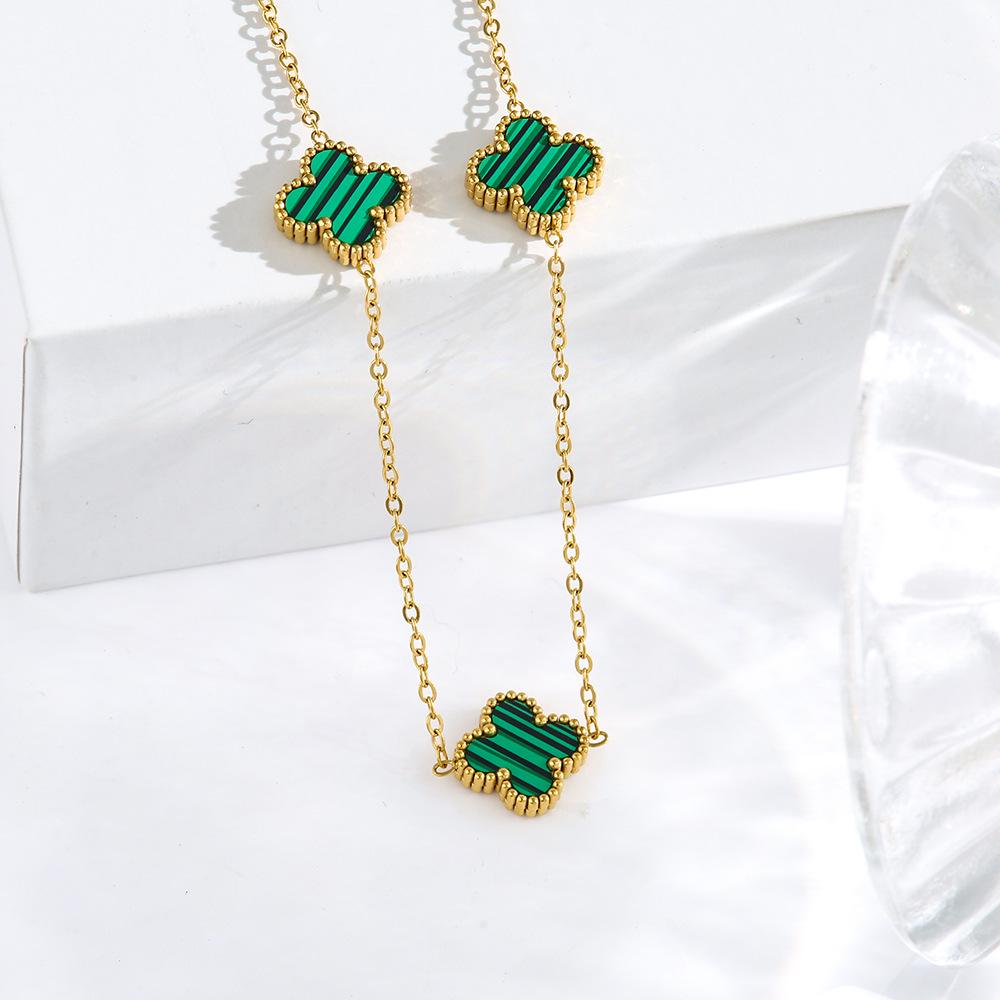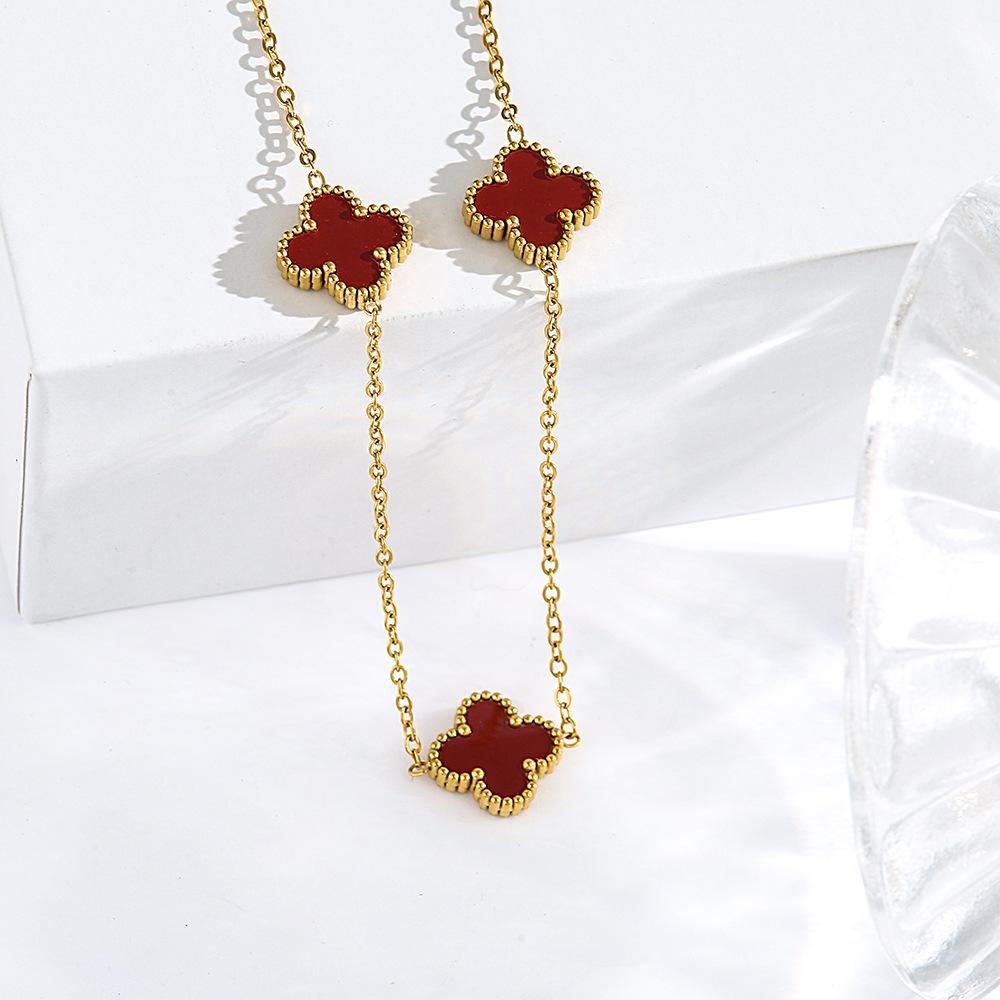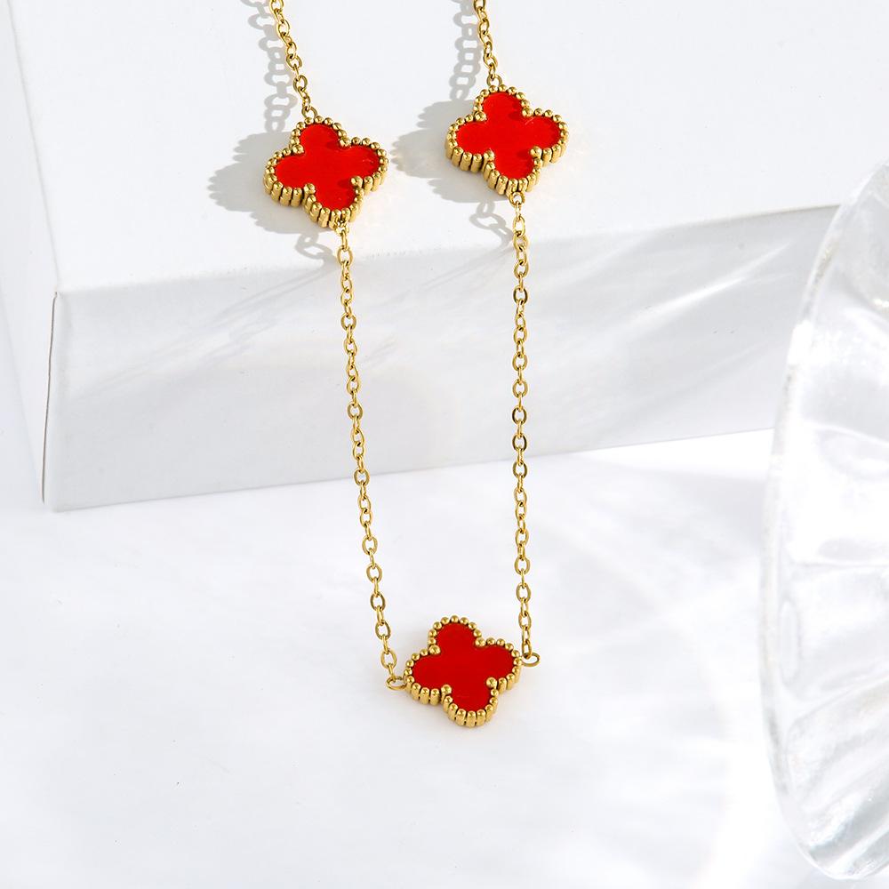 Collar de acero de titanio con trébol de cuatro hojas de la suerte, estilo europeo y americano, de doble cara, dorado, de moda femenina, nueva fábrica al por mayor