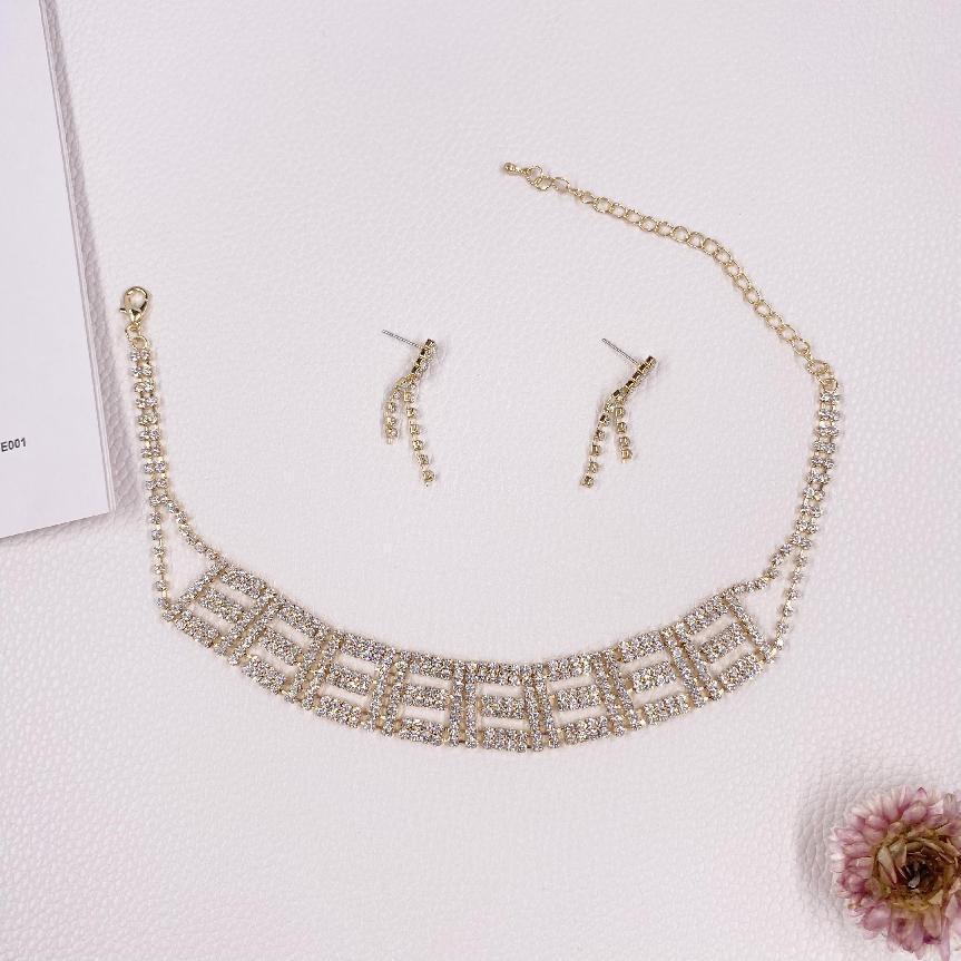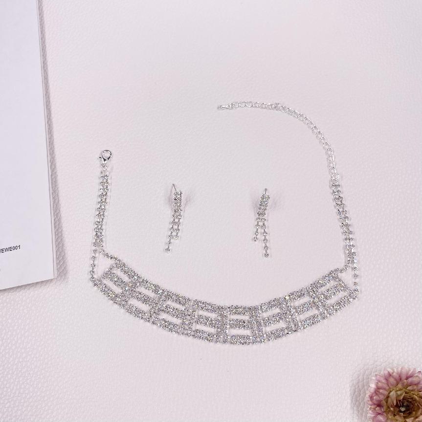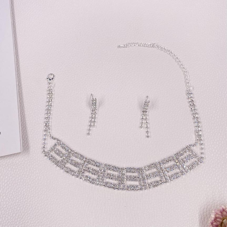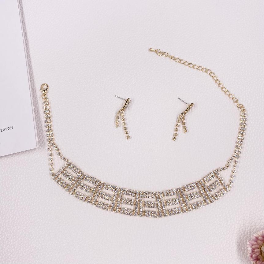 Collar y pendientes cuadrados con cadena de diamantes de imitación para novia, accesorios de fiesta, venta directa de fábrica