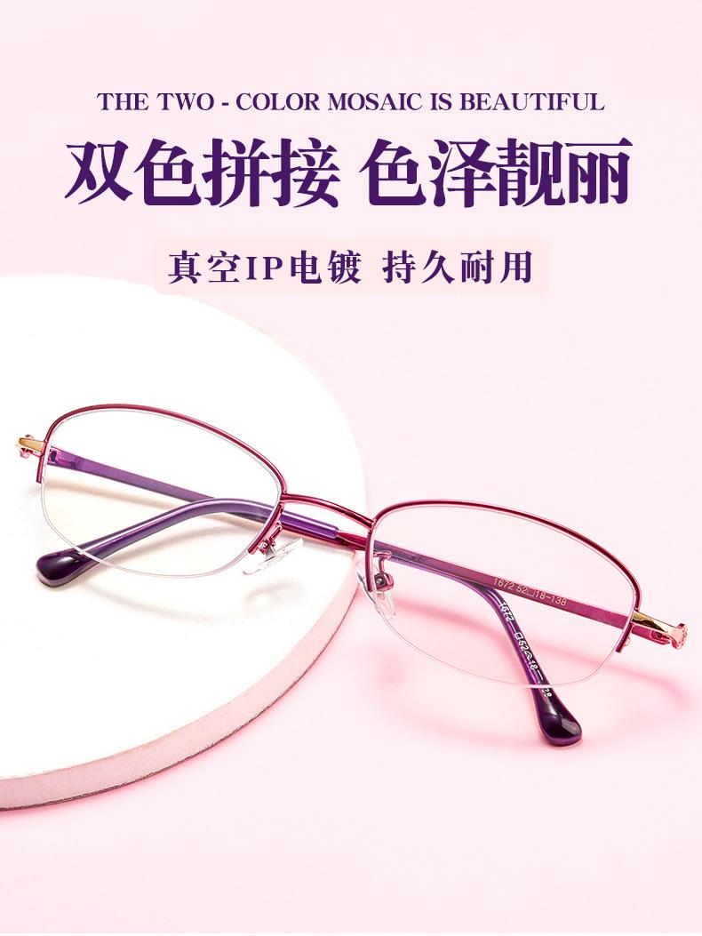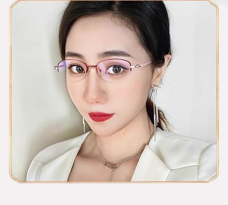 Gafas de lectura HD terminadas al por mayor 1672 anti luz azul hipermetropía elegantes para mujer gafas de medio marco marco lente de resina