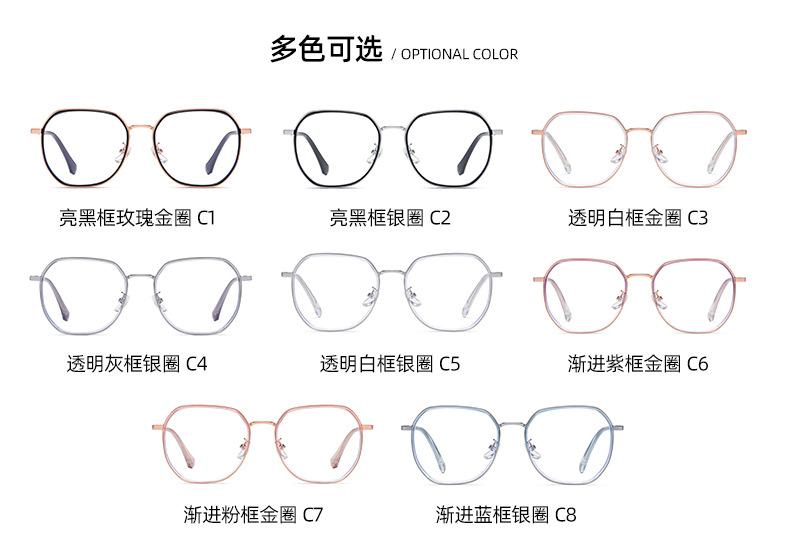 1. Bright black/Rose Gold C1, 2. Bright Black/White Luo C2, 3. Transparent/Rose Gold C3, 4. Gray penetration/W...