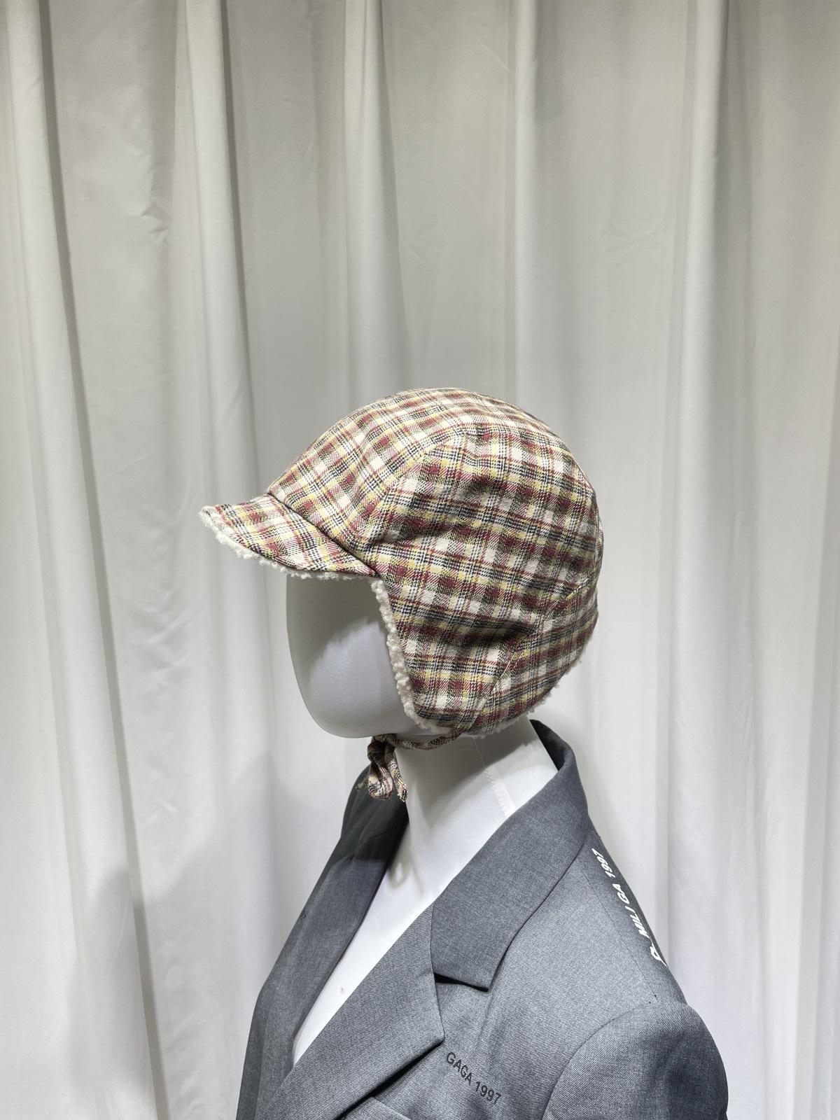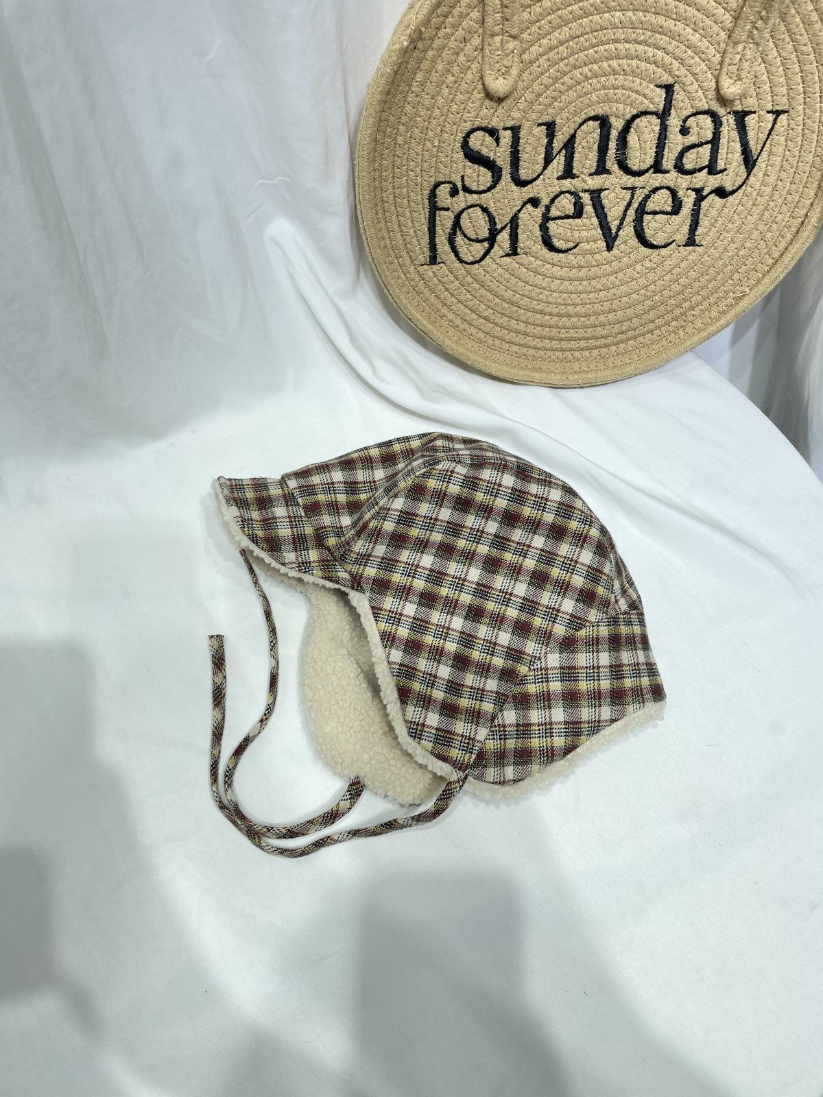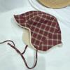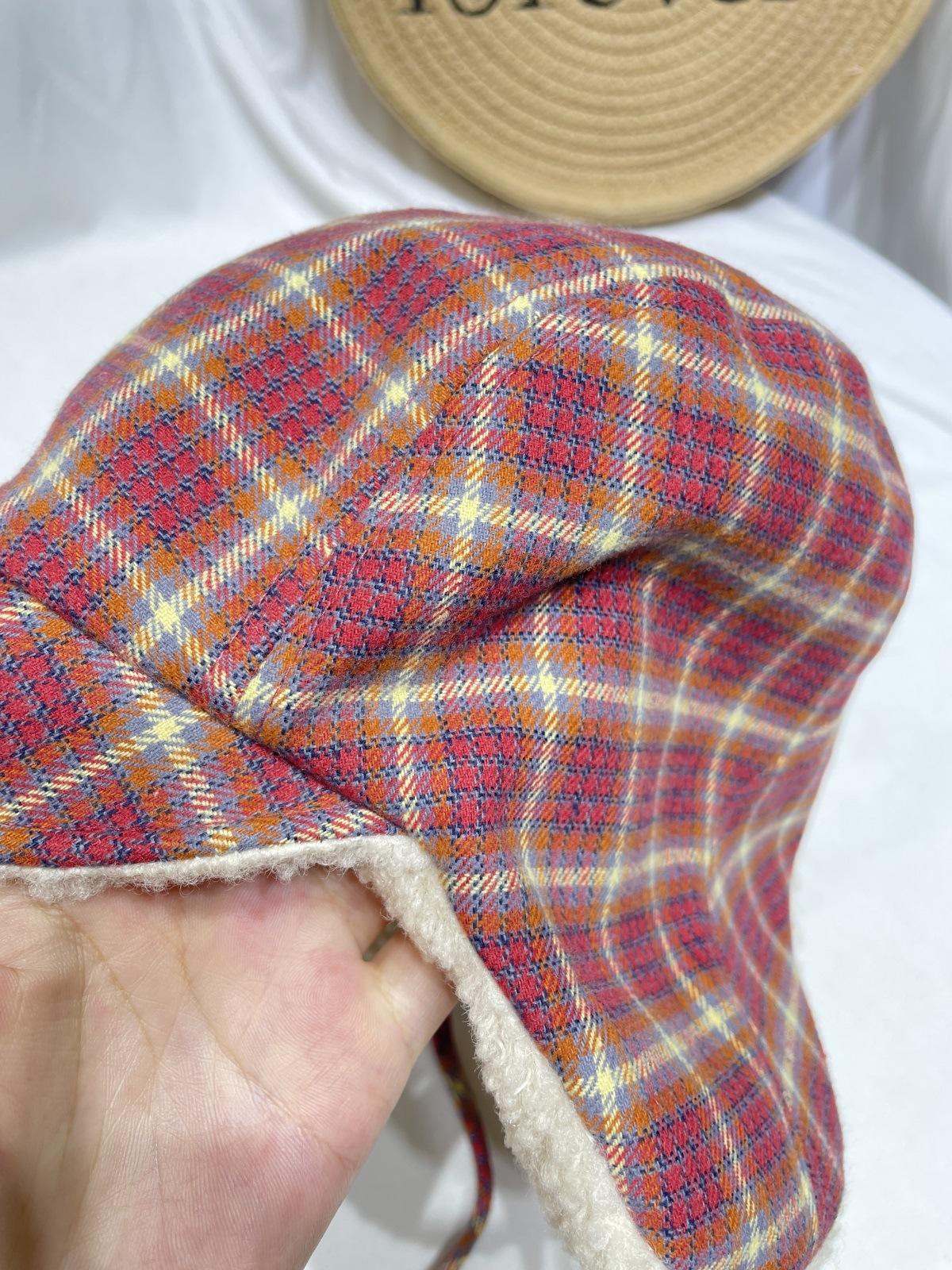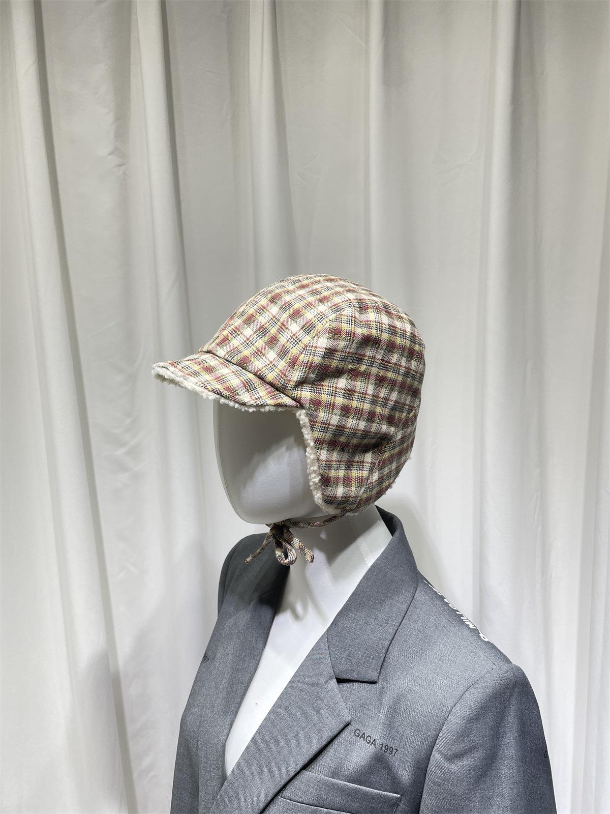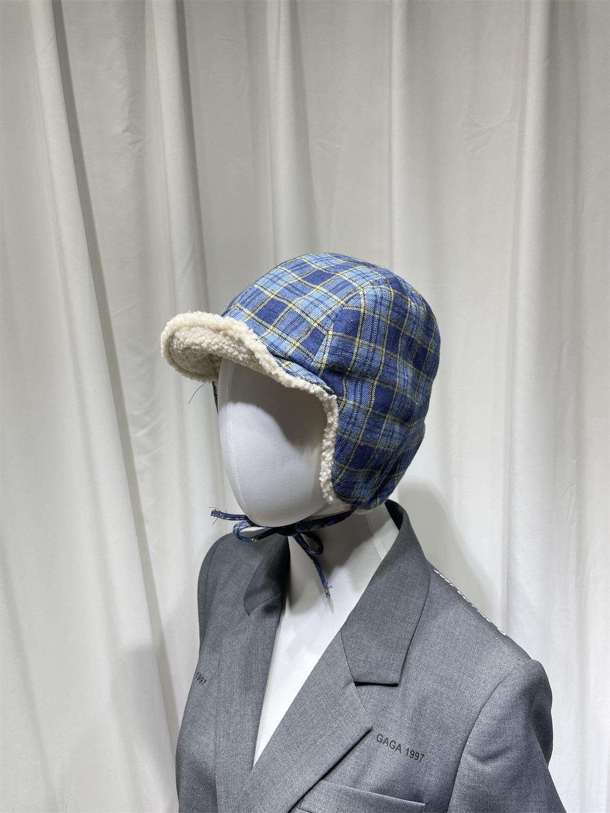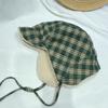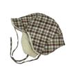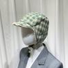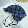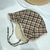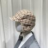 Gorro Lei Feng de lana de cordero a cuadros retro de otoño e invierno para mujer, estilo coreano, a la moda, con protección para las orejas y cálido para todos los partidos, gorro de piloto a la moda.