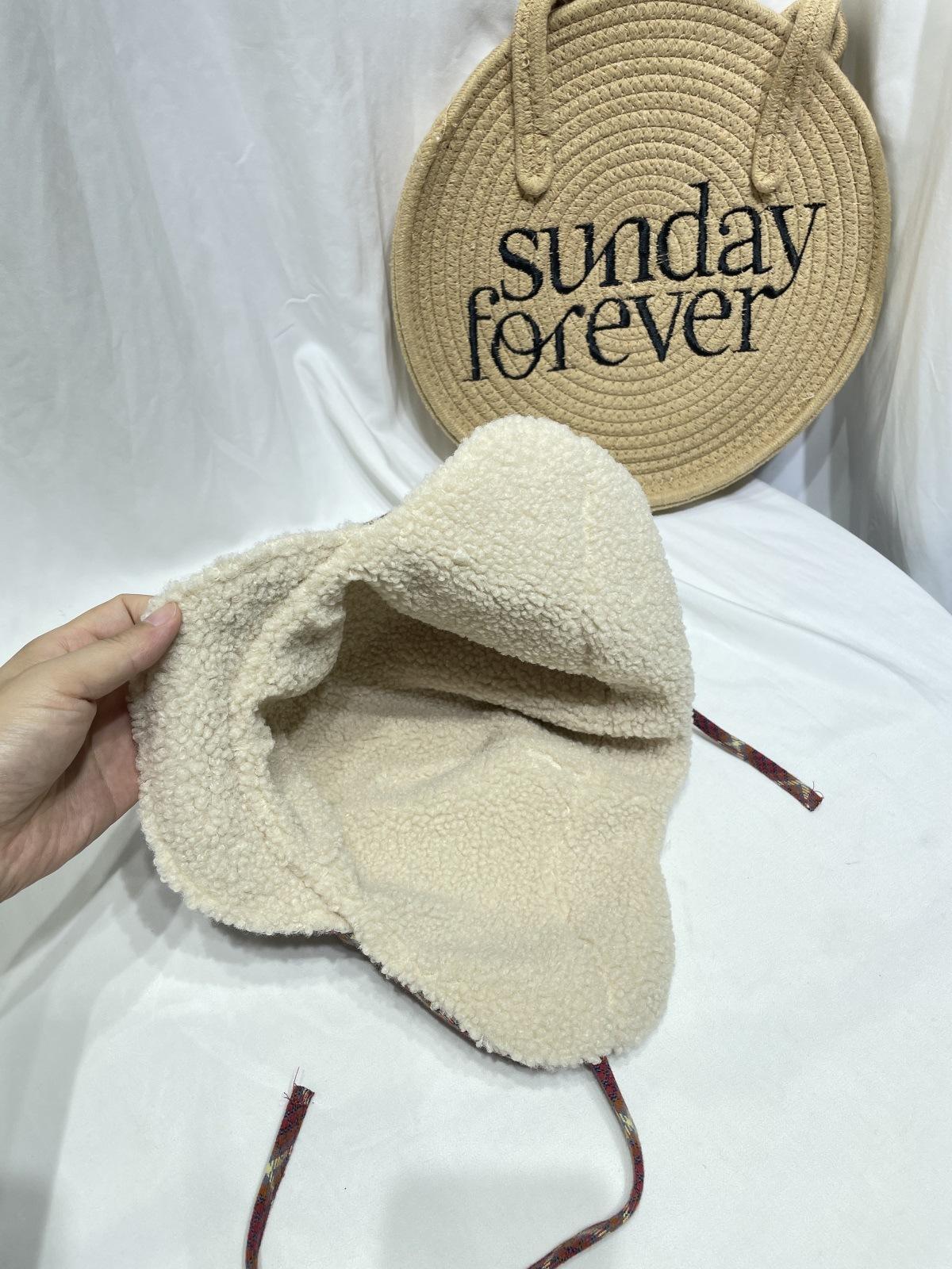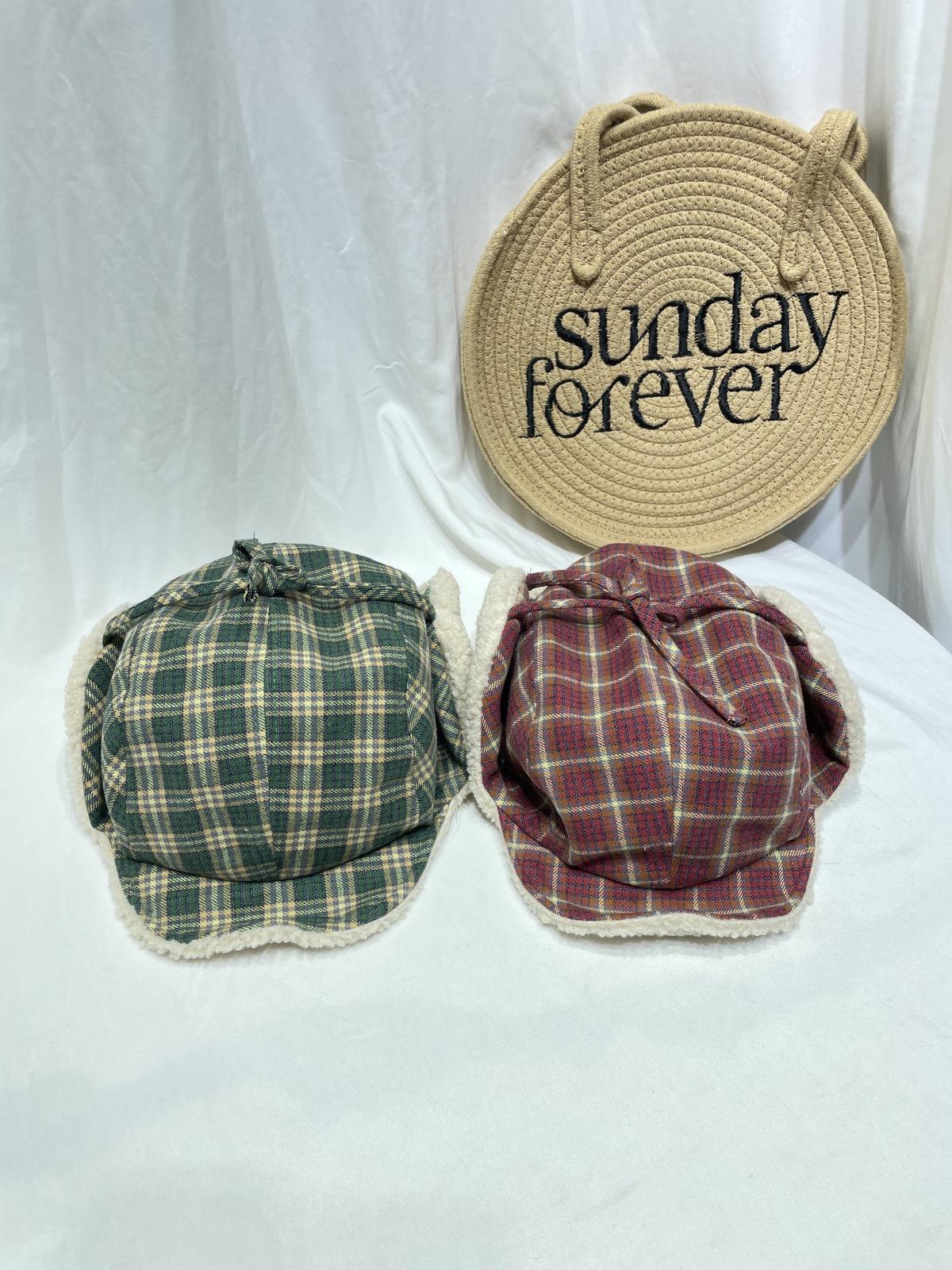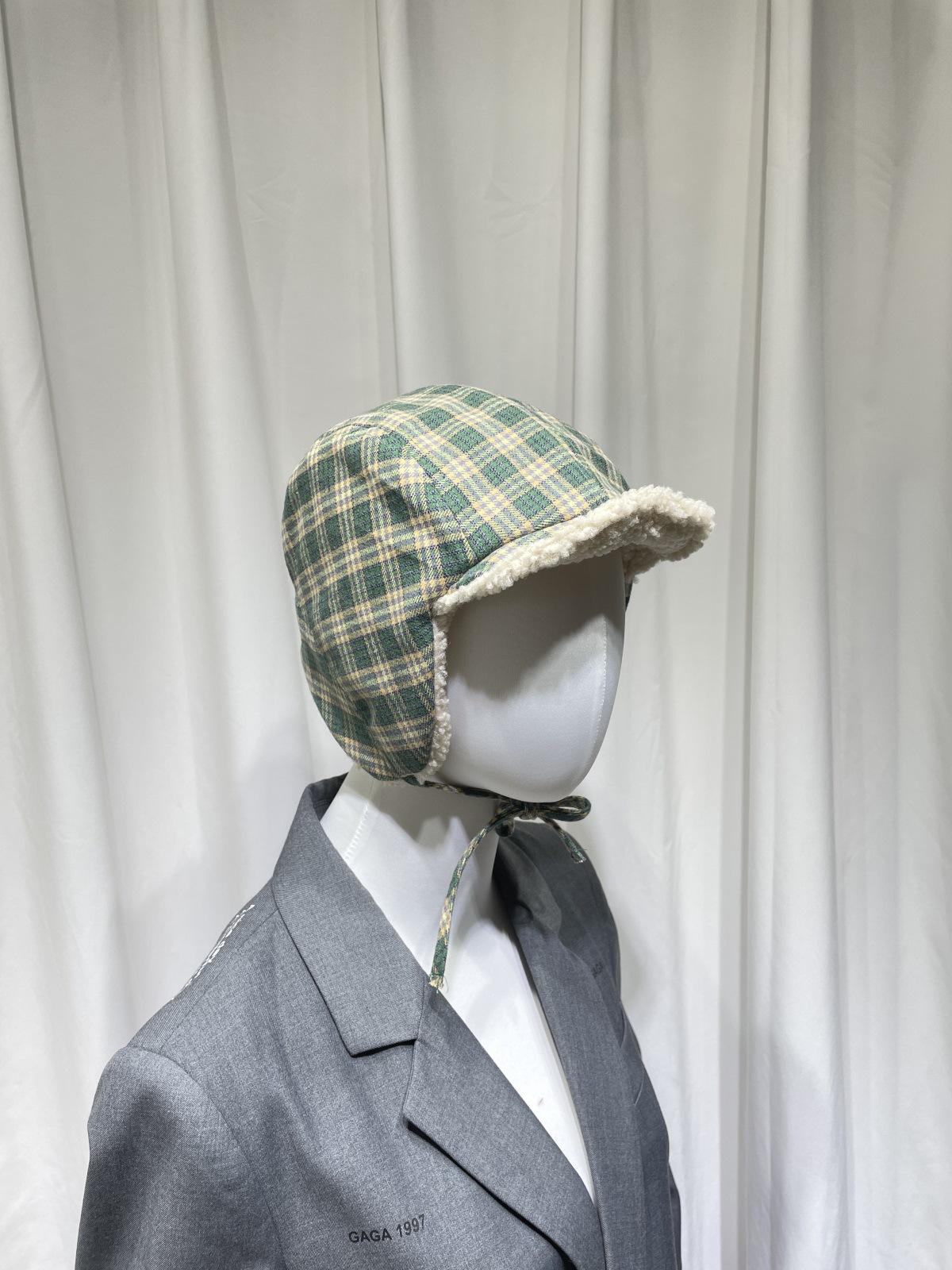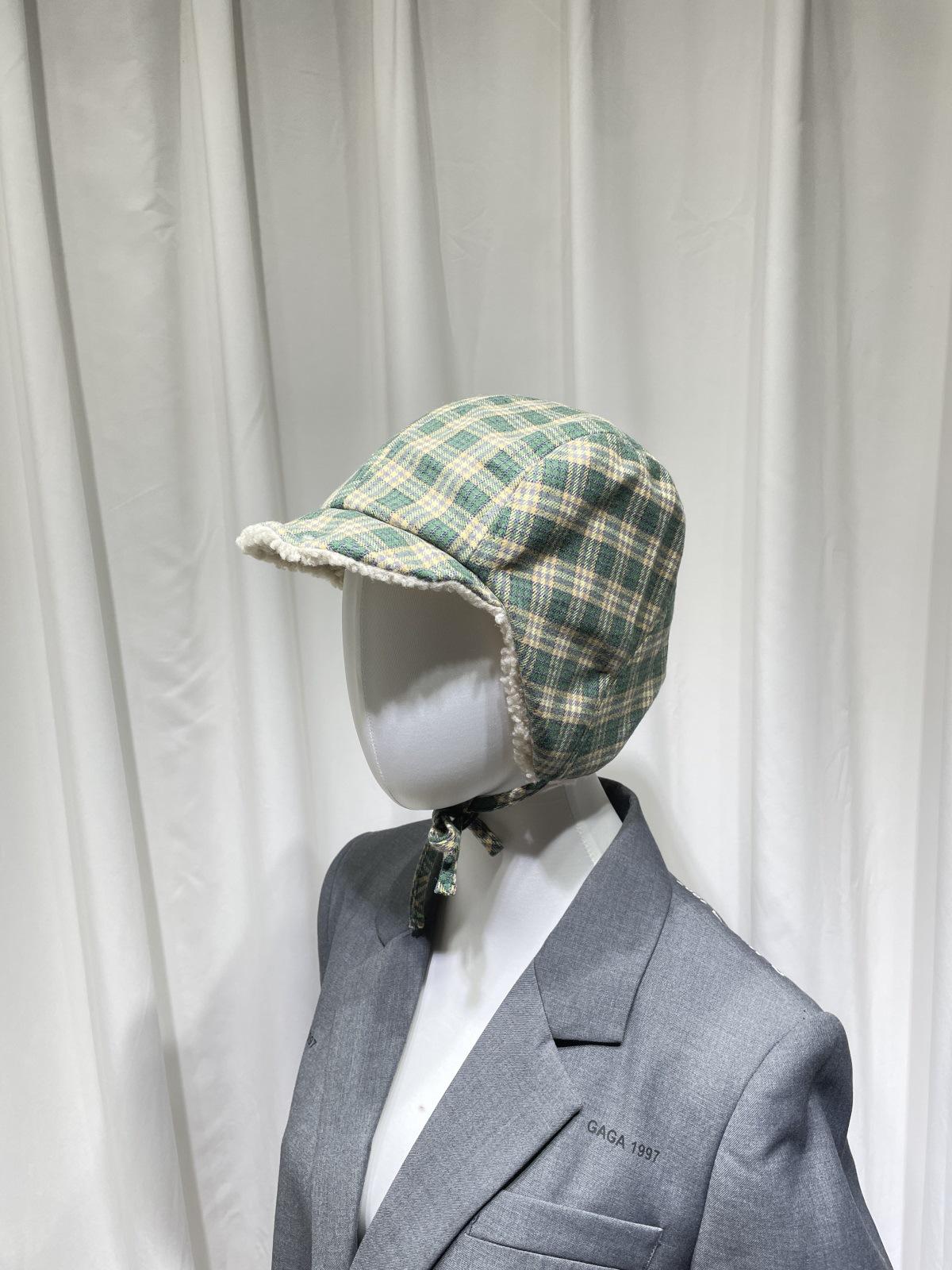 Gorro Lei Feng de lana de cordero a cuadros retro de otoño e invierno para mujer, estilo coreano, a la moda, con protección para las orejas y cálido para todos los partidos, gorro de piloto a la moda.