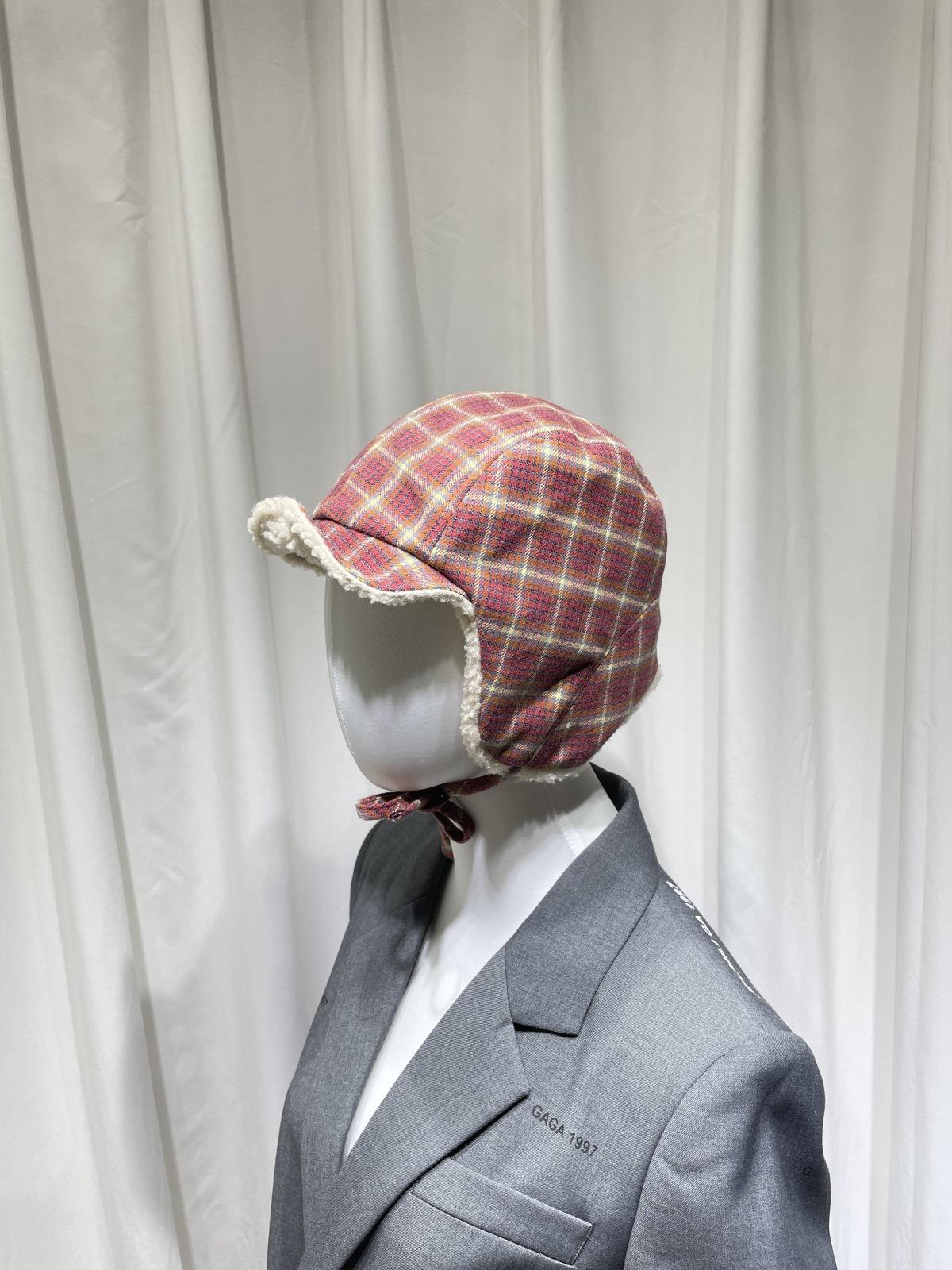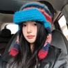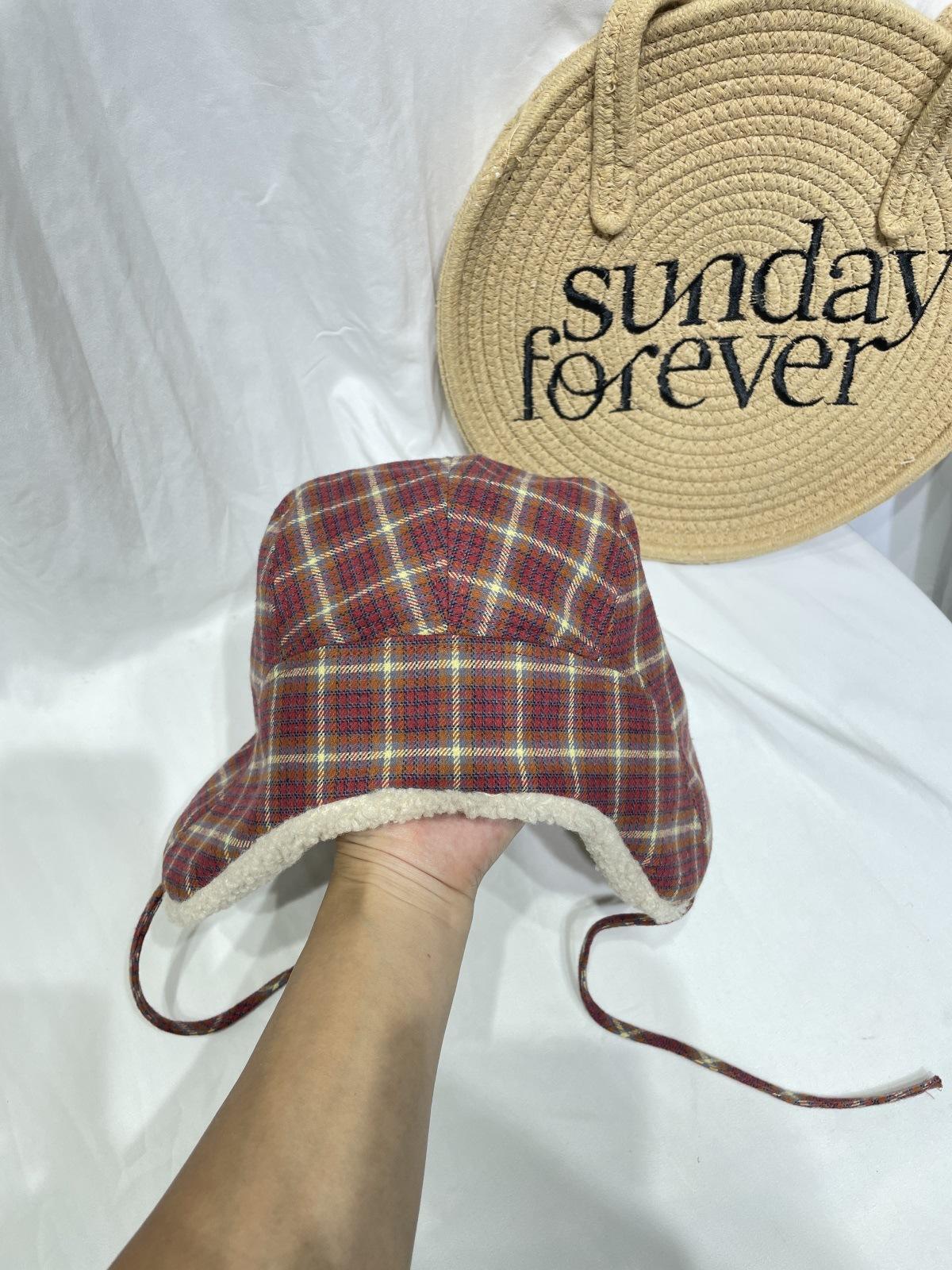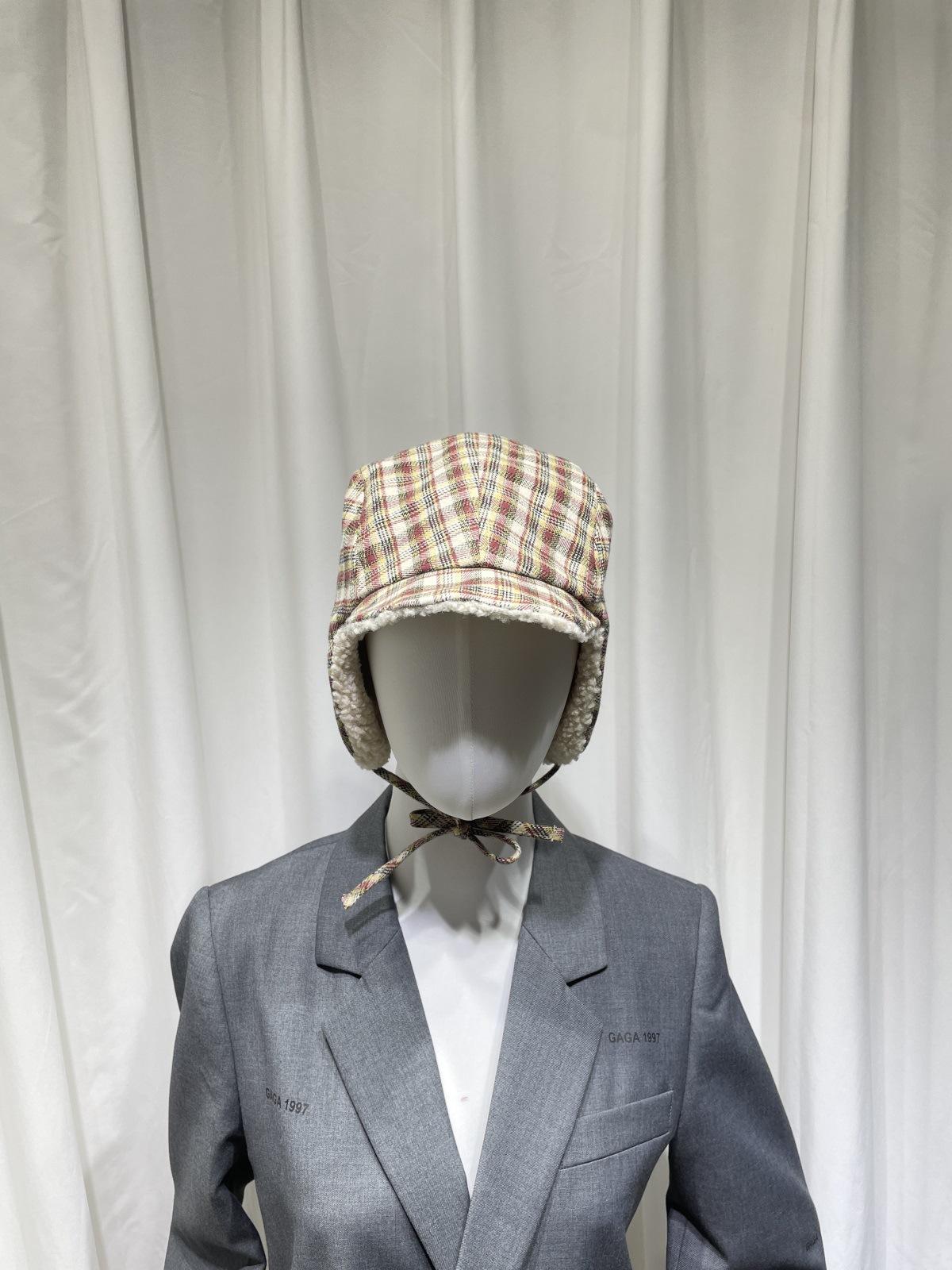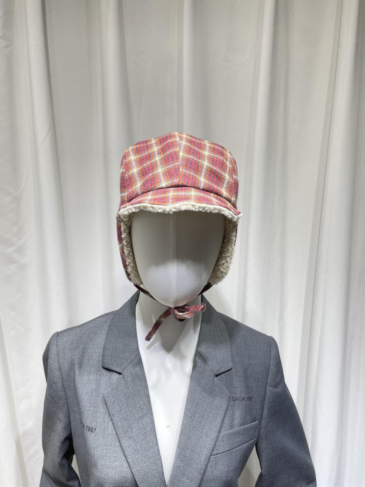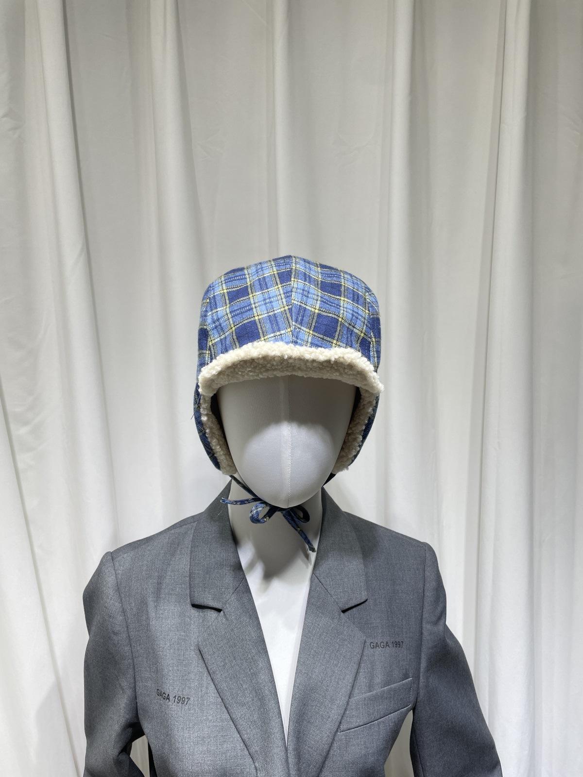 Gorro Lei Feng de lana de cordero a cuadros retro de otoño e invierno para mujer, estilo coreano, a la moda, con protección para las orejas y cálido para todos los partidos, gorro de piloto a la moda.