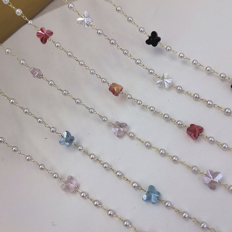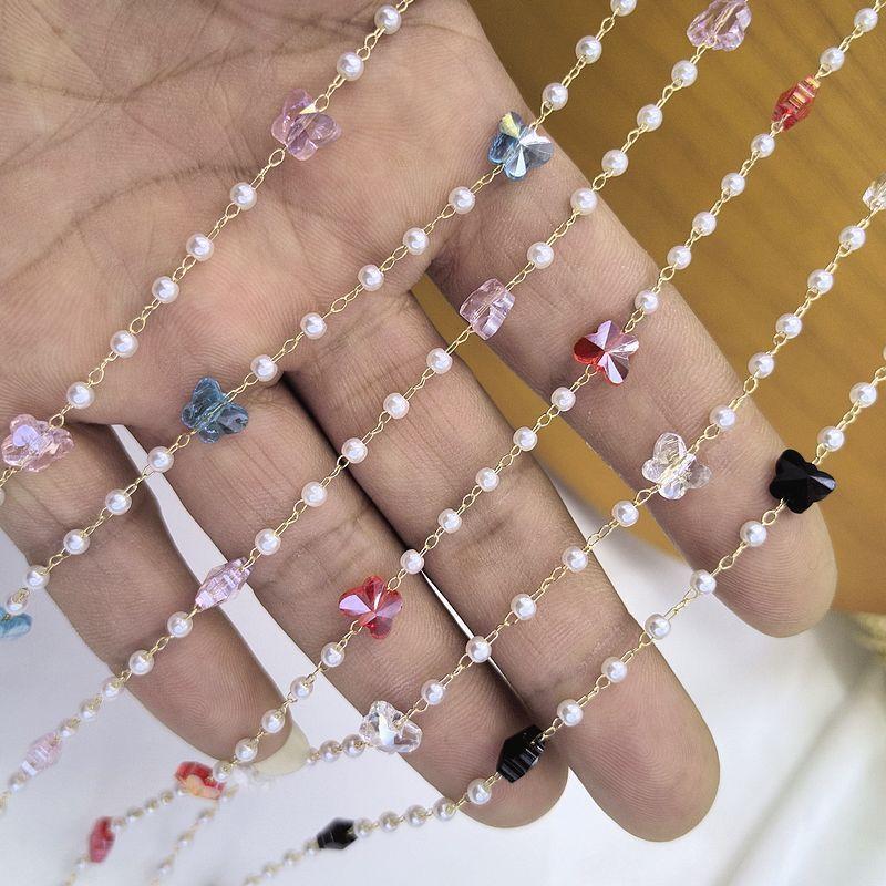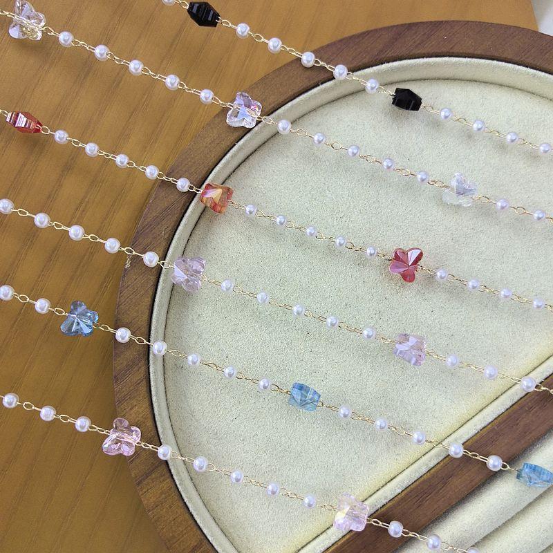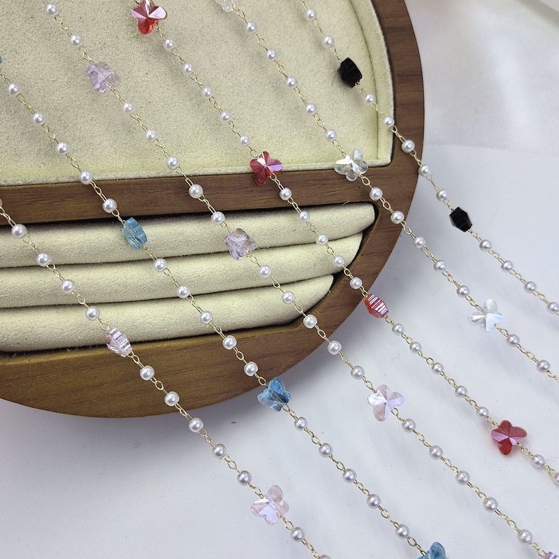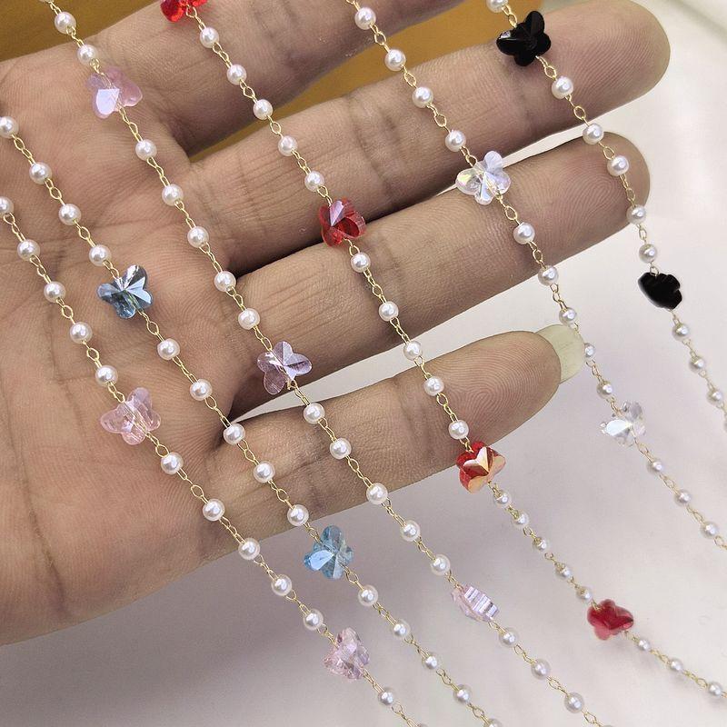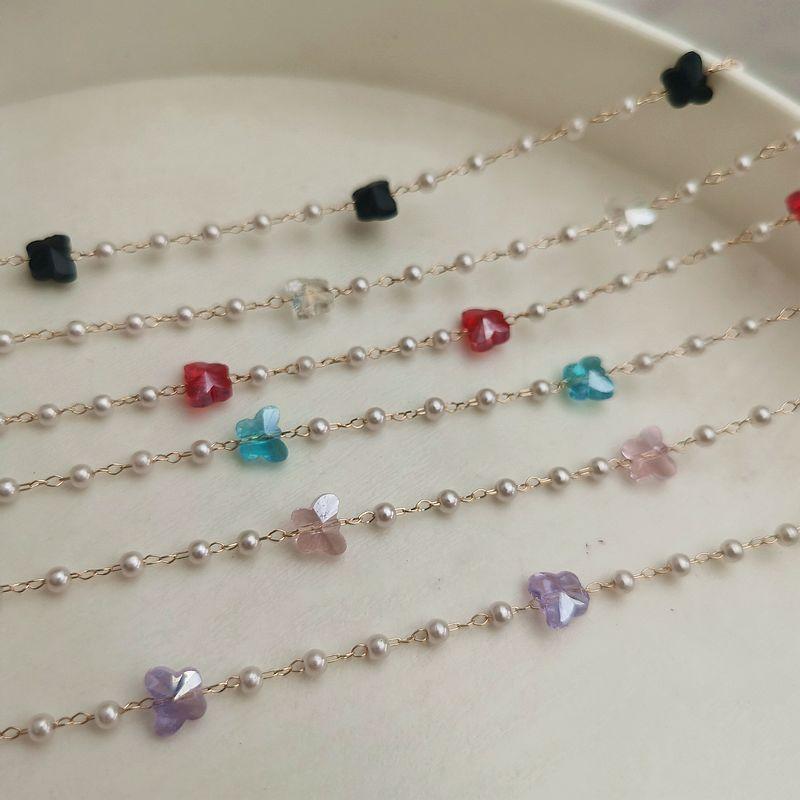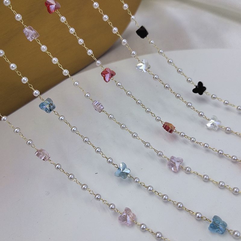 Cadena de retención de color DIY de 3 mm, 5 pequeñas perlas, mariposa, cristal, cadena hecha a mano, collar, pulsera, accesorios de ropa