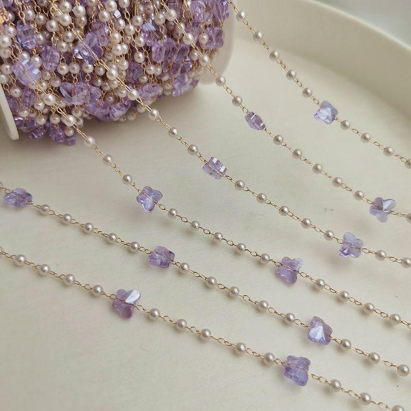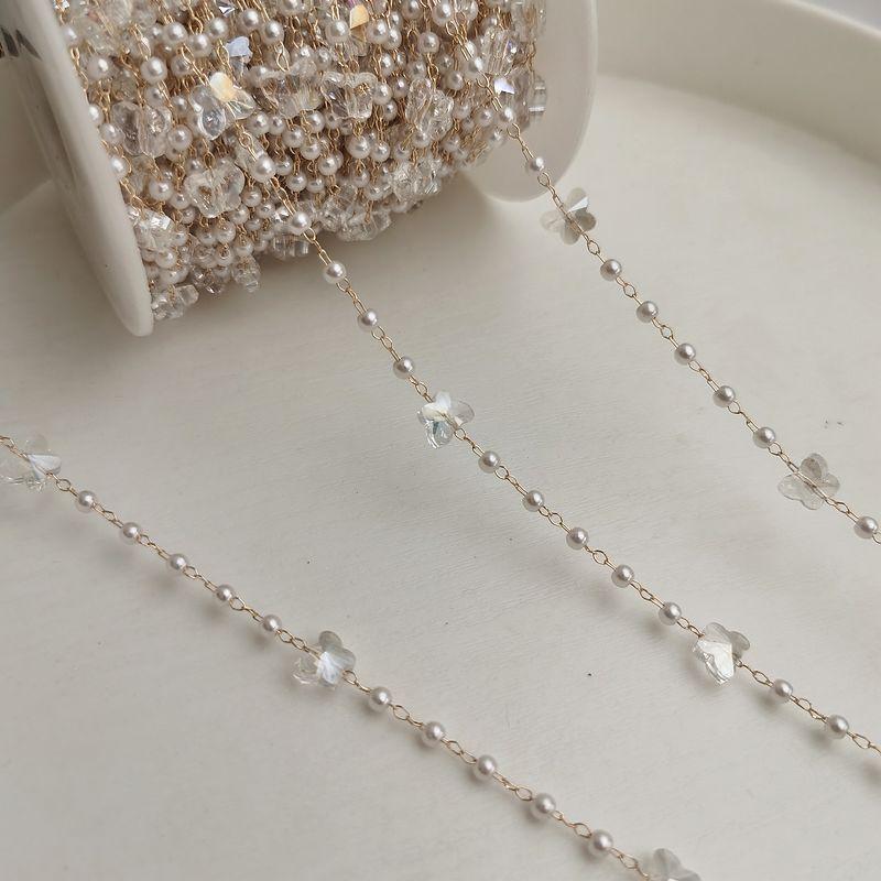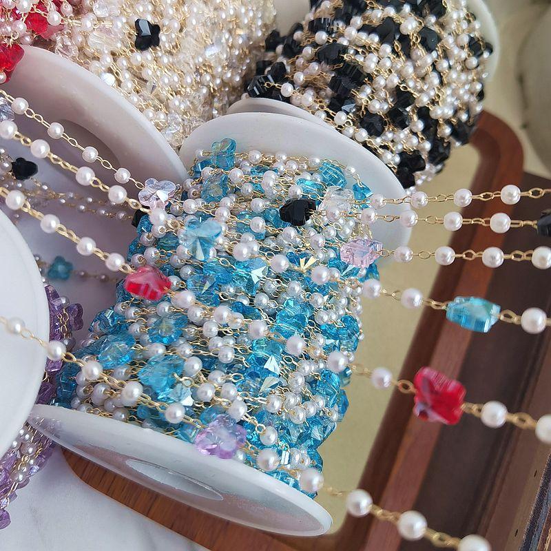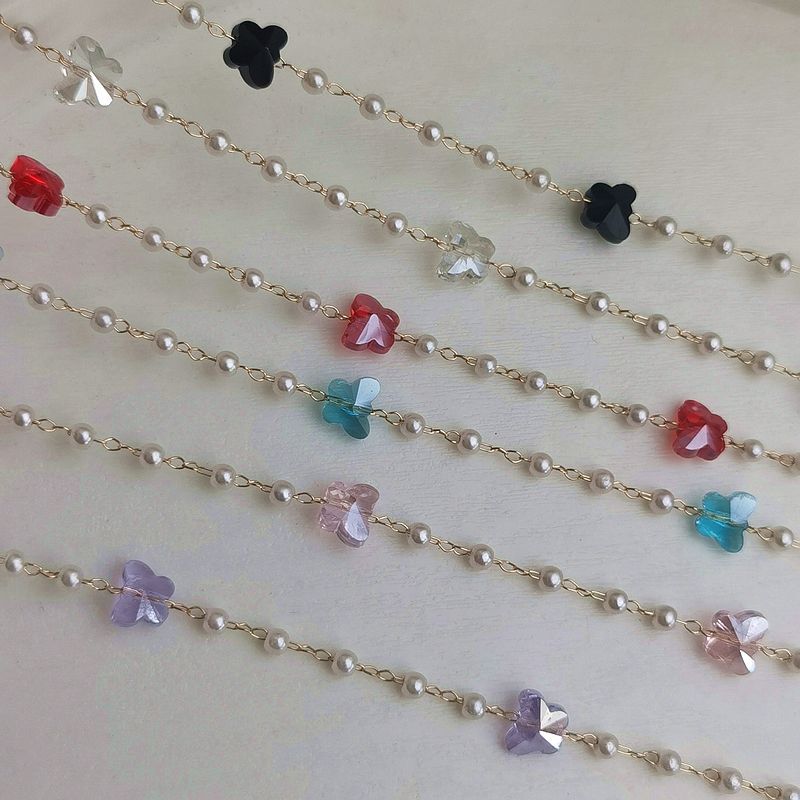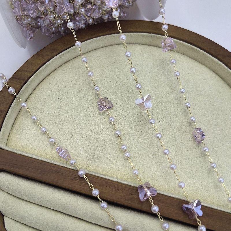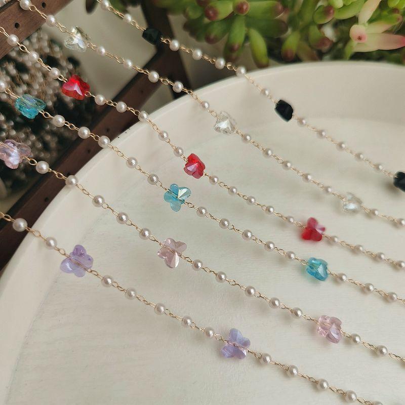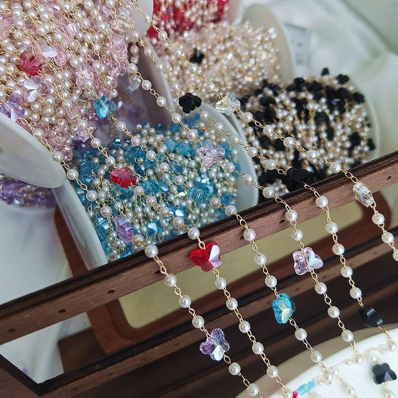 Cadena de retención de color DIY de 3 mm, 5 pequeñas perlas, mariposa, cristal, cadena hecha a mano, collar, pulsera, accesorios de ropa