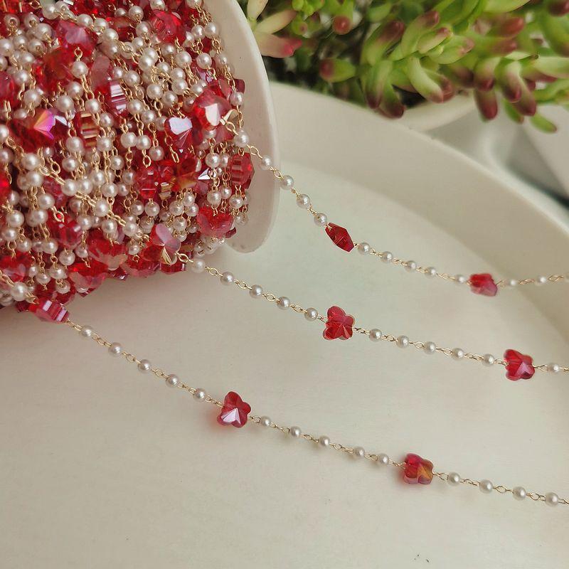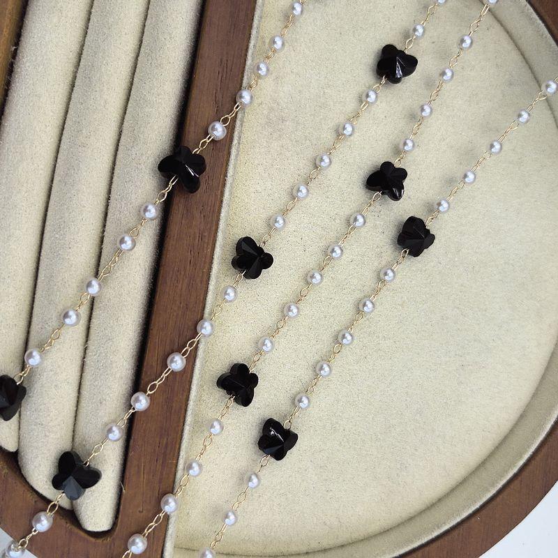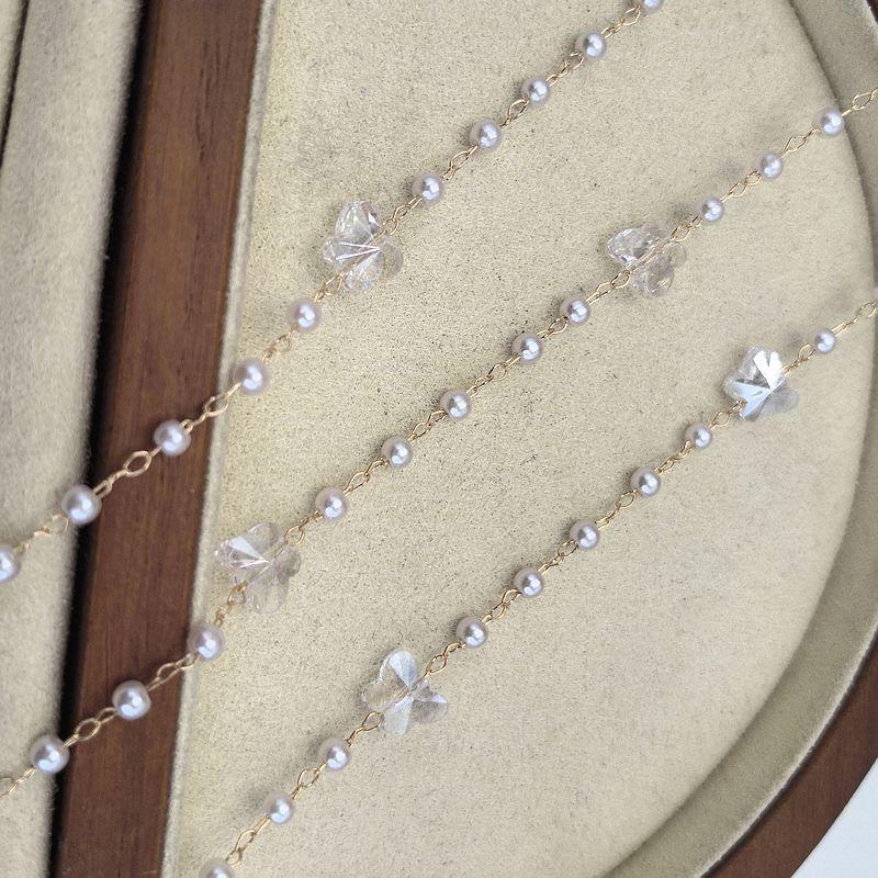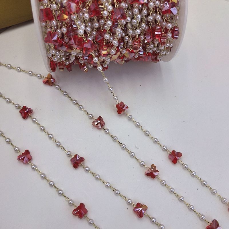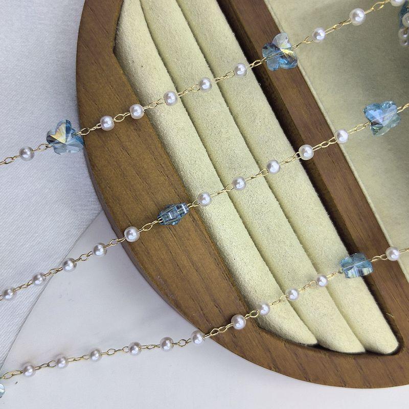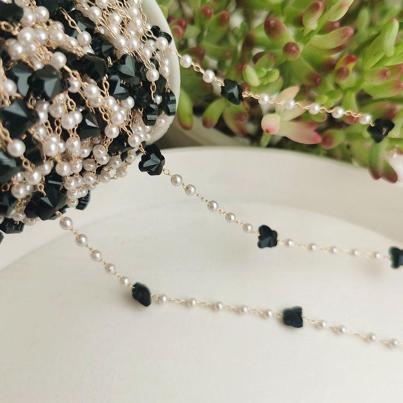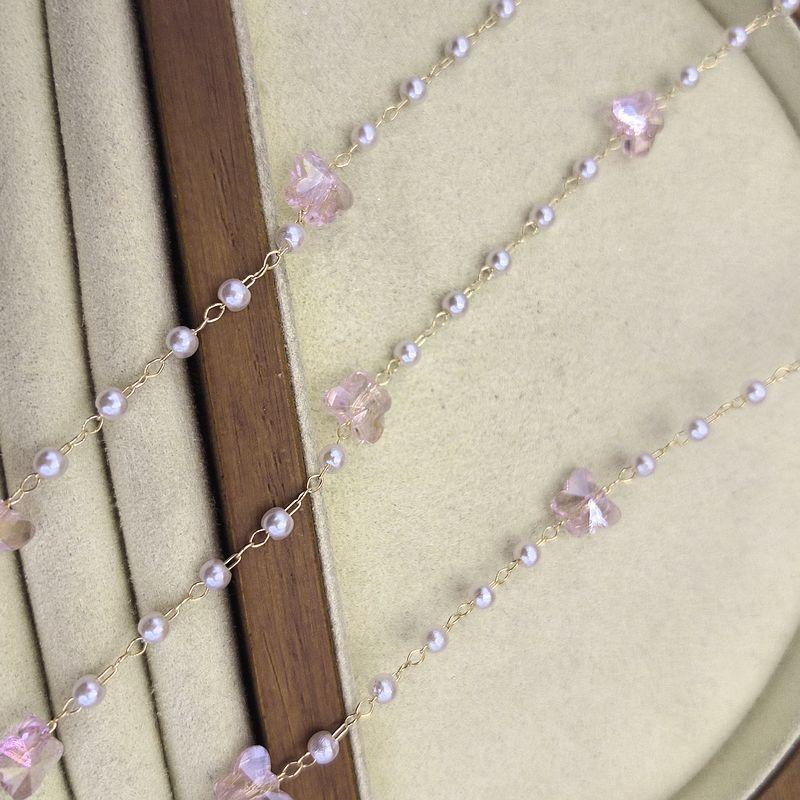 Cadena de retención de color DIY de 3 mm, 5 pequeñas perlas, mariposa, cristal, cadena hecha a mano, collar, pulsera, accesorios de ropa