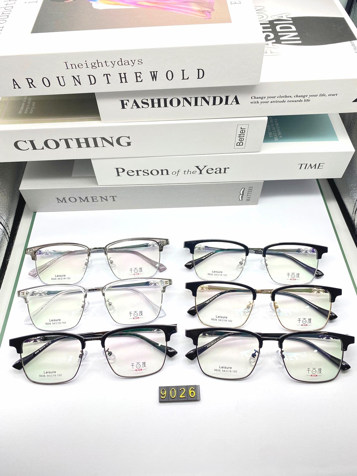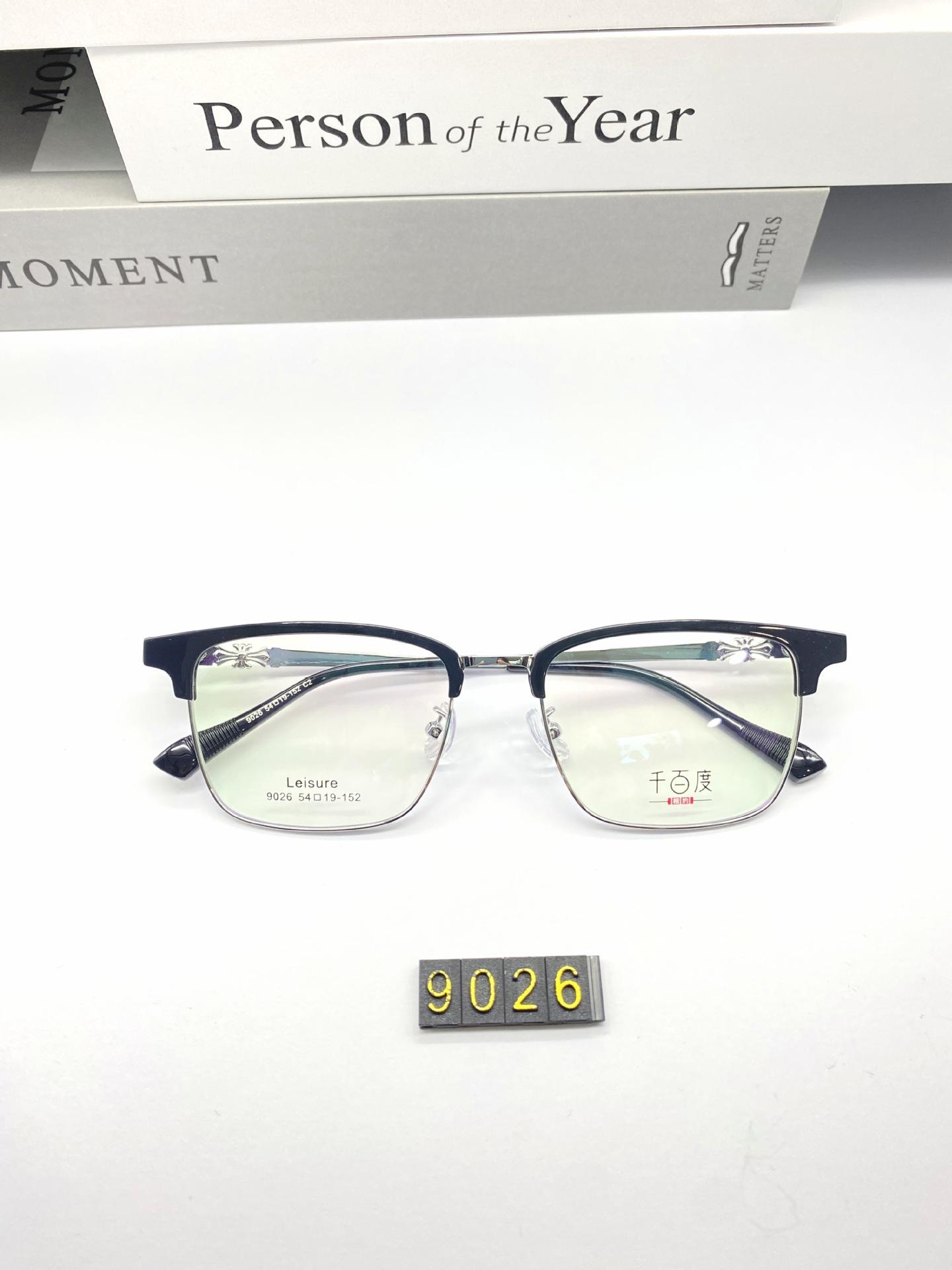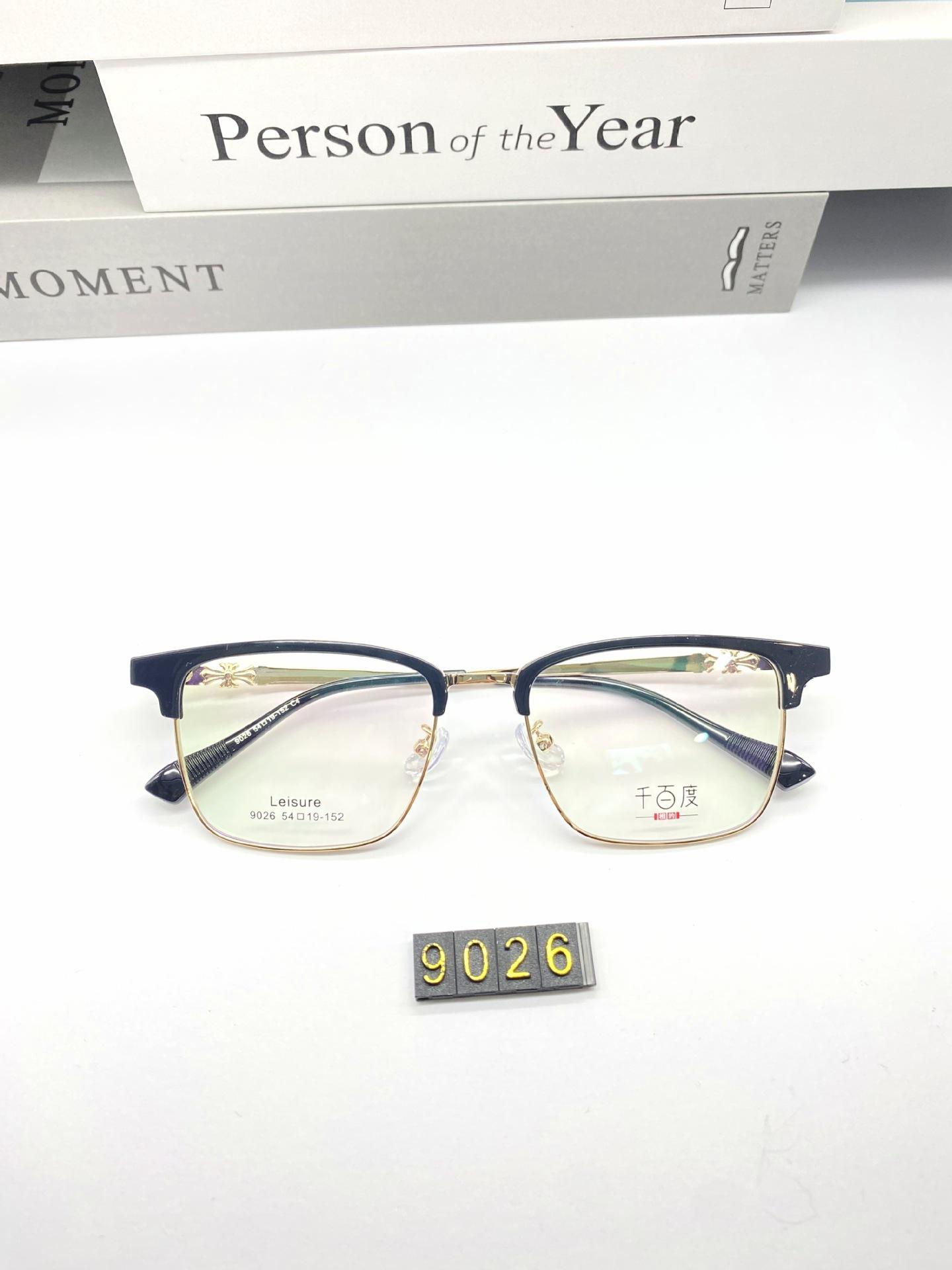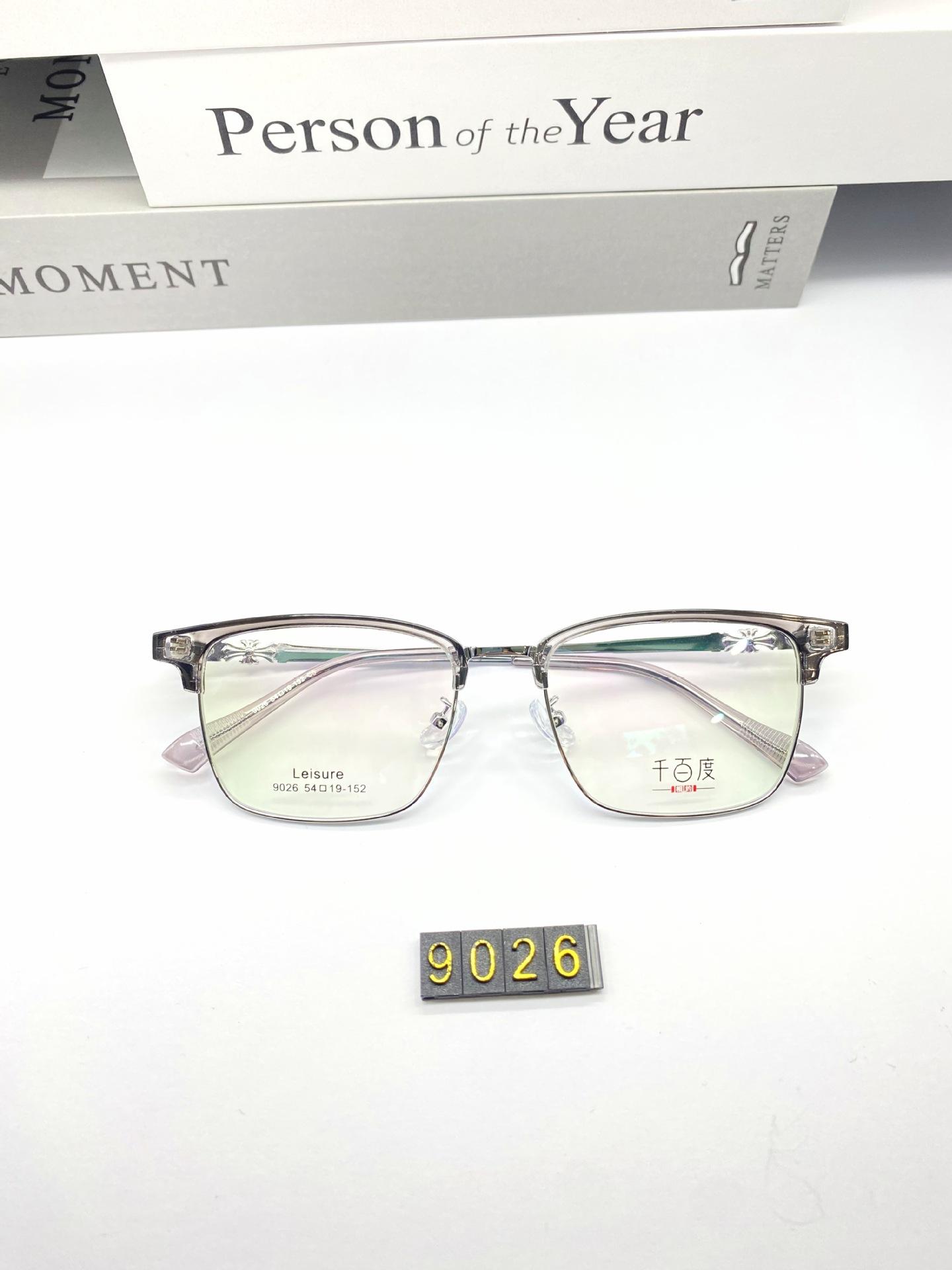 Venta al por mayor 9026, nueva moda, montura de gafas con cejas lisas, montura de gafas tallada, cómodas, patas de gafas que se pueden equipar con gafas para miopía