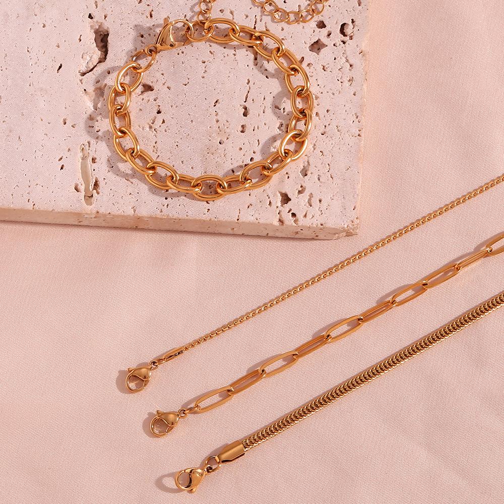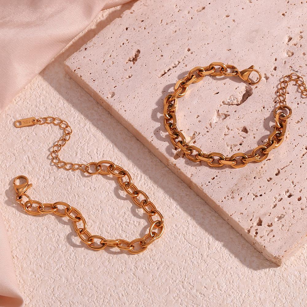 Moda Europea y Americana Pulsera de Cadena Simple de Acero de Titanio Acero Inoxidable Chapado en Oro de 18K Pulsera de Cadena para Mujer