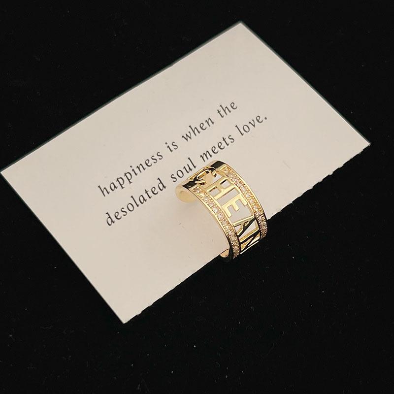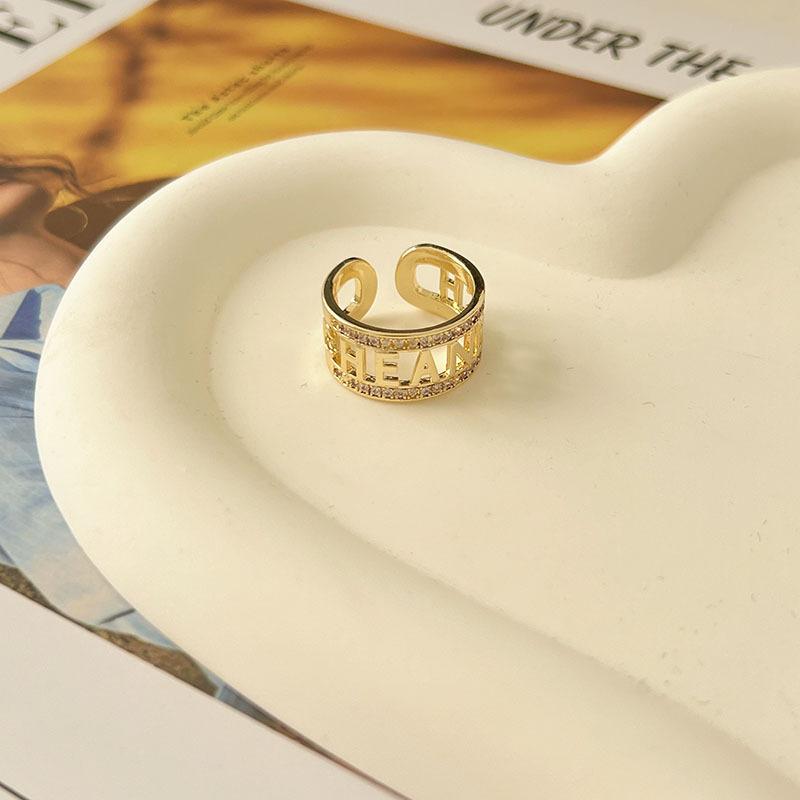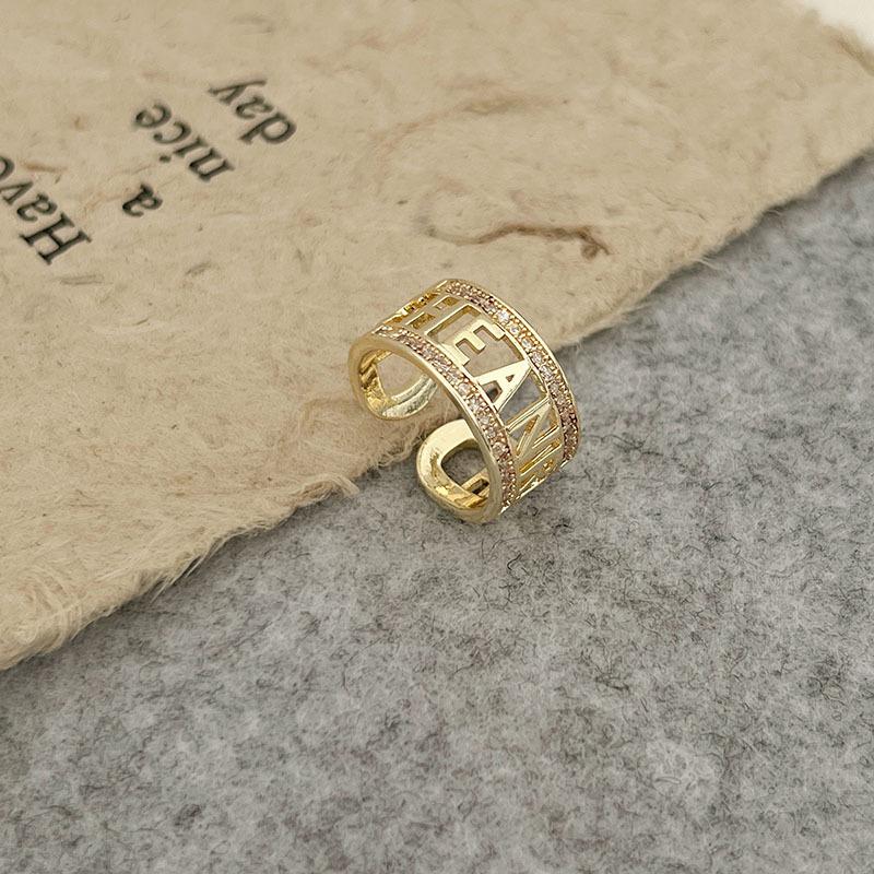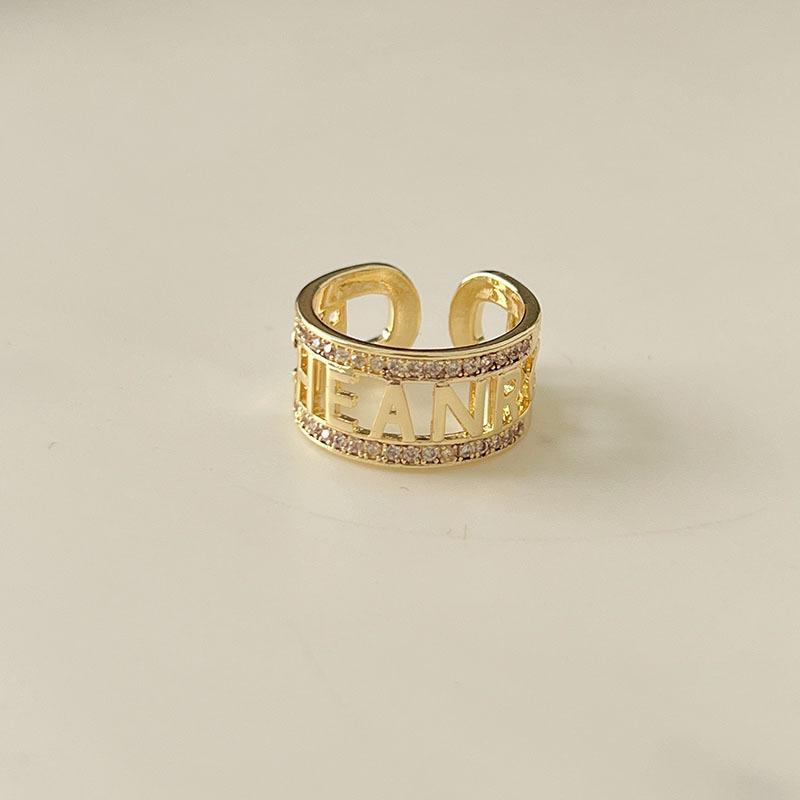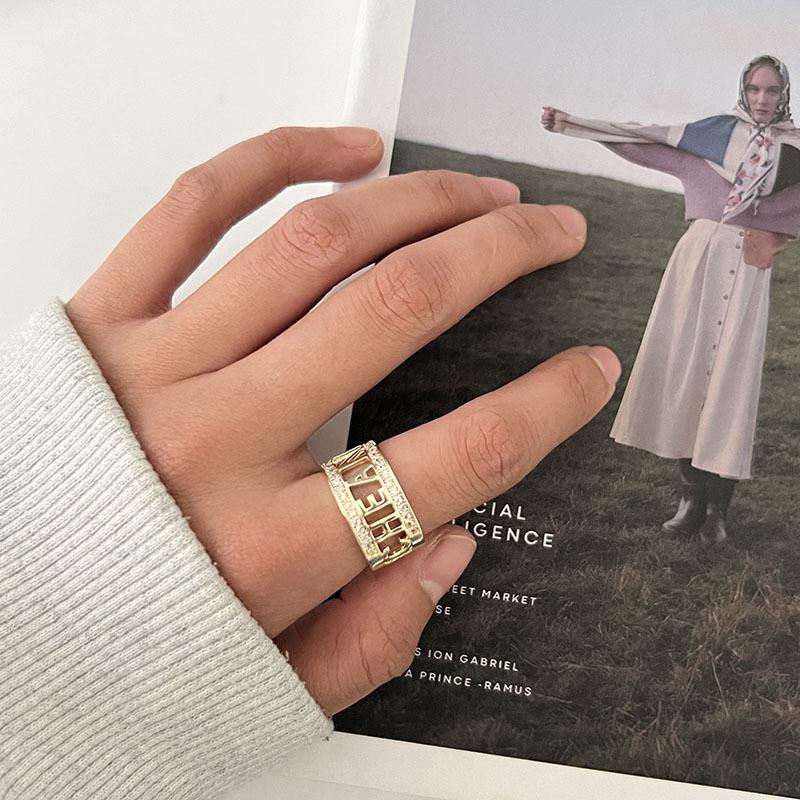 Anillo de Letra Hueca con Diamantes Completos Super Flash para Mujer, Diseño de Nicho Retro, Anillo de Dedo con Sentido del Diseño, Moda Personalizada, Lujo Ligero, Anillo Abierto