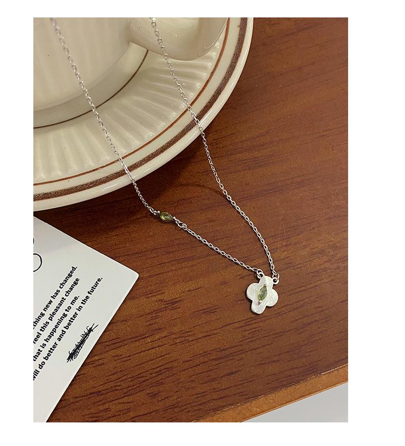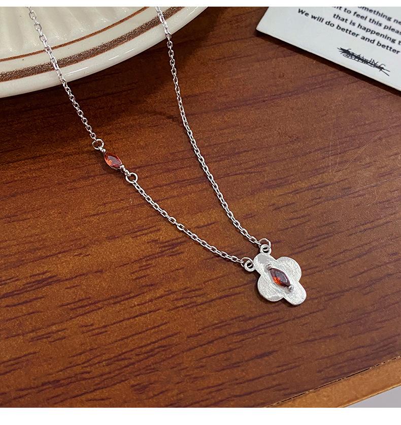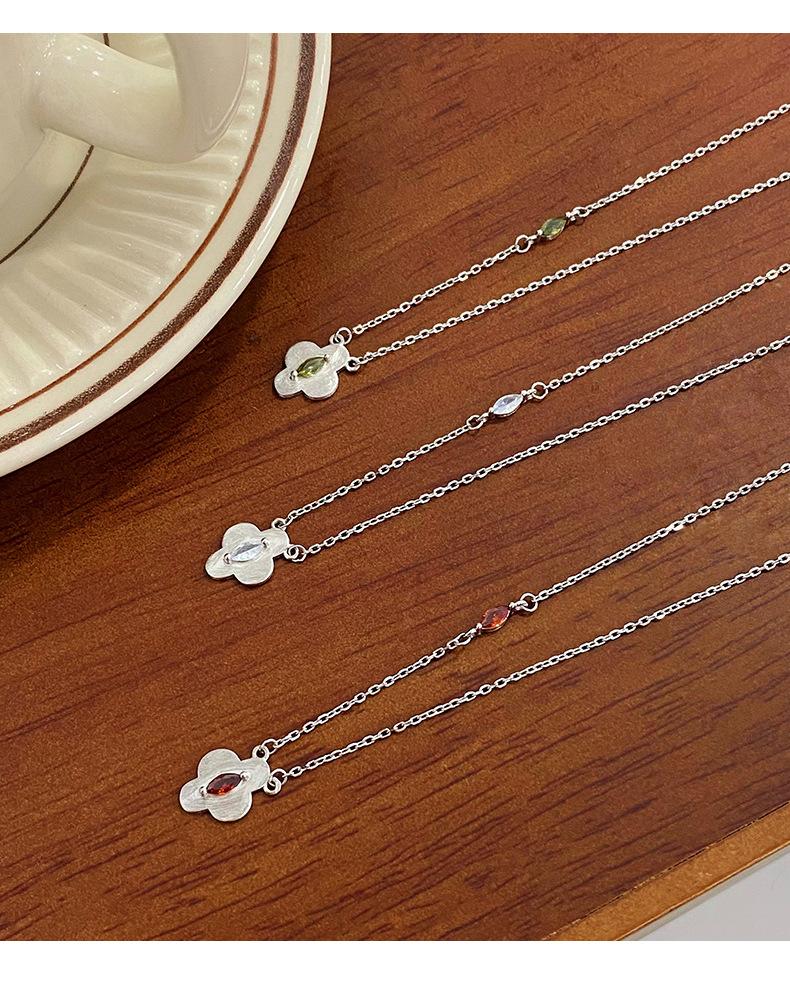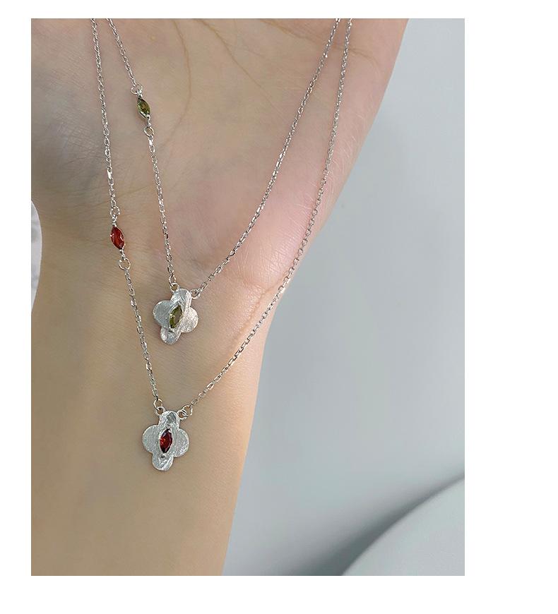 White Zirconium Flower Necklace-White Gold, Olive Green Zirconium Flower Necklace-White Gold, Medium garnet zi...