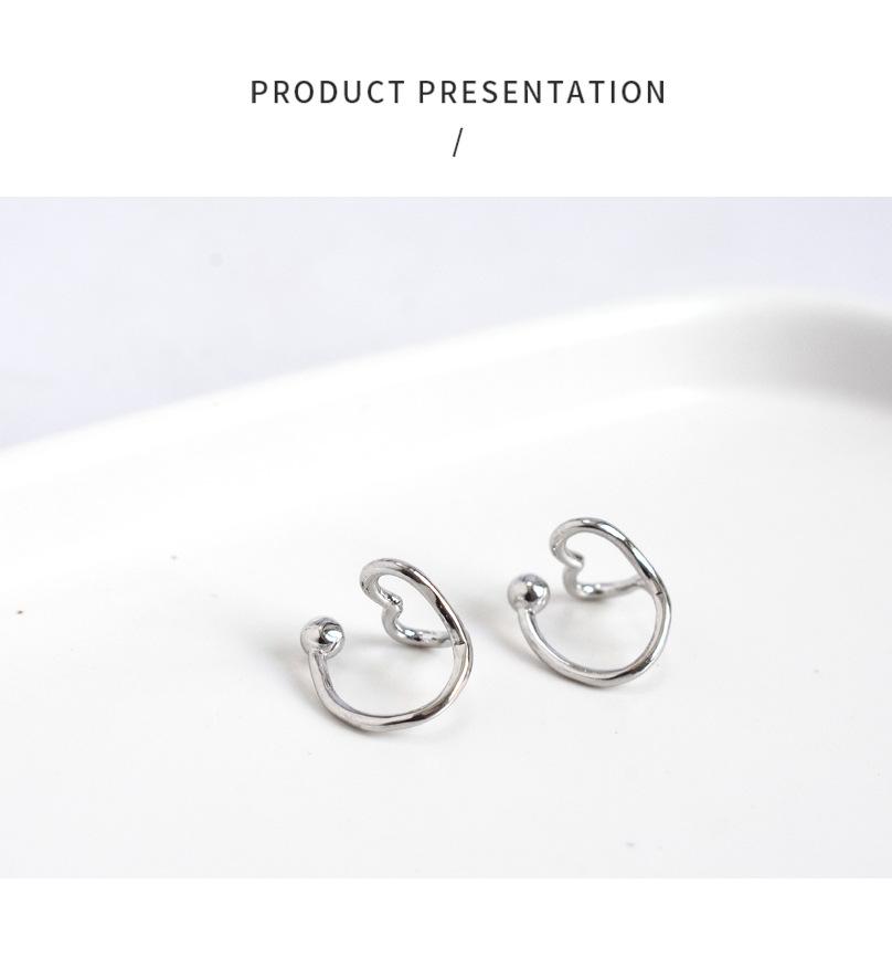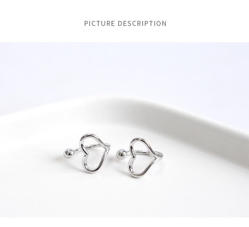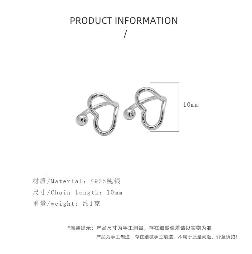 Aretes de Corazón de Plata Esterlina S925 sin Perforación, Joyería Elegante y Versátil, Clip para Hueso de la Oreja de Corazón Durazno, Joyería de Aretes de Moda