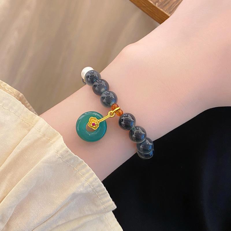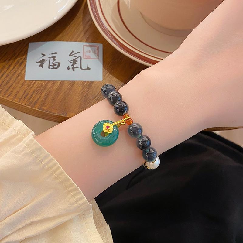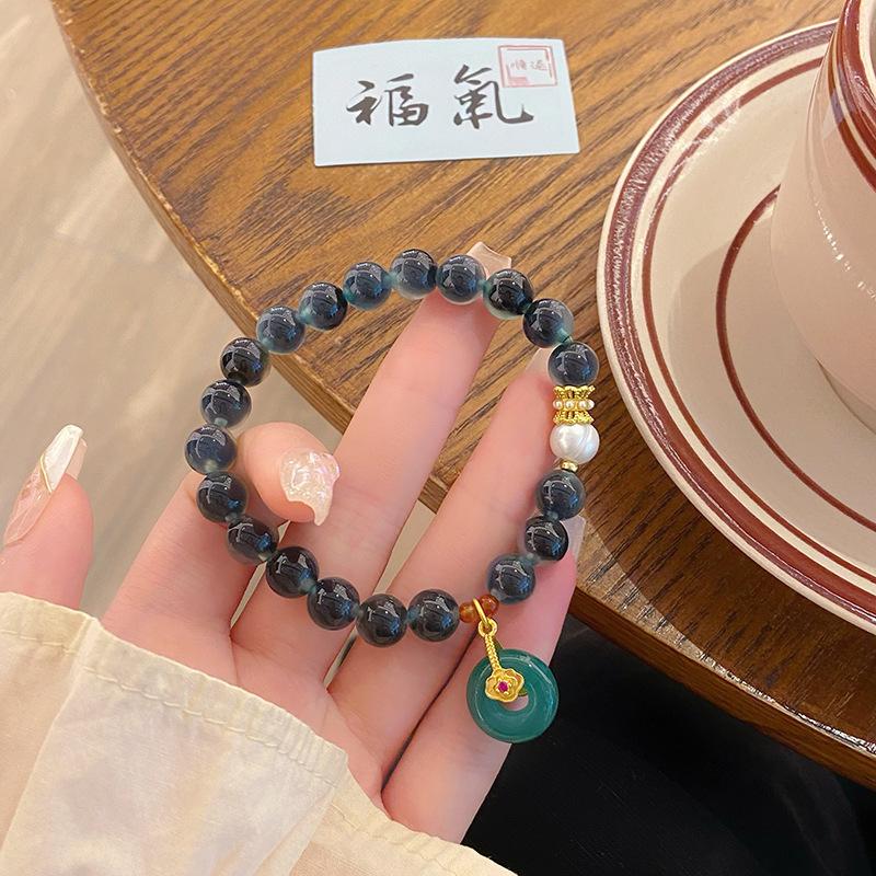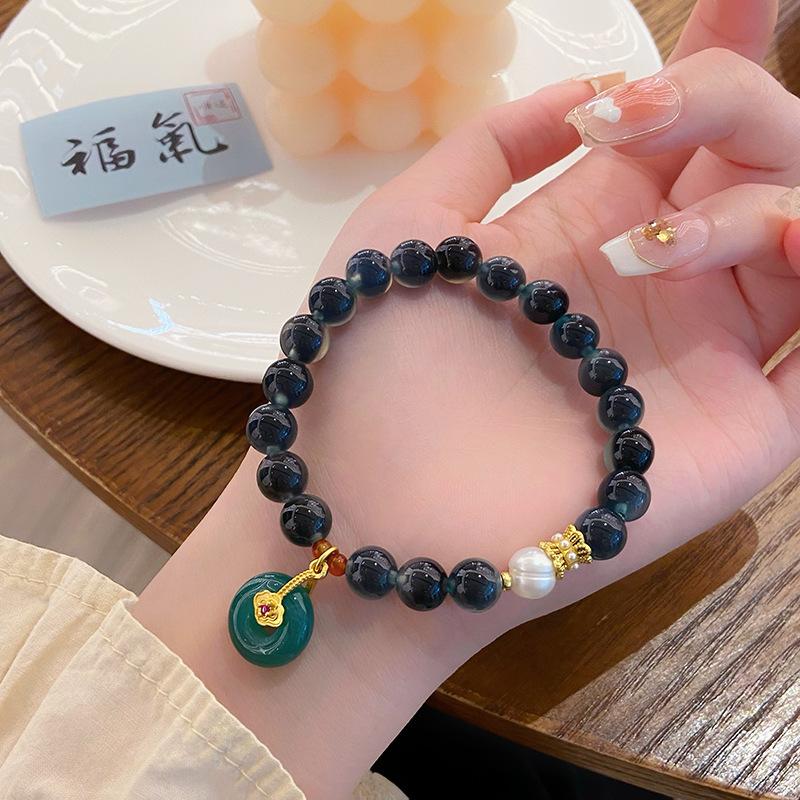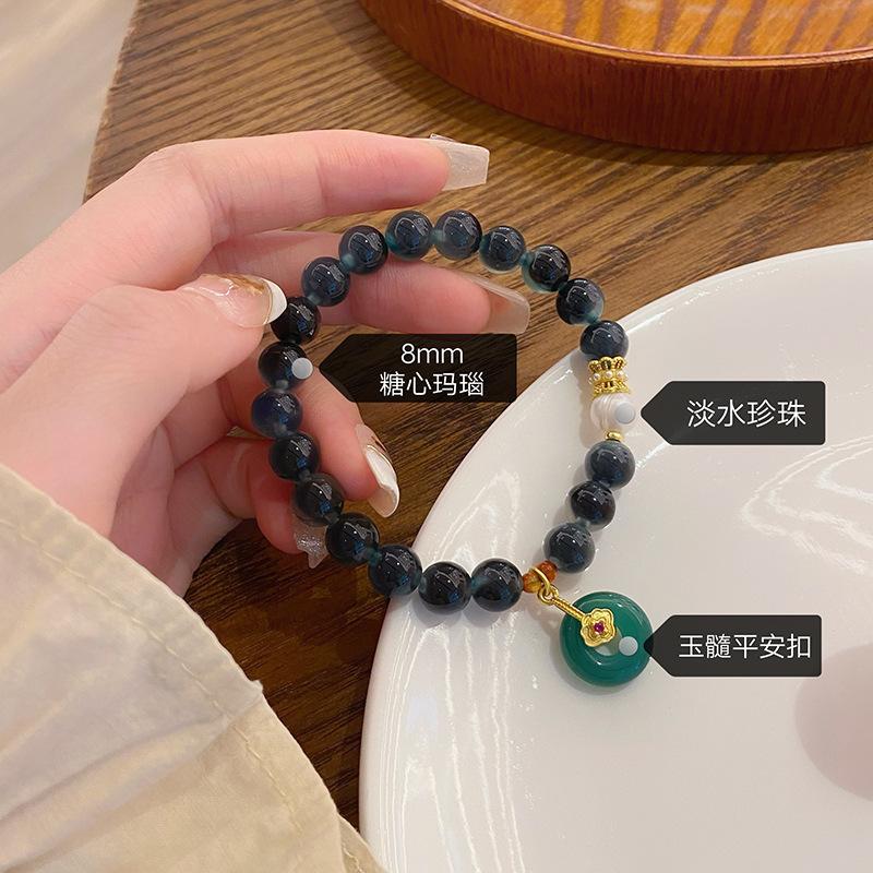Pintura a tinta Nanjiang ~ pulsera de ágata corazón de azúcar estilo chino retro pulsera con hebilla de seguridad joyería conmemorativa creativa cultural del templo