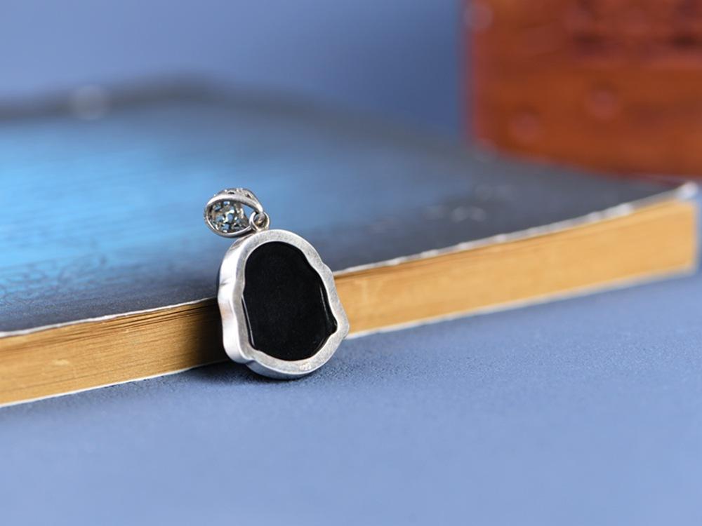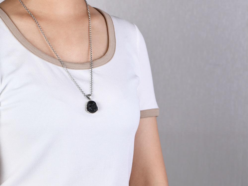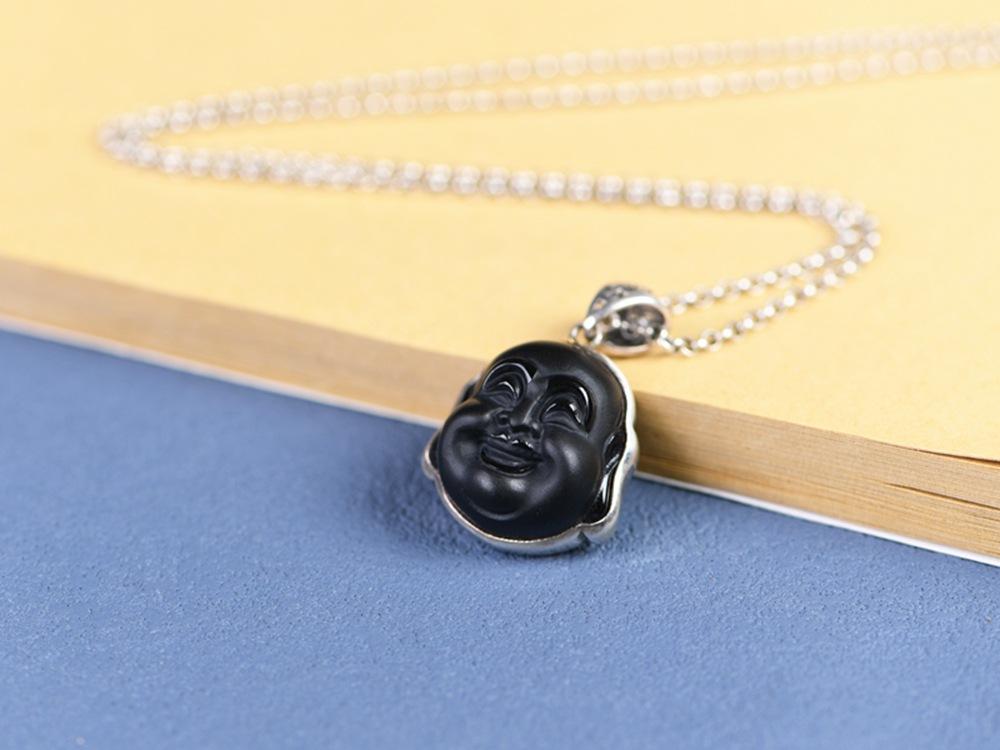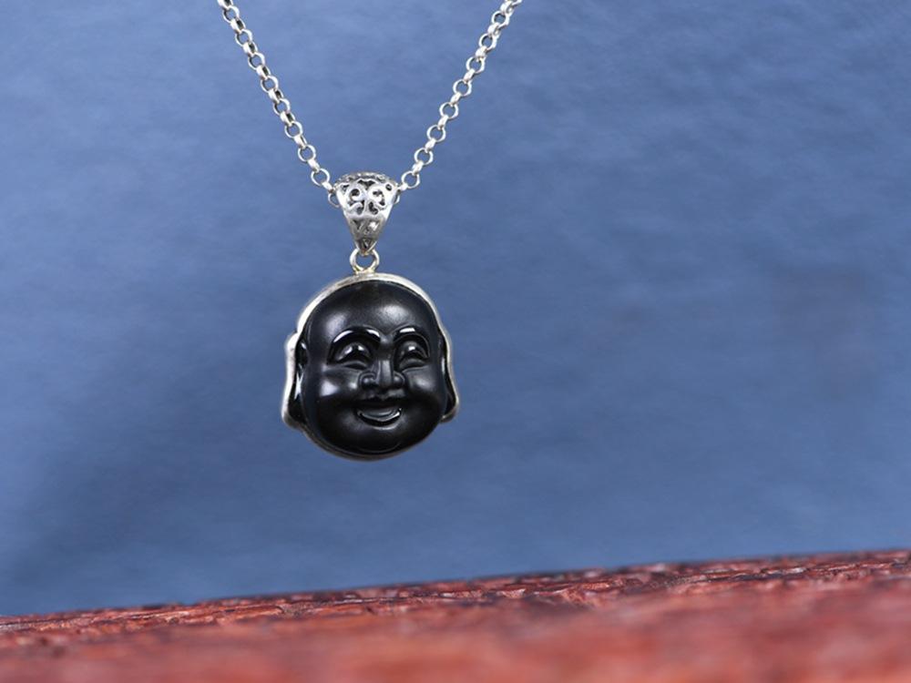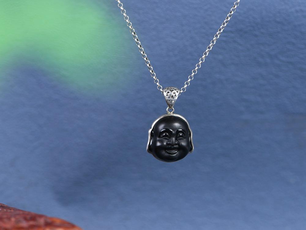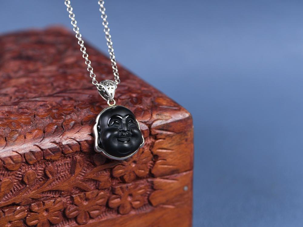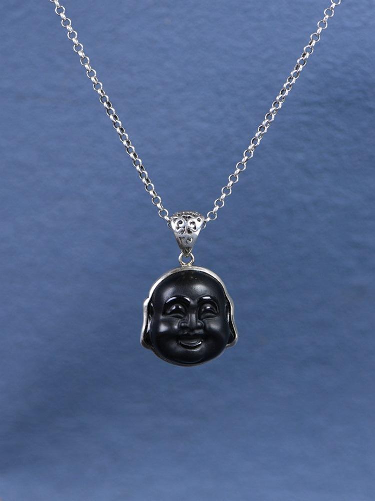 Colgante Maitreya de obsidiana con incrustaciones de plata de ley S925 con diseño vintage de Golden Deer King, joyería de plata para mujer