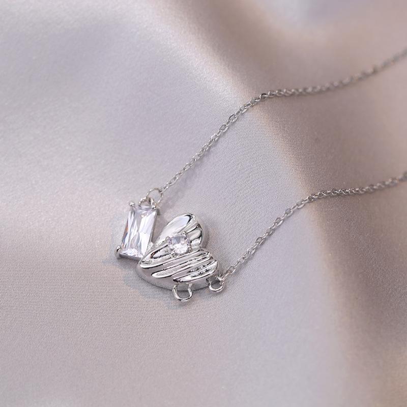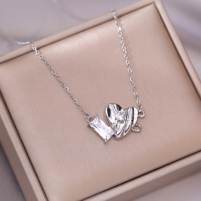 Collar para Mujer, Estilo Dulce de Moda con Zircón en Forma de Corazón, Colgante de Diseño Novedoso de Nicho, Cadena Elegante y Sencilla para Clavícula