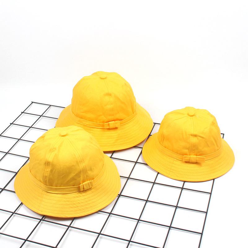 Lindo sombrero amarillo pequeño para estudiantes japoneses, con lazo de viaje, a prueba de viento, para padres e hijos, sombrero de pescador, sombrero parasol, sombrero personalizable