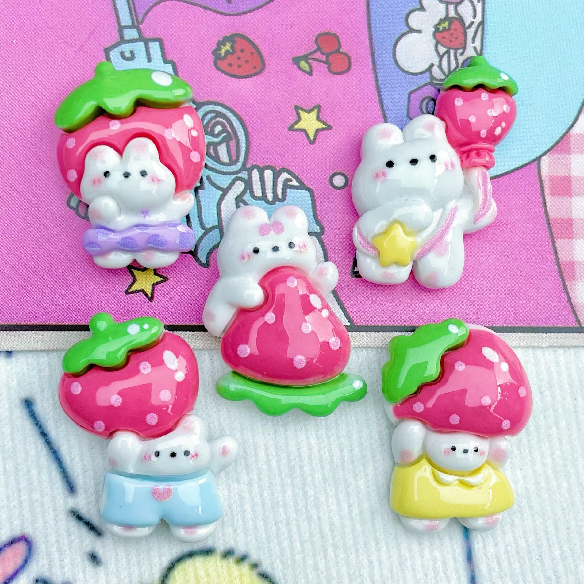 Falda de dopamina, conejo de fresa, accesorios de resina, horquilla, funda para teléfono móvil, llavero, caja de almacenamiento, papelería, accesorios de decoración