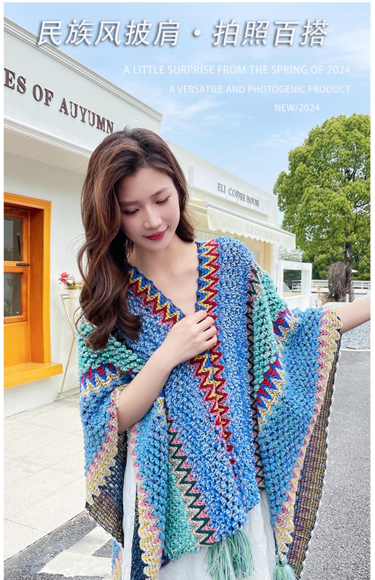 Blue-green ethnic style shawl, Dark blue ethnic style shawl, Big red ethnic style shawl, Lake blue ethnic styl...