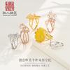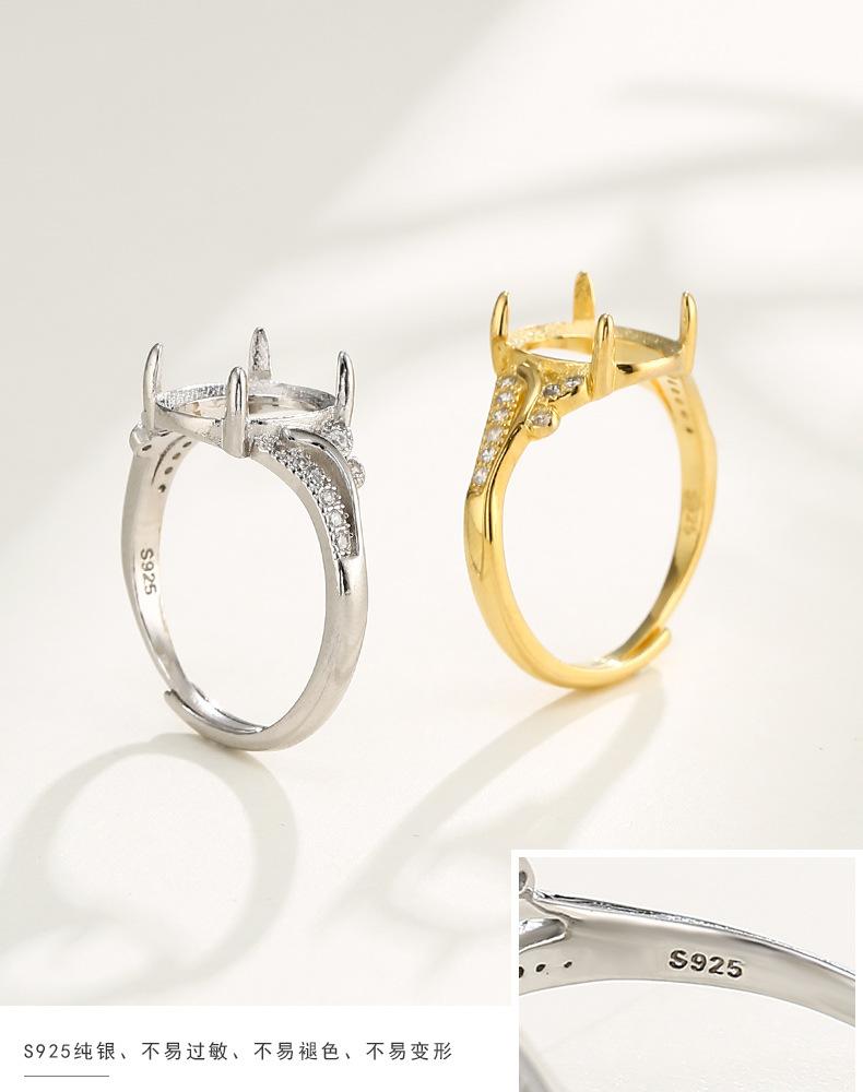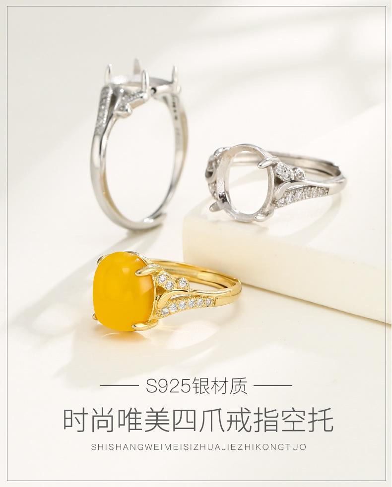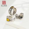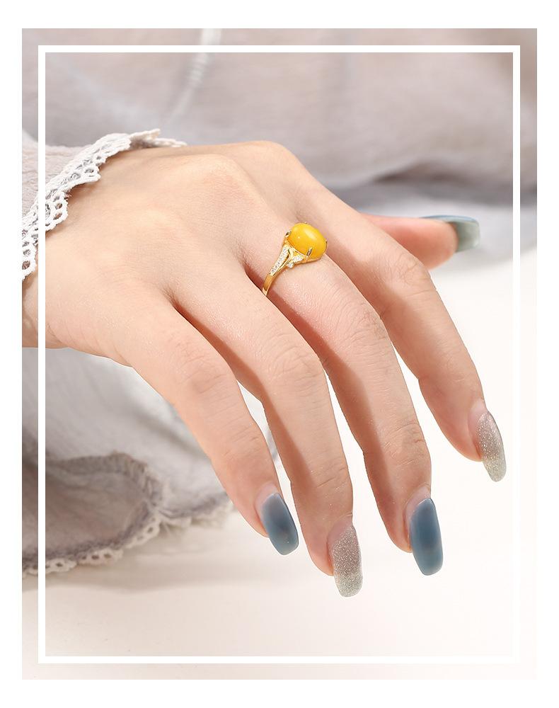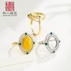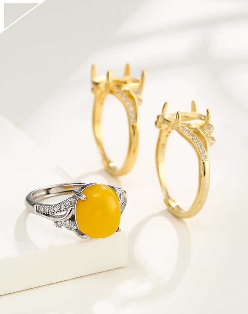 Soporte vacío para anillo de plata esterlina S925, estilo étnico de moda, dorado, artesanal, con incrustaciones de cera de abejas y jaspe verde pino.